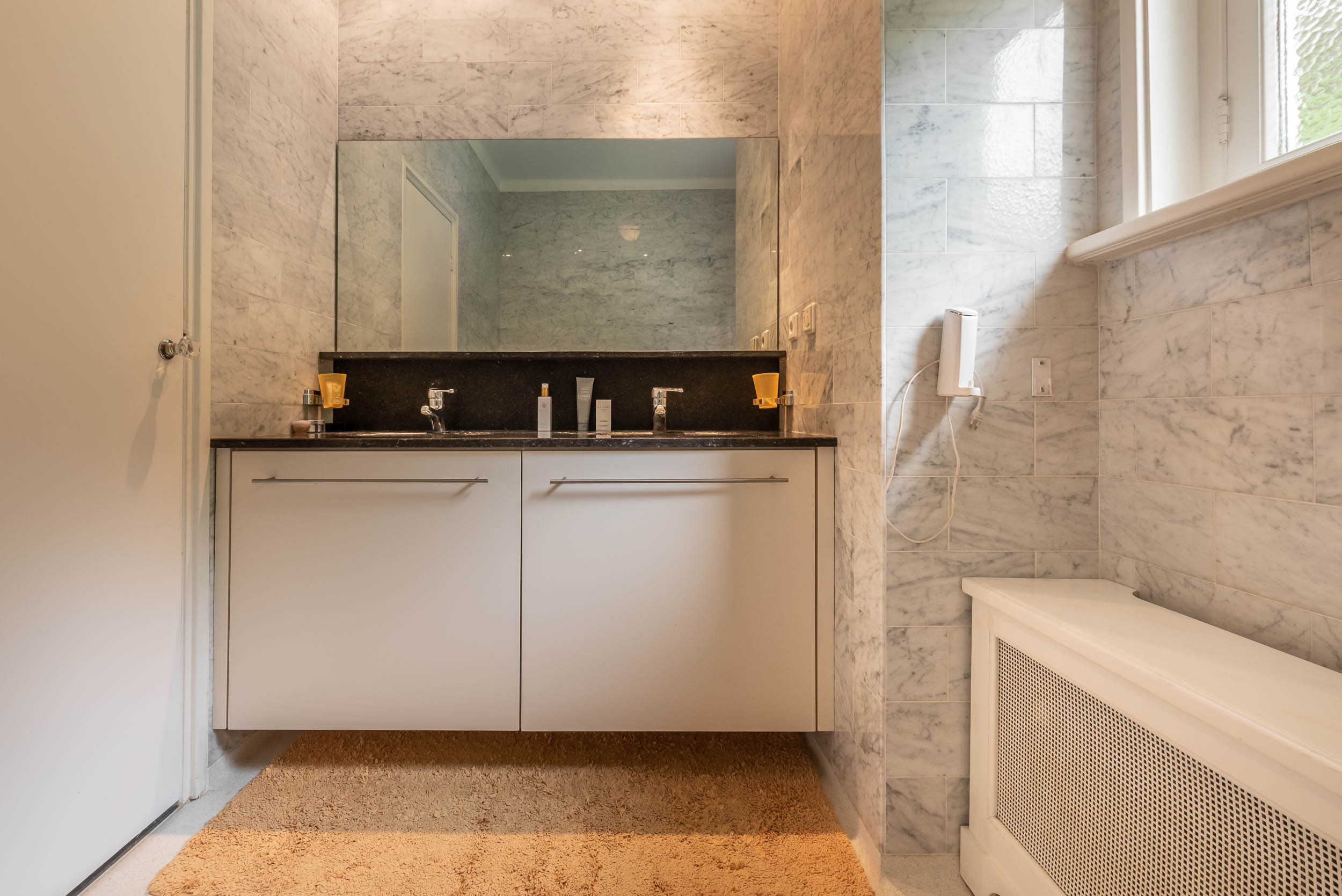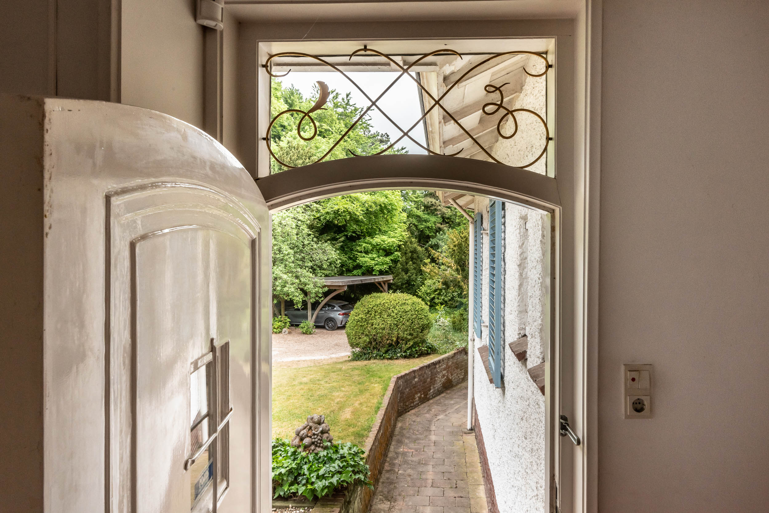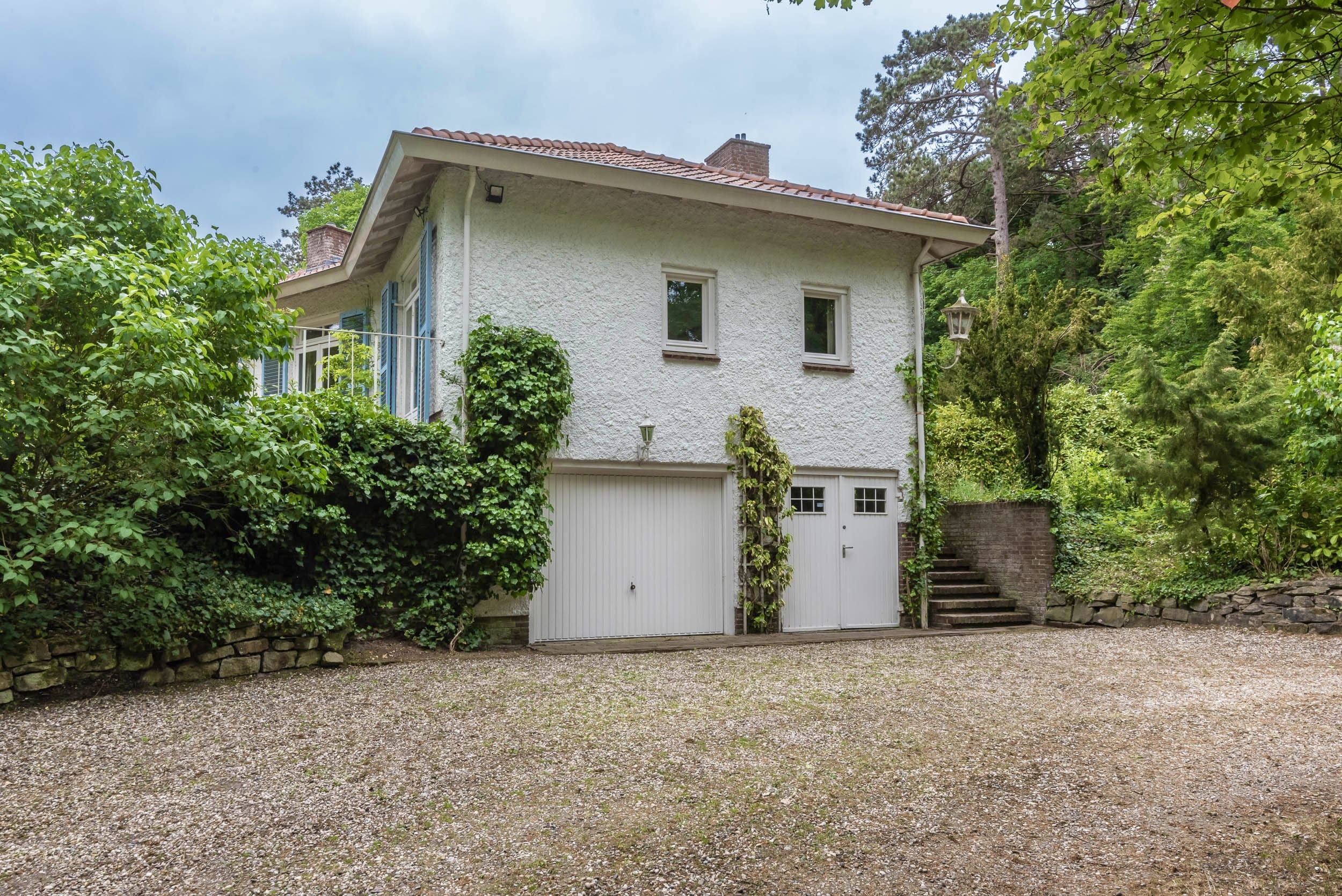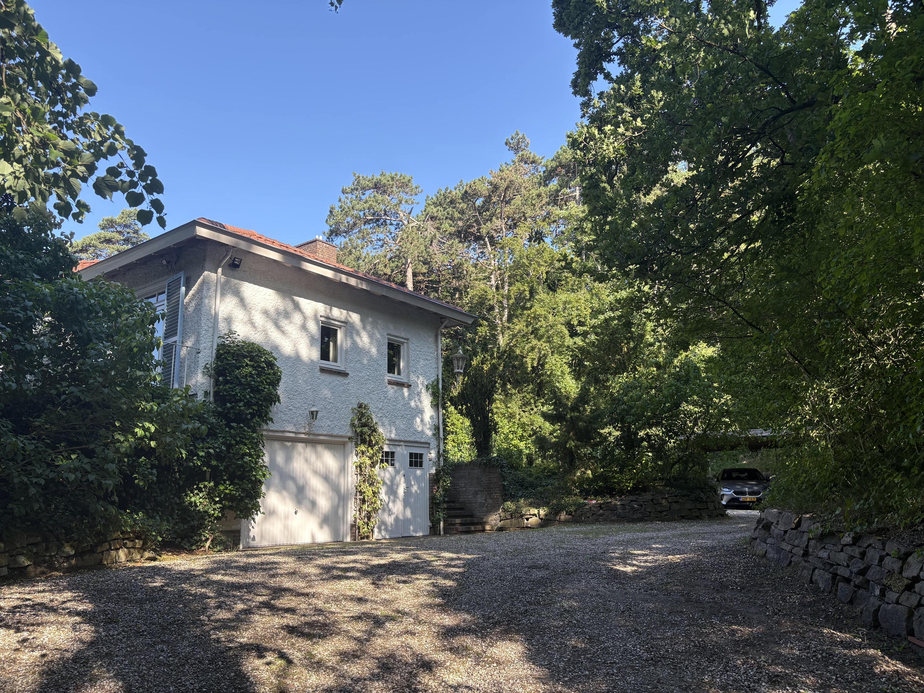 Detached villa Bloemendaal offers a refined architectural presence within the sought-after Duin en Daal villa park. Designed by H.W. van Kempen, this property evokes Mediterranean lightness with its subtle blue Louvre shutters, hipped roof, and the authentic character of French tiles in the hallway. Set on a substantial 4420 m² private plot, the house is surrounded by mature trees and elevated above the road, providing optimal privacy.