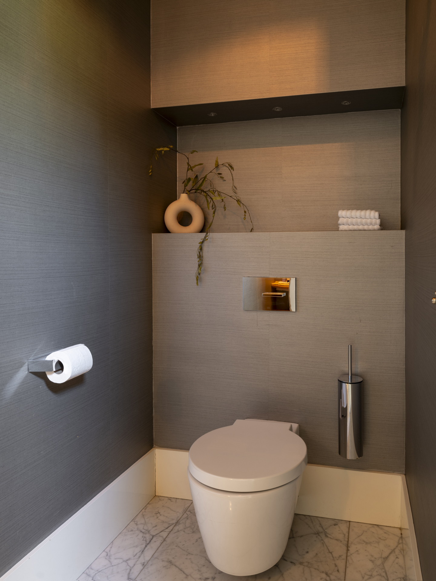 This cozy 'attic' level includes two spacious bedrooms located at the back and a separate, stylish bathroom. Additionally, there is a guest room with its own bathroom on this floor.