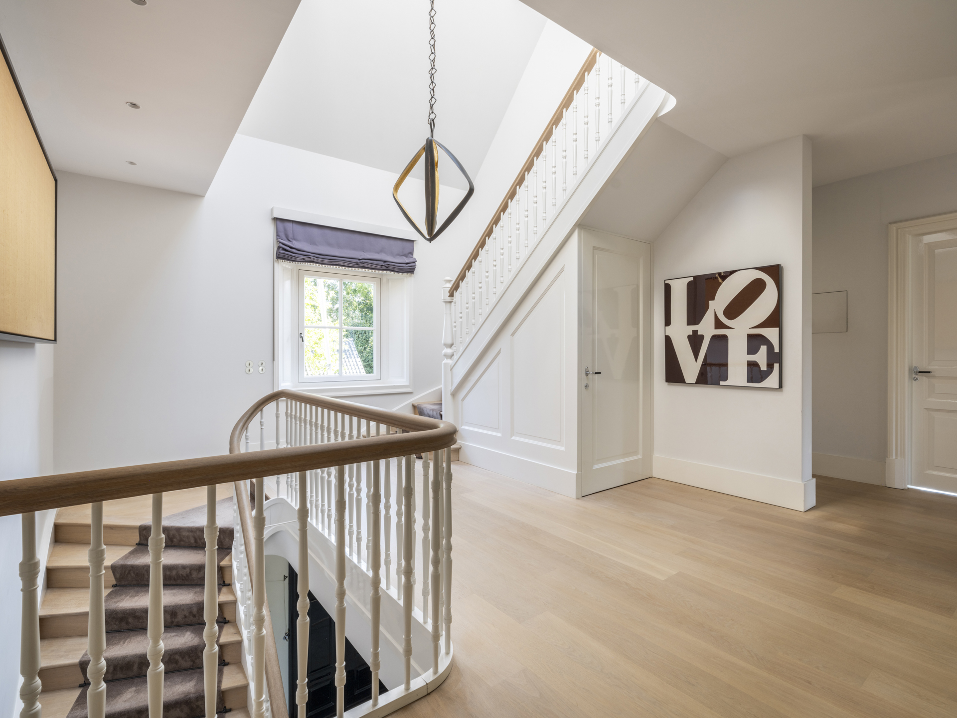 This unique villa offers the atmosphere and charm of a classical villa with the comfort and technology of today. The property includes 7 (bed)rooms, multiple work/TV rooms, and ample sanitary facilities and bathrooms. Additionally, the basement offers a large storage room, a playroom, a laundry room, and a gym.