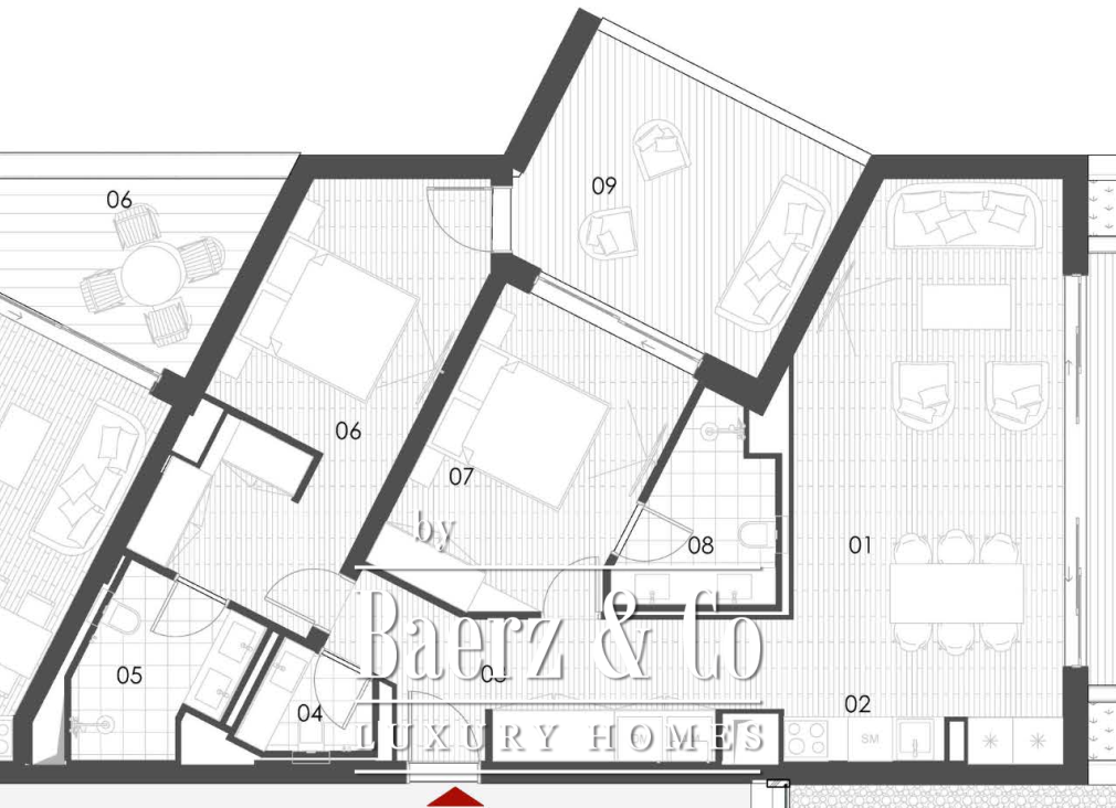 Apartment Budva offers refined contemporary living in a vibrant Montenegrin setting. This 108 m² apartment is located on the fifth floor of a modern building, presenting open-plan living, dining, and kitchen spaces that extend towards two sunlit terraces. The property includes 2 bedrooms, 2 bathrooms, a guest toilet, and a distinct sense of privacy and space. Both living room and bedroom connect seamlessly to outdoor terraces, inviting light and views in every season.