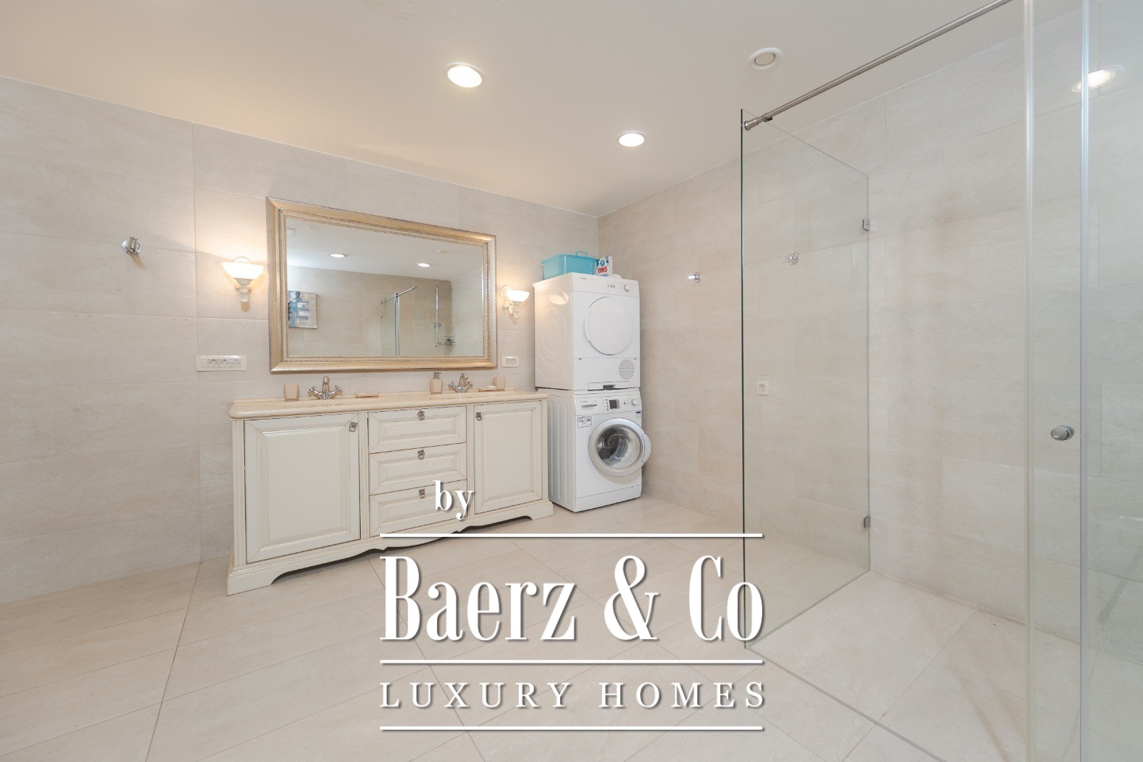 Three living rooms, each paired with kitchens and dining areas, lend flexibility for multi-generational living or hosting, while three private bathrooms ensure comfort and privacy. The 320m² plot is complemented by a private pool for quiet afternoons, and two garage spots offer ease and discretion.