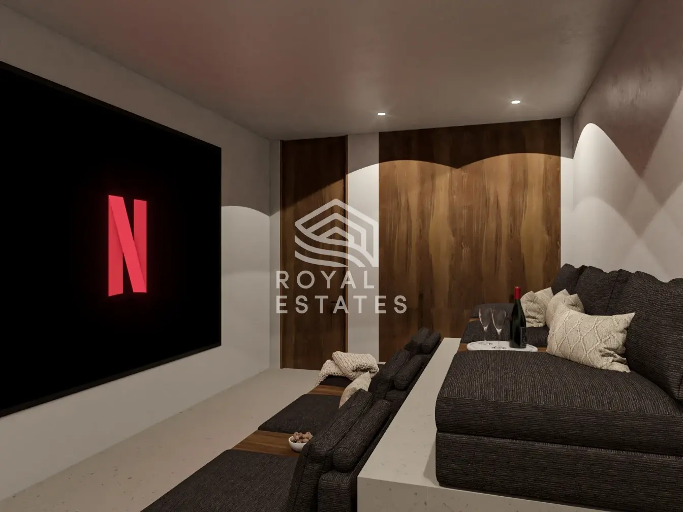The upper roof terrace is designed for both leisure and entertaining, with a second infinity pool, outdoor kitchen, and bar. On the lower floor, wellness is shaped by a boutique spa, professional gym, and cinema, while a guest suite ensures privacy. Amenities such as a secure garage, glass showcase, alarm system, gym, and large parking area complete the offering. Natural materials, custom furnishings, and integrated technology create an atmosphere of understated luxury. Villa Cala Salada is a property where serenity, discretion, and contemporary design engage fully with Ibiza’s authentic landscape.