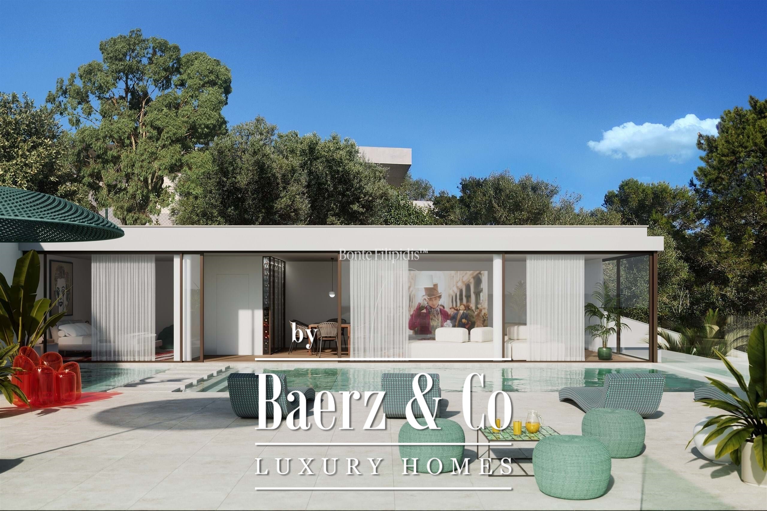 Duplex villa Cascais e Estoril presents a restrained balance of design and functionality, situated in the sought-after Alto Estoril enclave. This property offers 543 m² of indoor living area, five bedrooms, and five bathrooms, quietly enveloped by landscaped gardens and a private swimming pool. Light filters in through generous glazed surfaces, lending a rhythm of openness to the two-level residence, while marble flooring, underfloor bathroom heating, and integrated home automation offer discreet comfort throughout.