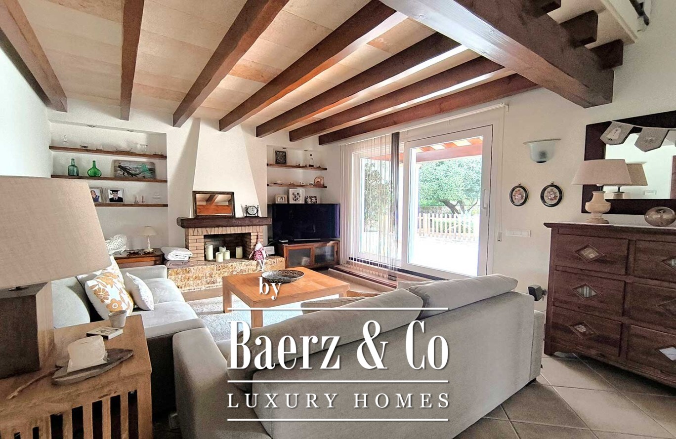Outdoors, a generous swimming pool anchors a landscape unified by mature trees and immaculate artificial grass, creating both serenity and ease of care. The villa in Ciutadella de Menorca combines authenticity and privacy with immediate access to the Mediterranean coast, presenting a rare lifestyle opportunity.