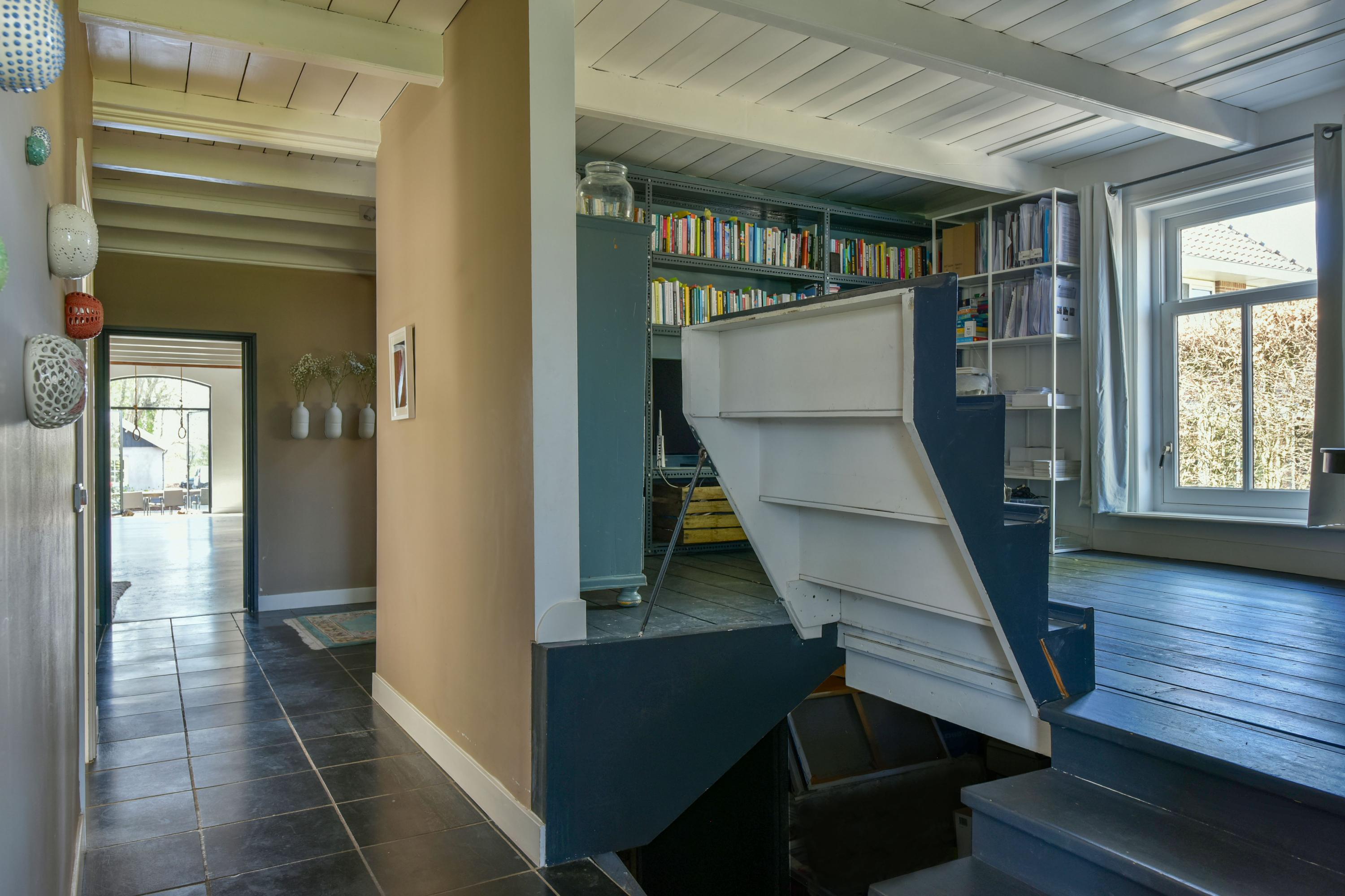 The raised room (“opkamer”) is reached via a staircase, under which you'll find the original cheese cellar. A clever bit of craftsmanship: part of the staircase lifts to reveal the cellar, where original wooden cheese trays remain – silent witnesses to the home’s artisanal past. The room above exudes atmosphere and history, making it perfect as a cozy TV room, home office, or playroom.