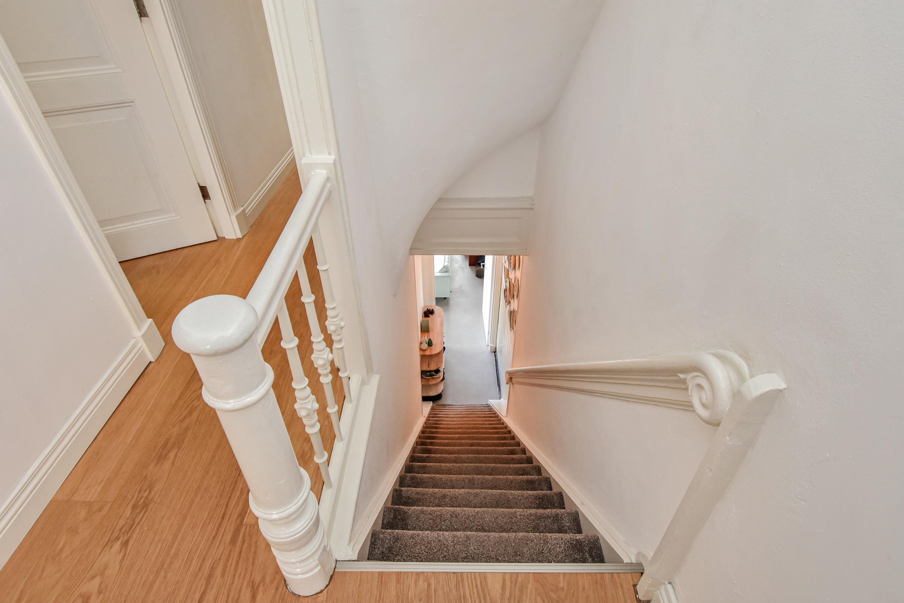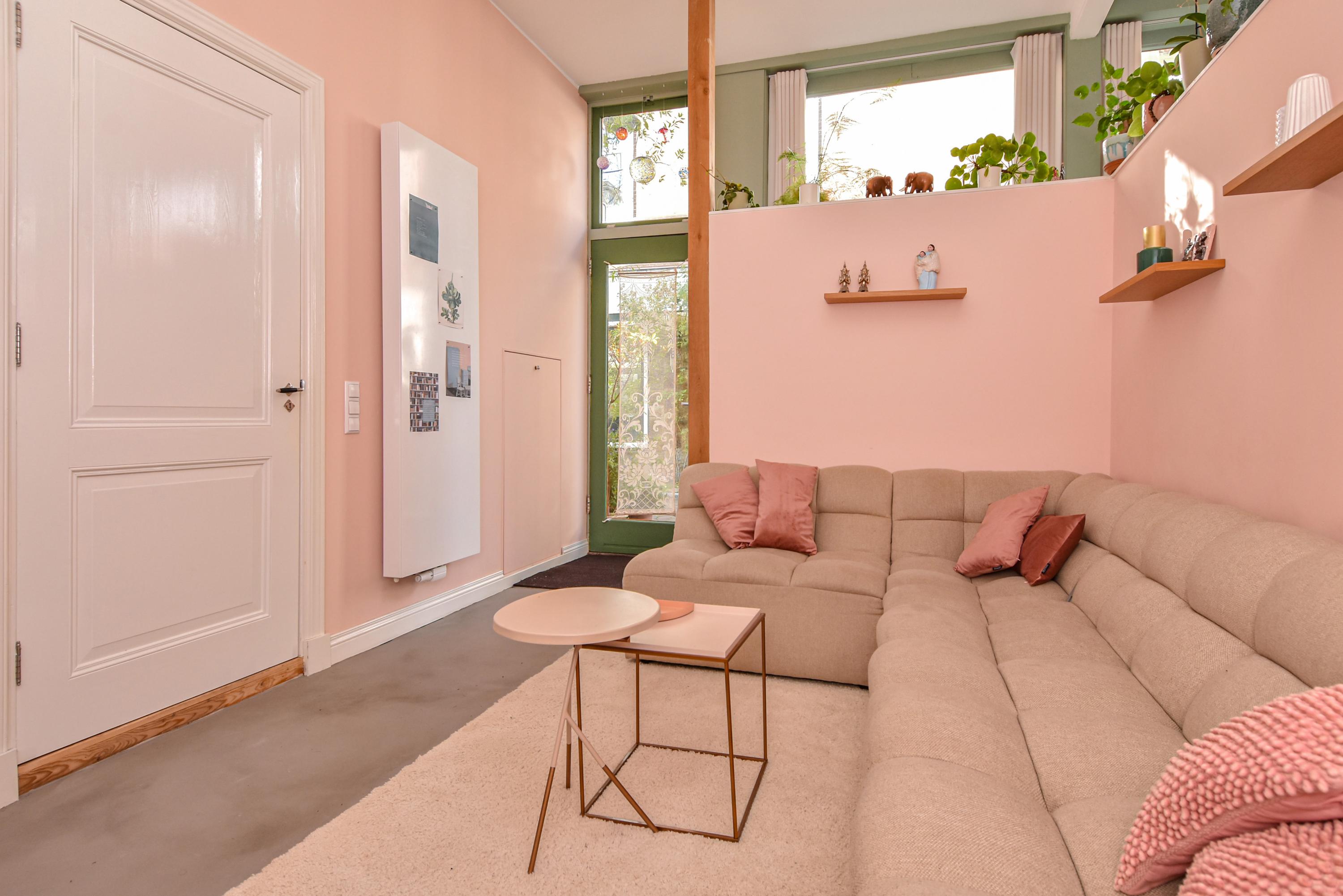 Upon entry, high glass façades and a ceiling soaring to 3.55 meters define the main living kitchen. Preserved stucco moulding and stained-glass windows celebrate architectural provenance. The kitchen, equipped with luxury built-in appliances, is anchored by spaces for dining and entertaining, flanked by two generous living areas. An integrated studio, with a private entrance and underfloor-heated bathroom, adapts easily to a guest suite or workspace. The ground floor includes ample storage and direct access to Broerhuisstraat.