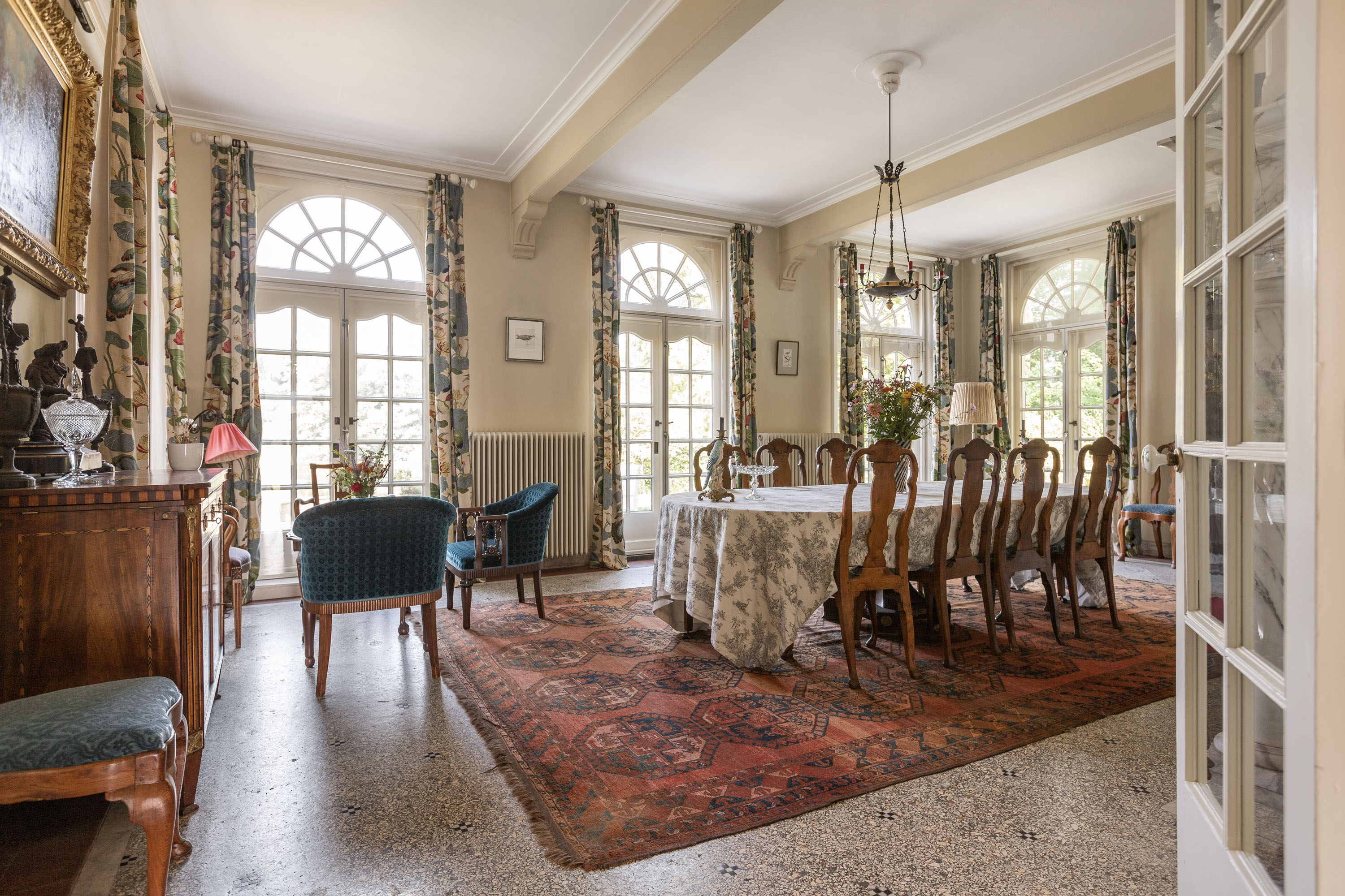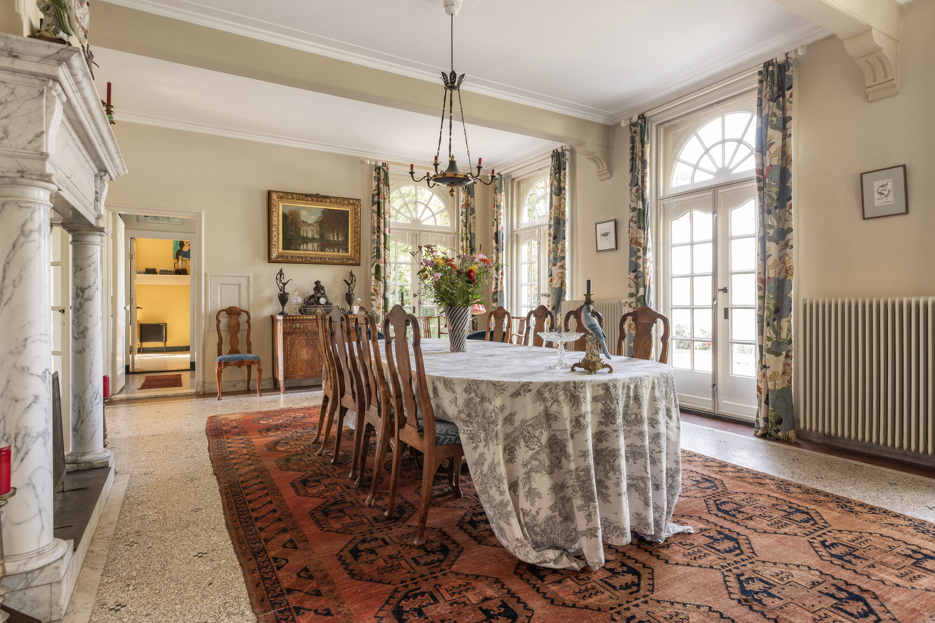 Over the past decade the current owners have made every effort to restore the estate to its former glory. Together with Landschap Overijssel and several renowned partners a restoration plan was carried out for both the garden and the park. Everything was done in line with the intentions of landscape architect L.A. Springer, who designed the estate in the early 1900’s. The two main sightlines from the house to the lakes have been restored as well as several sightlines on both sides of the house, including the so-called maid's lane leading to the nearby farmhouse. The restoration and (re)design of the rose garden, borders, lawns with garden ornaments, ornamental forest edges, decorative shrubbery, park layout with old trees, orchard, and wildflower meadow with historical ornamental plants were completed, complementing the garden and park. It is almost inconceivable how many plants and shrubs have been planted in recent years.