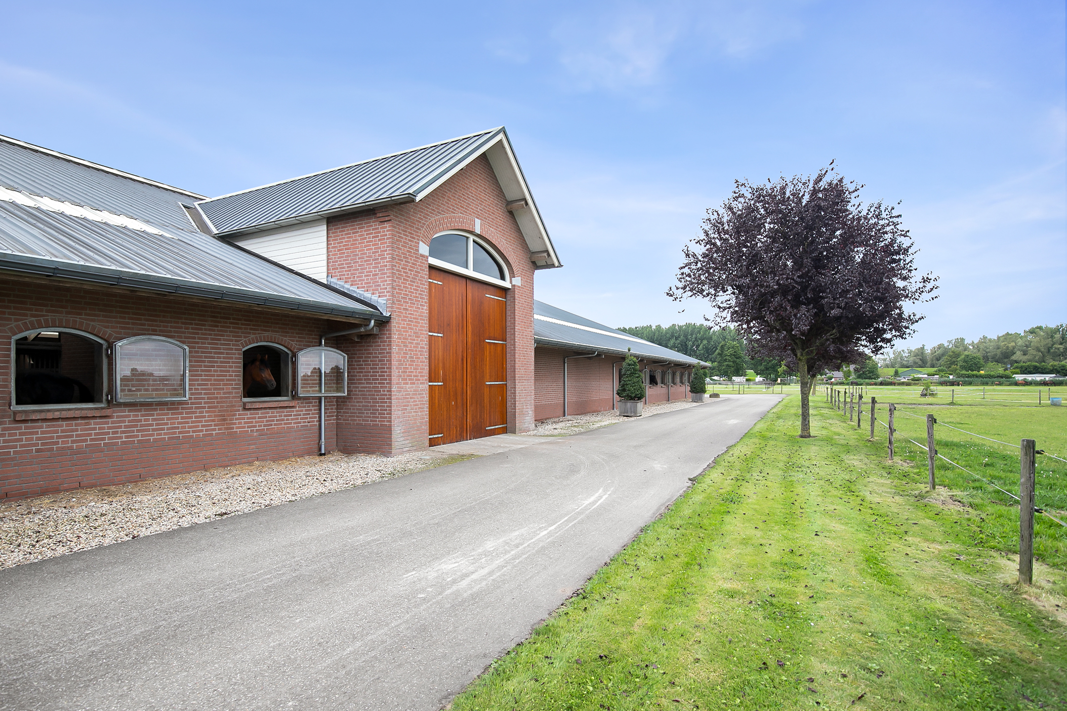This beautiful, complete and well-maintained equestrian accommodation offers plenty of possibilities due to the presence of a beautiful luxuriously finished detached house, a total of 39 horse stables, a spacious indoor and outdoor arena (approx. 21x61 metres), a reception area, two flats which are perfect for groom's quarters, a covered horse walker and various meadows. All this is situated on a generous plot of no less than 4 ha in an excellent, central location in the middle of the Netherlands.