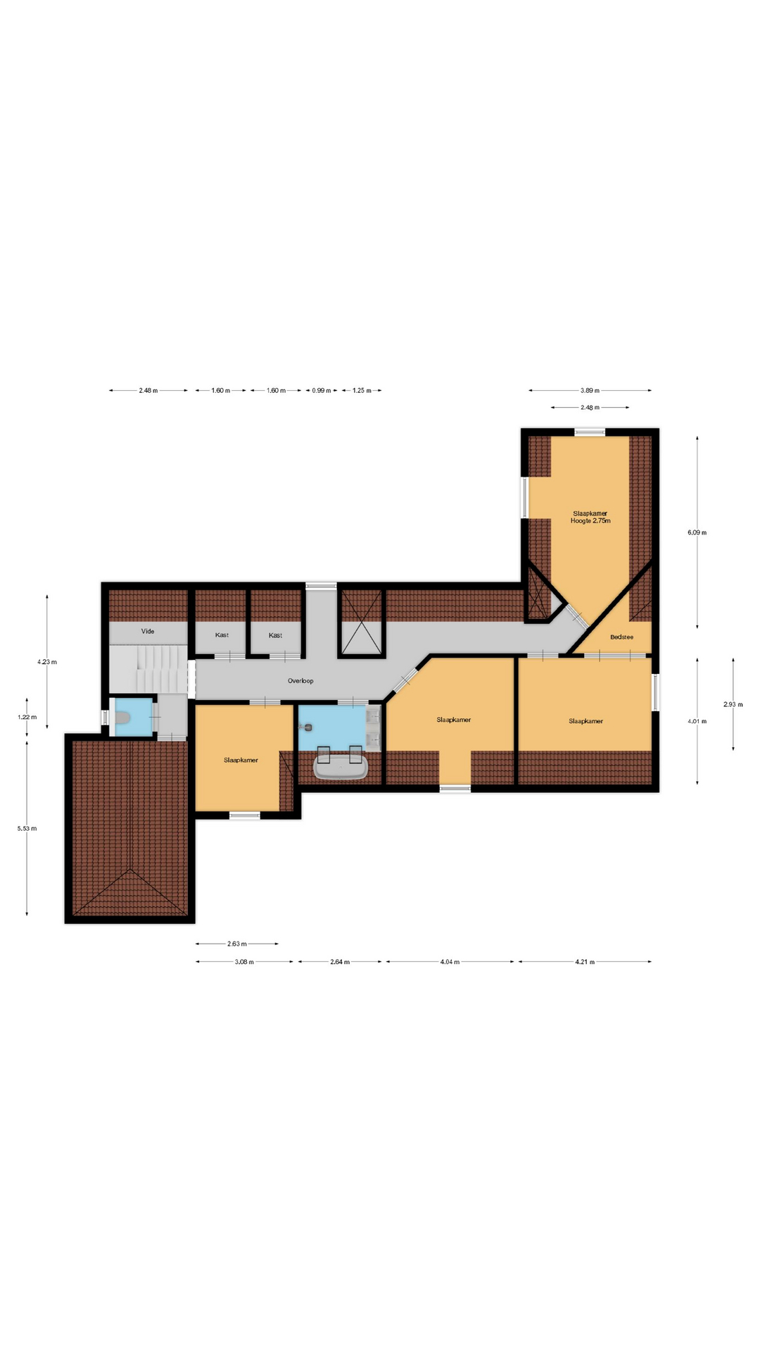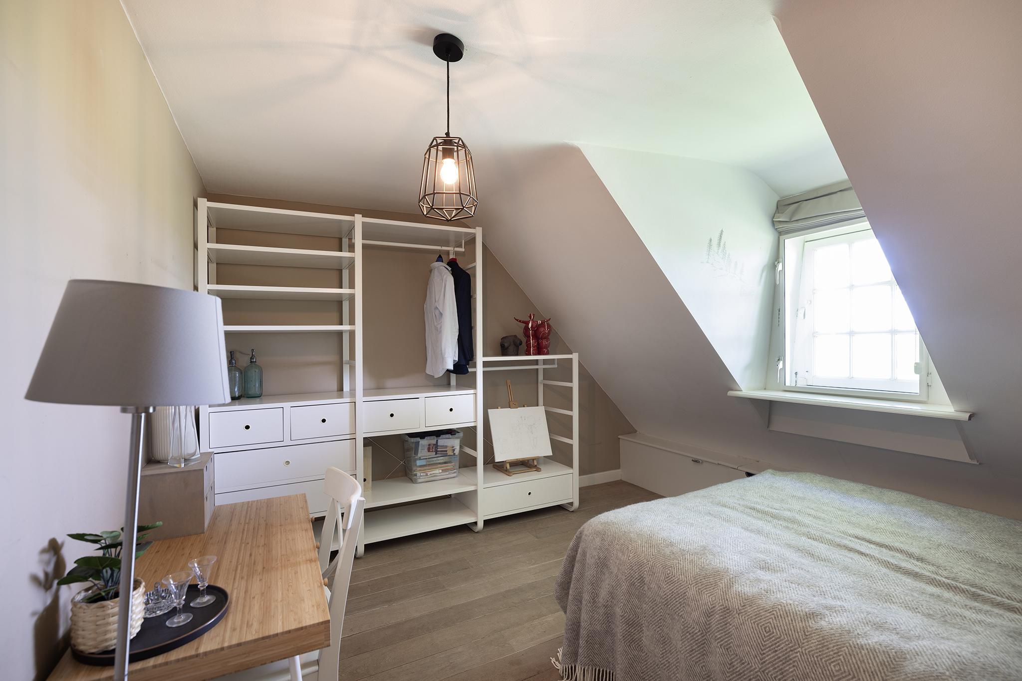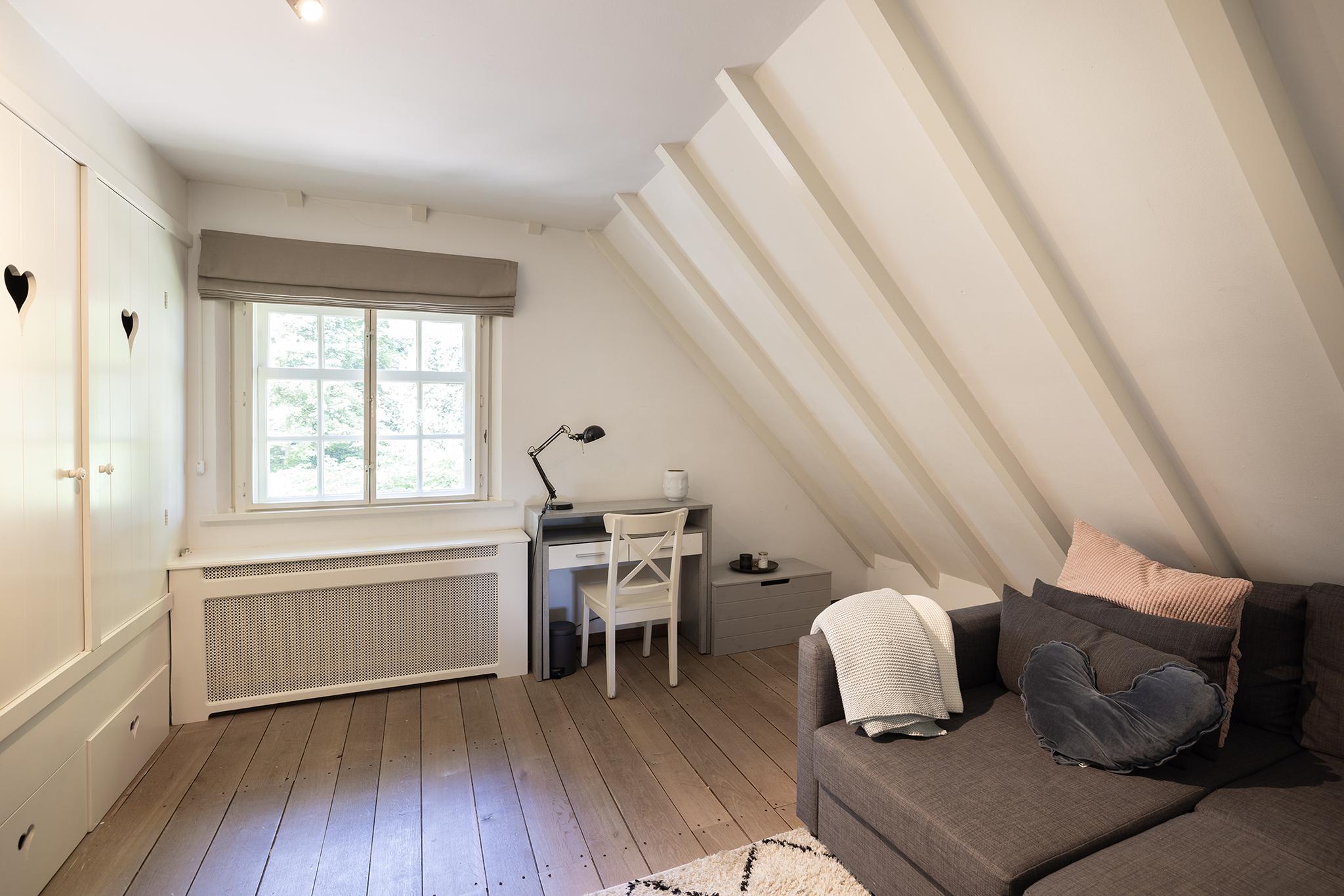 De opkamer met uitzicht op de polder is een geweldige werkkamer, voorzien van een grote schouw en een eigen entree. Onder deze kamer bevindt zich één van de twee kelders, nu in gebruik als royale wasruimte. De verdieping biedt nog meer ruimte: 4 slaapkamers, een moderne badkamer, apart toilet en zelfs een bedstee voor wie het knus wil houden.