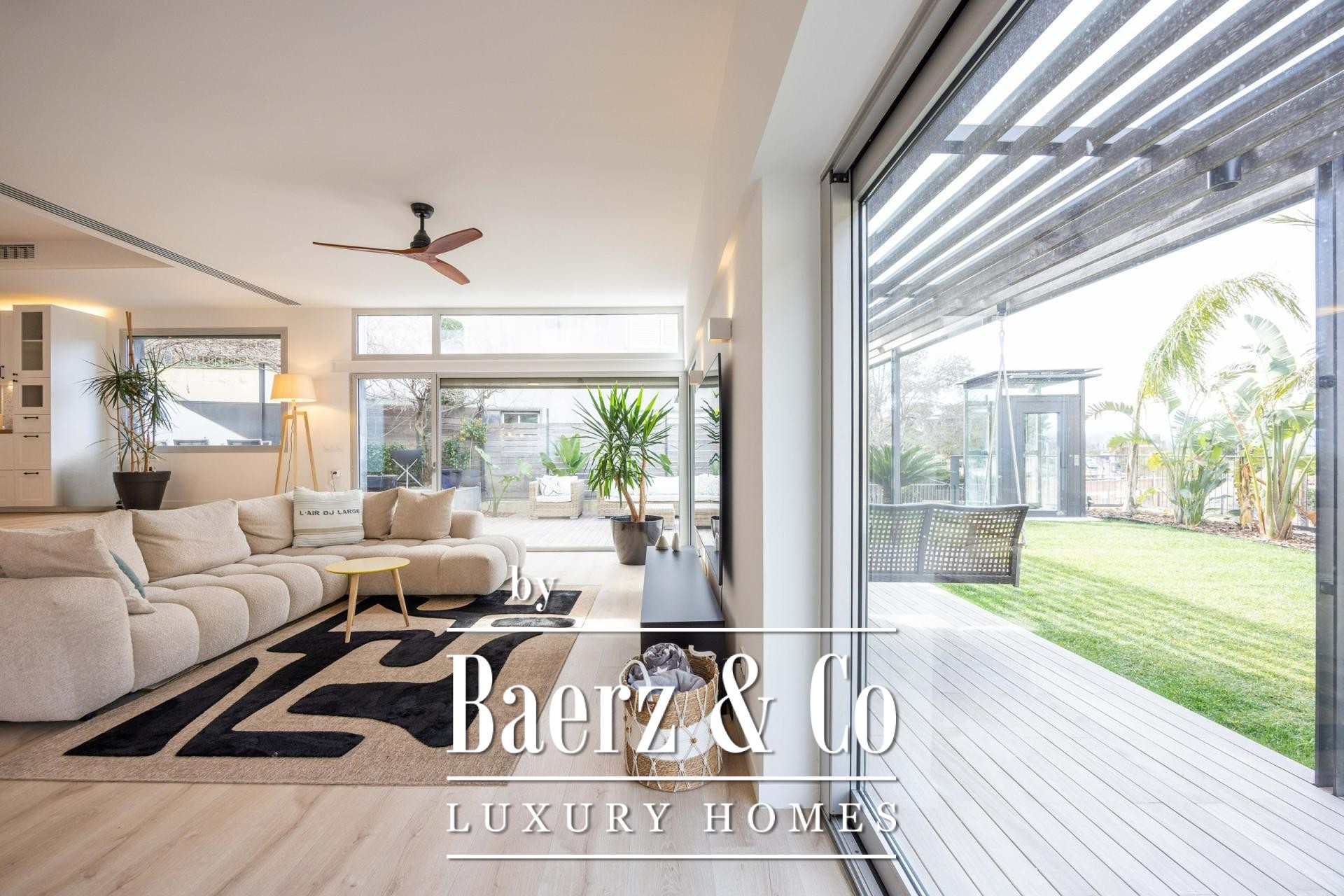 Luxury villa Esplugues de Llobregat presents a synthesis of contemporary architecture and serene Mediterranean living. This residence, renovated in 2025, offers 314 m² across three polished levels, featuring four bedrooms and four bathrooms. Unfolding within a 602 m² plot, light becomes a defining element as floor-to-ceiling windows bathe the living spaces with warmth throughout the day.