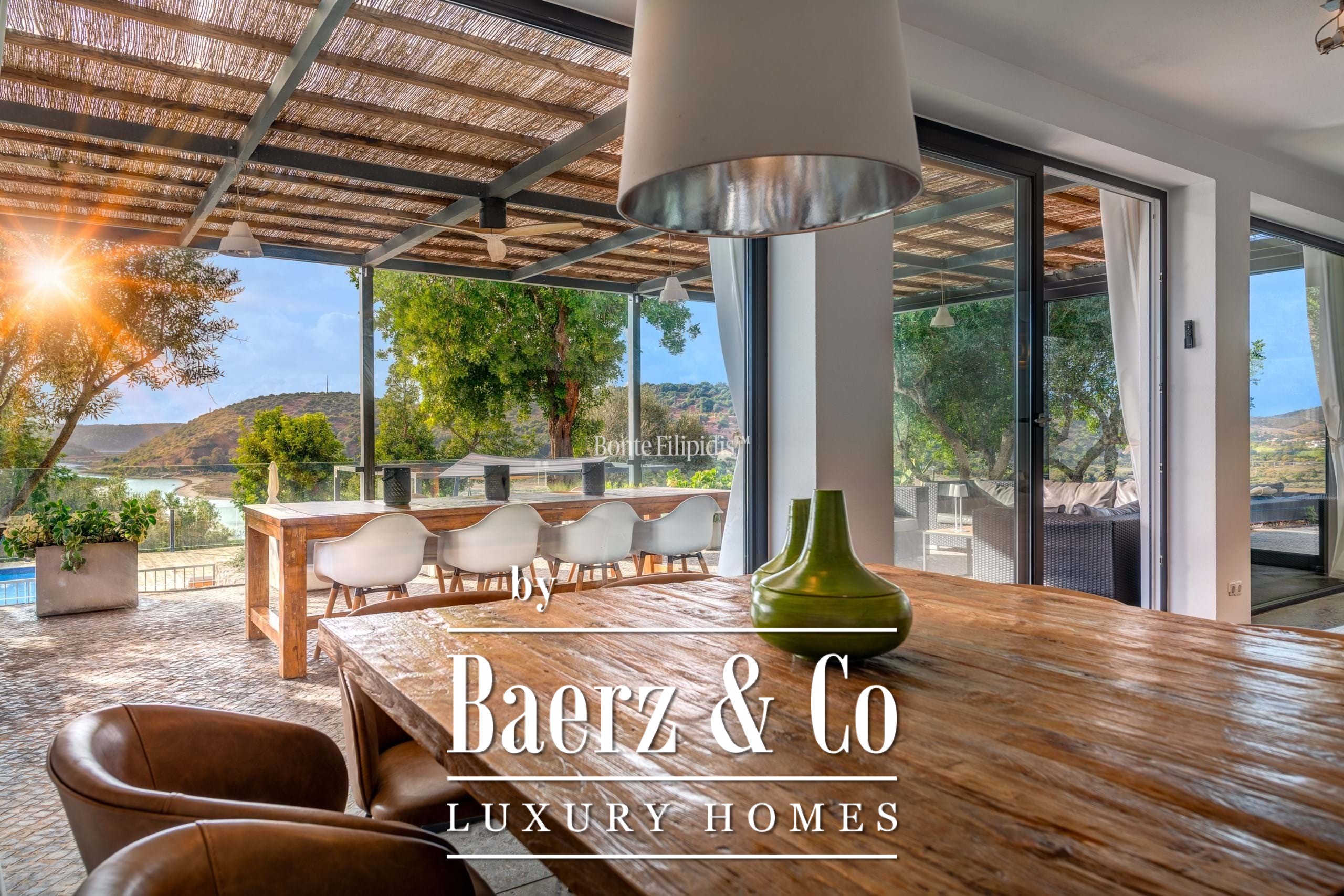 Villa in Silves offers a distinctive balance of contemporary architecture and natural serenity along the banks of the River Arade. Designed by Studio Arte of Portimão, this four-bedroom villa places you a short distance from the medieval heart of Silves, while ensuring each day is shaped by the soft cadence of the Algarve countryside. The property encompasses 180 m² of refined interior living space across two levels, with four spacious suites and a guest bathroom. Walls of glass open to a 260 m² covered terrace, drawing in river and mountain views and bridging interior and exterior with thoughtful simplicity.