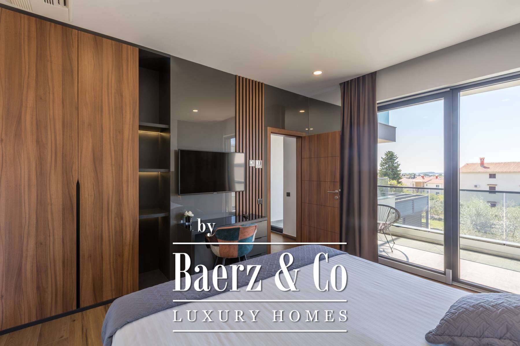 Villa Fažana with panoramic sea views invites refined living on the Adriatic. This villa in Fažana, Croatia, offers 450 m² of meticulously arranged space distributed across three floors, all oriented to maximize sunlight and an unobstructed view toward the Brijuni archipelago. Step into the ground floor, where a luminous living room unfolds beside a sculpted stone terrace and a 60 m² overflow pool. The large glass walls, ceiling-integrated air conditioners, and three point two meter ceilings enhance the sense of openness. The contrast of modern wood lines and centuries-old olive trees evokes both sophistication and warmth.