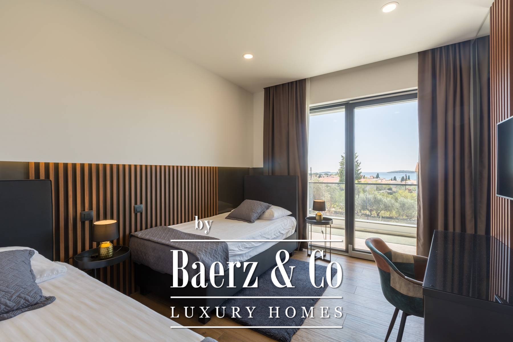 Outdoor living is elevated through a fully equipped summer kitchen, sunbathing zones with remote-controlled pool massage, and parking for three or more vehicles, all within a 625 m² plot. Built in 2020, Villa Fažana exemplifies intentional design and privacy, offering unobstructed sea views and a tranquil landscape that rewards both presence and discretion. For those seeking a luxury villa for sale in Fažana, this residence is a study in balance, space, and enduring style.
