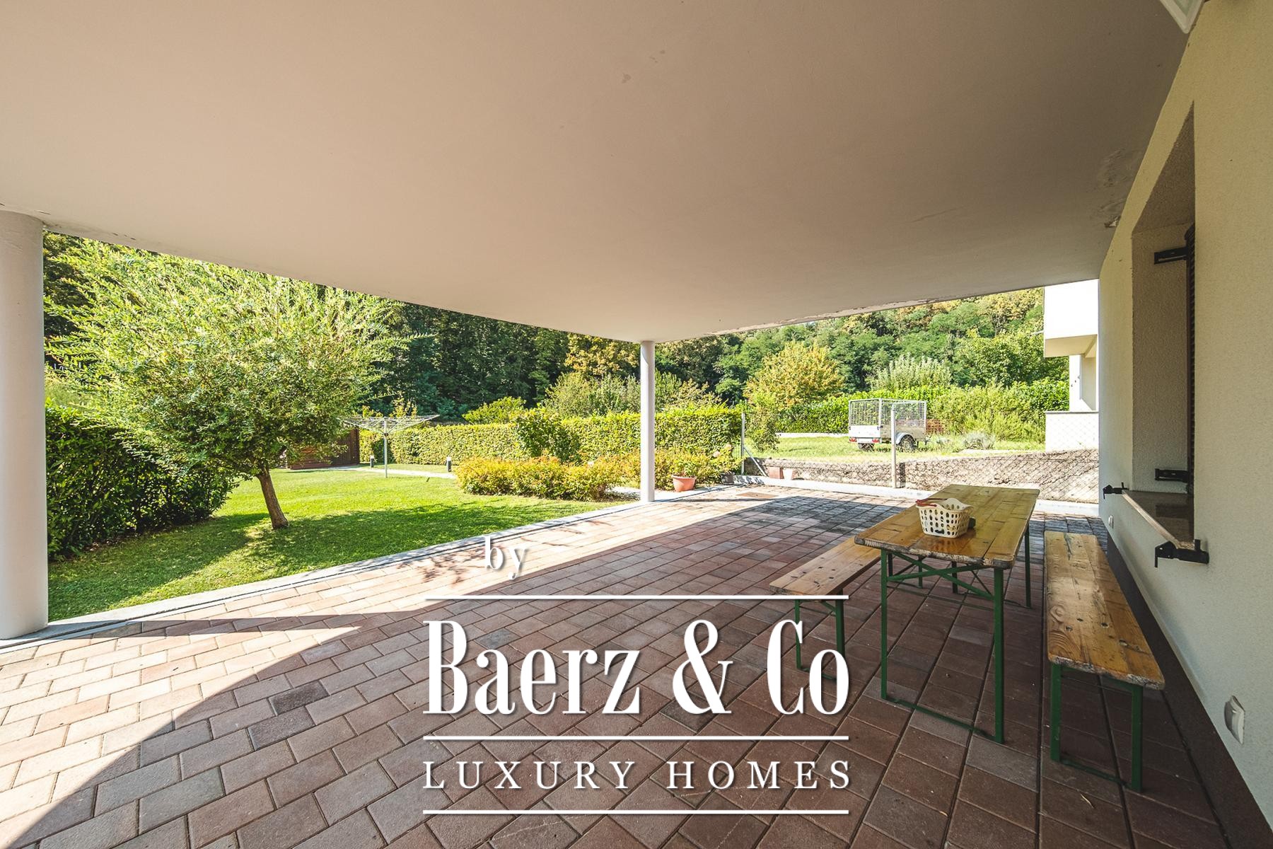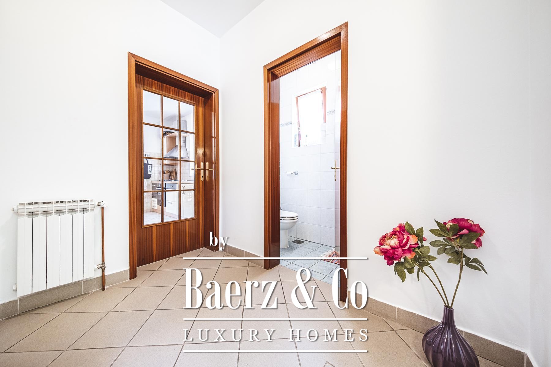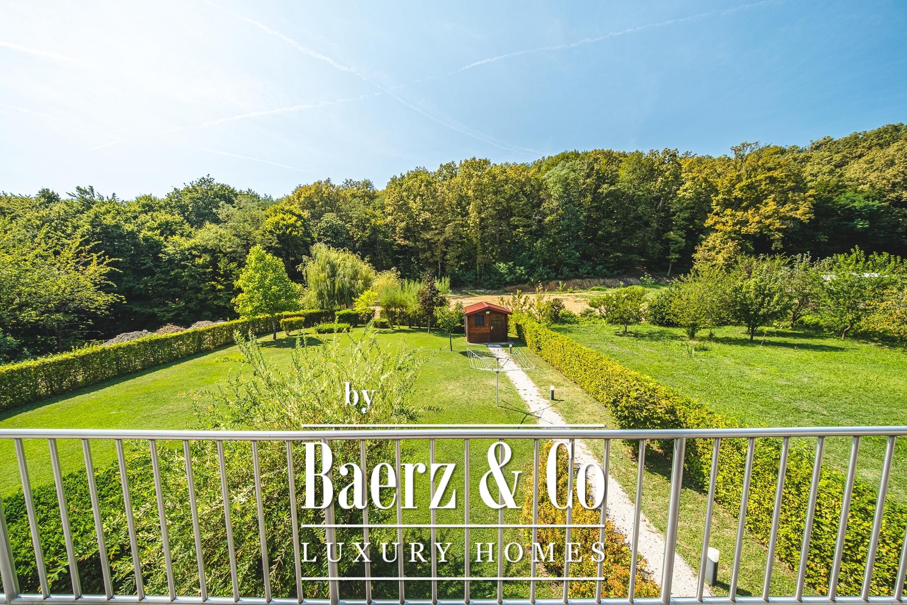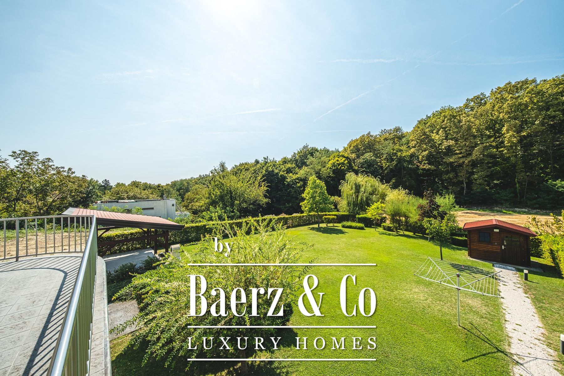 bedroom with bathroom and dressing room. Excellent layout of the rooms and extremely good orientation contribute to the brightness of all rooms, especially the living room. A semi-furnished, fully equipped kitchen and plenty of built-in furniture are for sale. Beautifully landscaped garden, heated access road to the garage and parking lot. Air-conditioned, underfloor heating in bathrooms, fireplace... Located in an idyllic location tucked away from the main road, close to public transport, kindergarten, primary school and all necessary facilities. All other information on request.