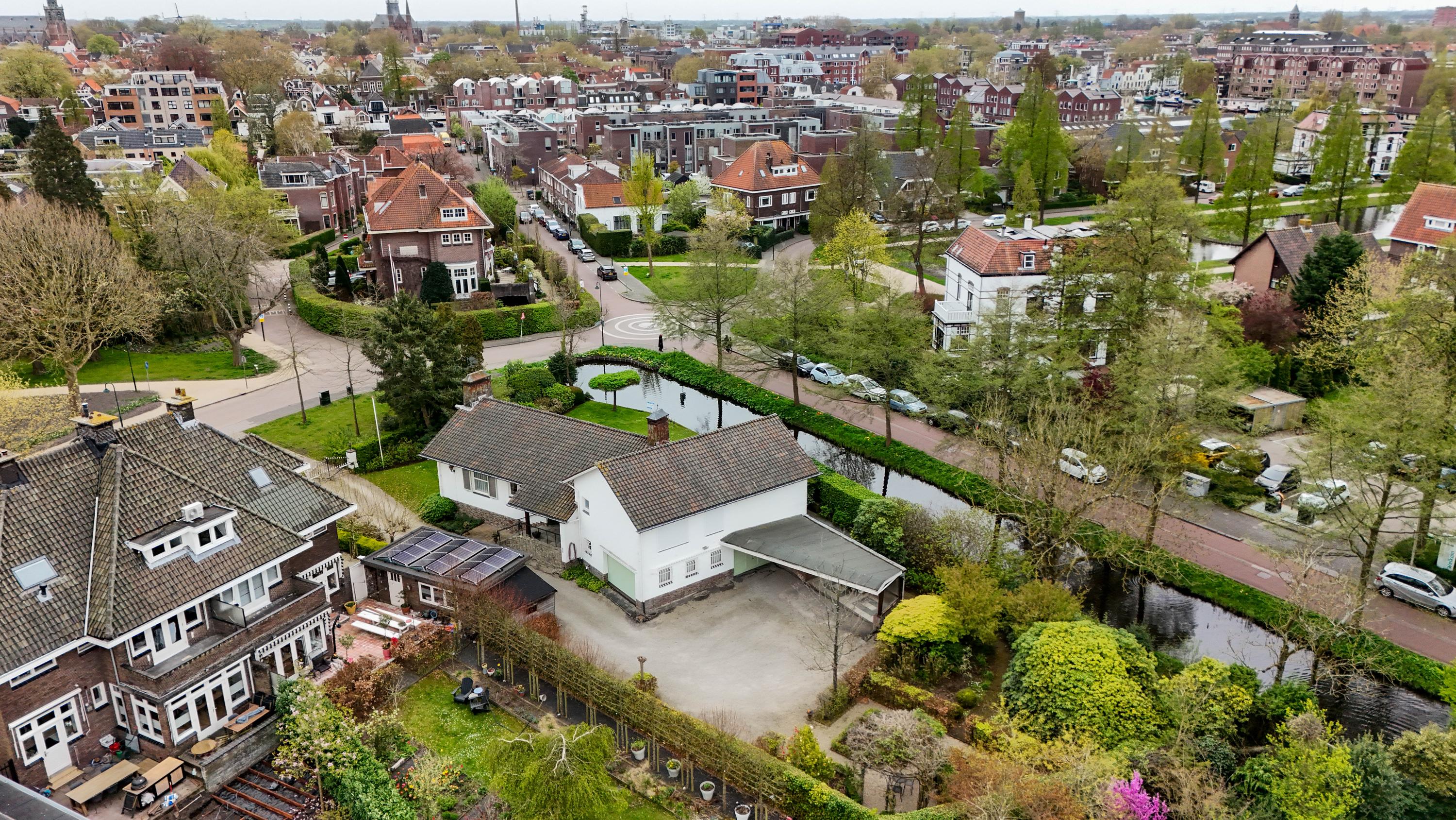 Located on the beautiful Van Bergen IJzendoornpark, this architect-designed detached villa dating from 1957 stands on a generous plot of no less than 1,882 m² of freehold land and water. Here, you enjoy complete privacy, with views over the park and the pond, while the historic city centre of Gouda and the central railway station are both within walking distance.