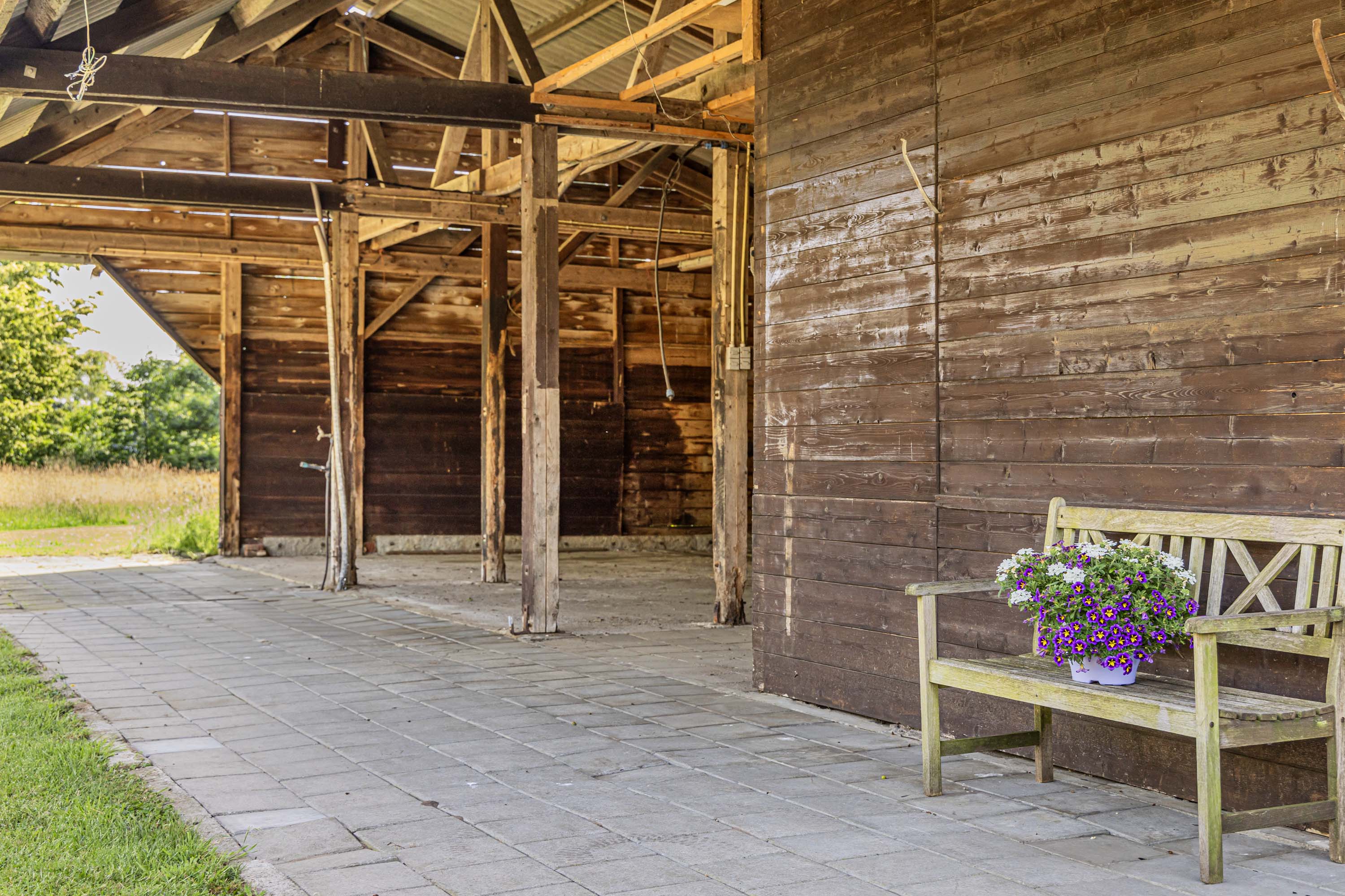 • Another half-open barn, in moderate condition but very usable for larger equipment storage or keeping hobby animals. (Dimensions approximately 16 x 13 meters)