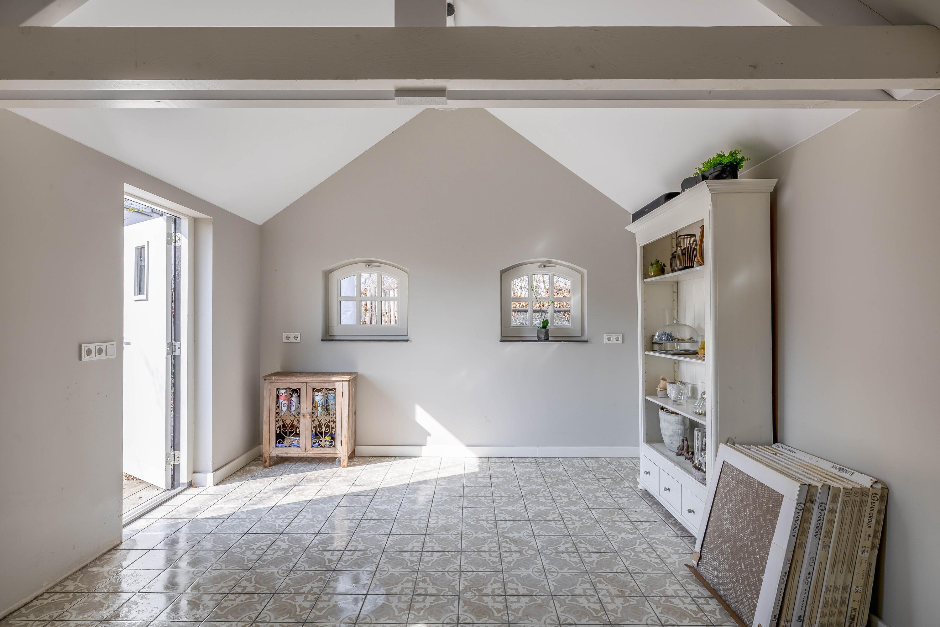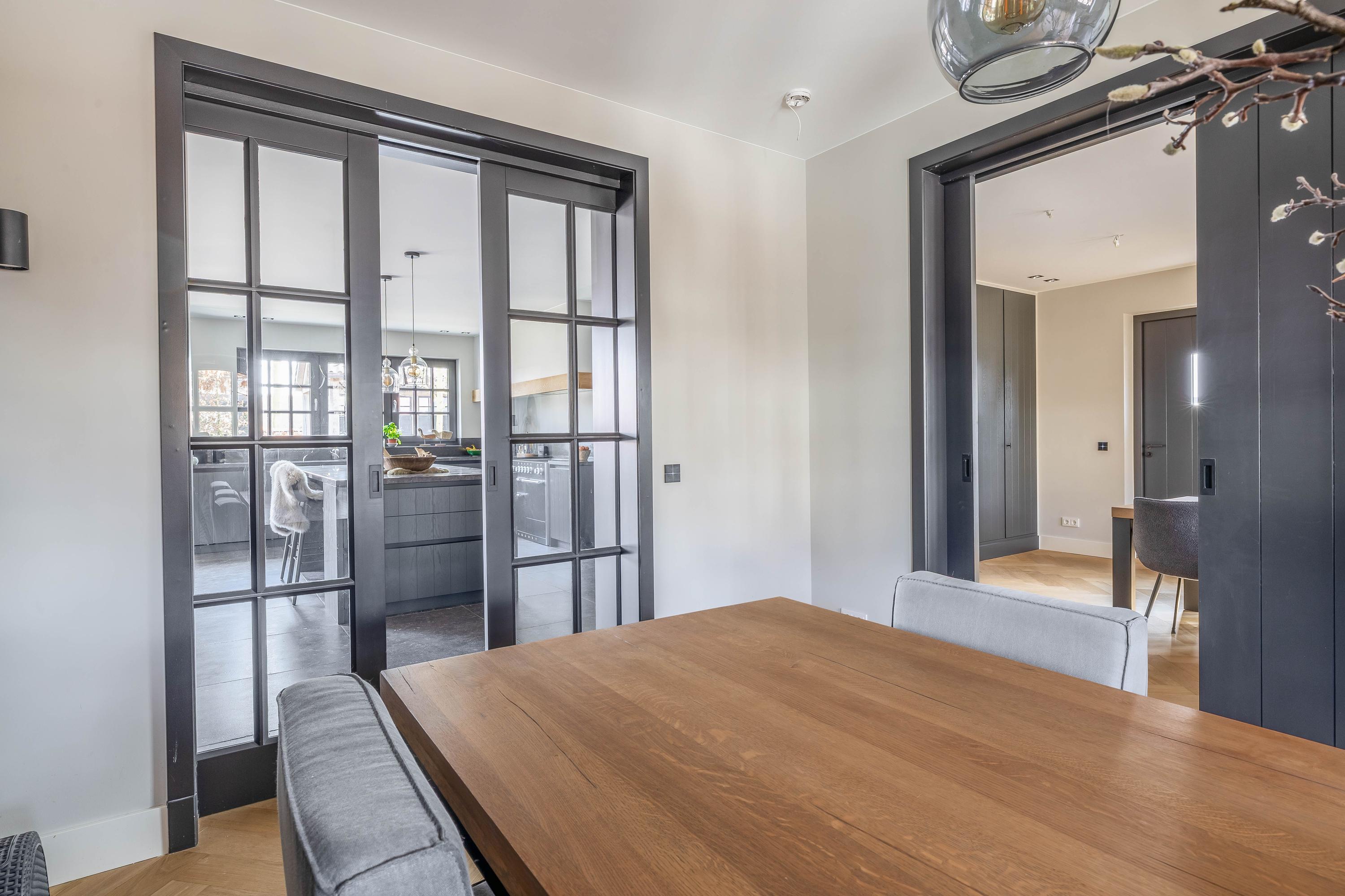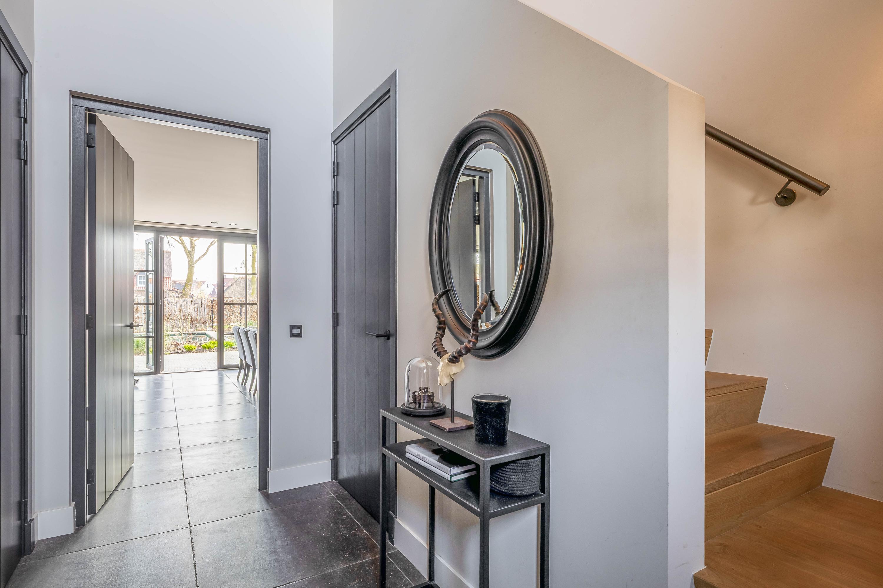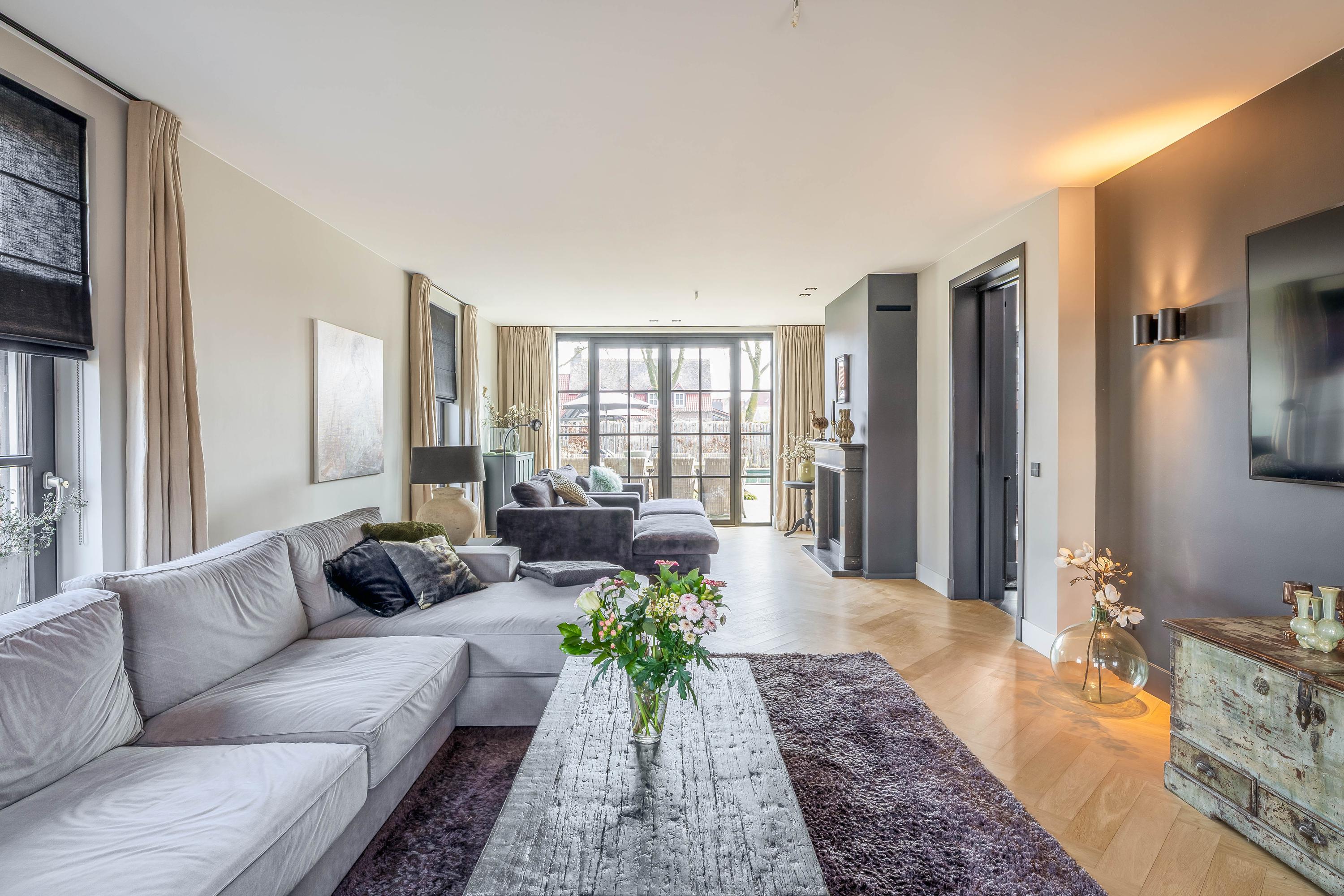 This farmhouse offers you a rare opportunity to live in an oasis of luxury, comfort, and privacy. With attention to detail, high-quality materials, and a thoughtful layout, every floor showcases a cohesive design where ceramic tiles, an oak herringbone floor, and meticulously applied stucco unite to form a warm and elegant whole. The seamlessly coordinated materials and finishes give every space a refined, consistent look.