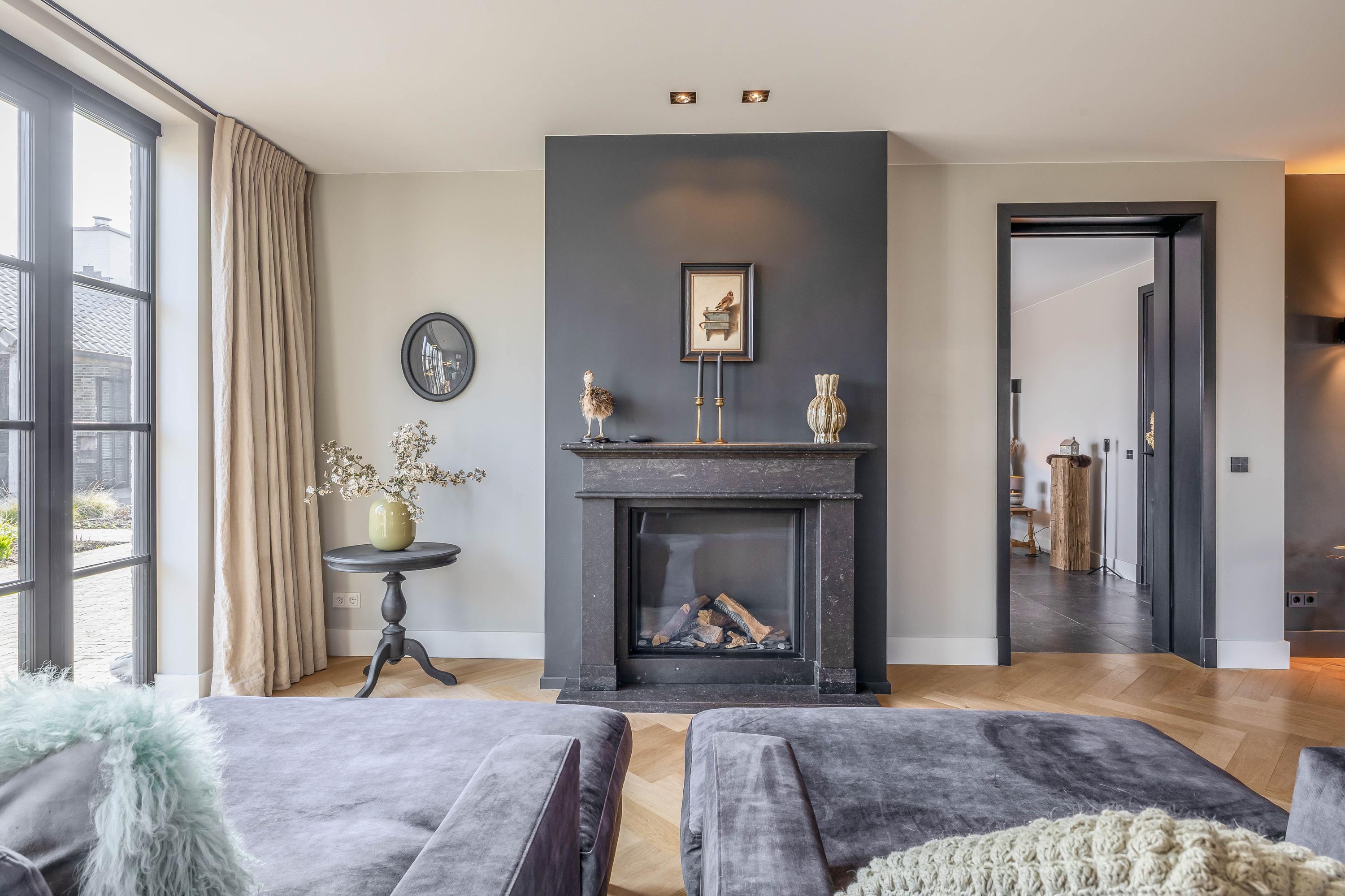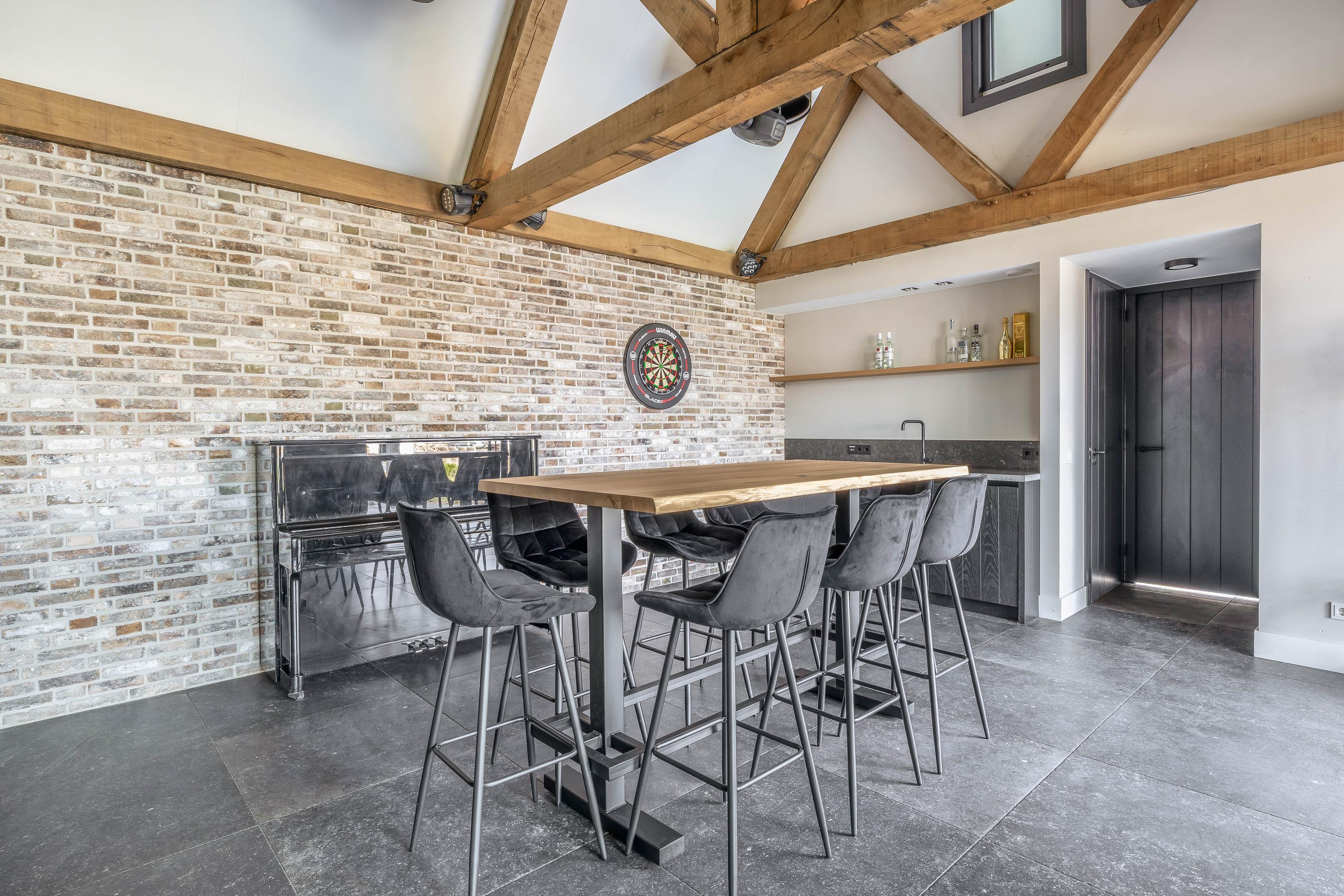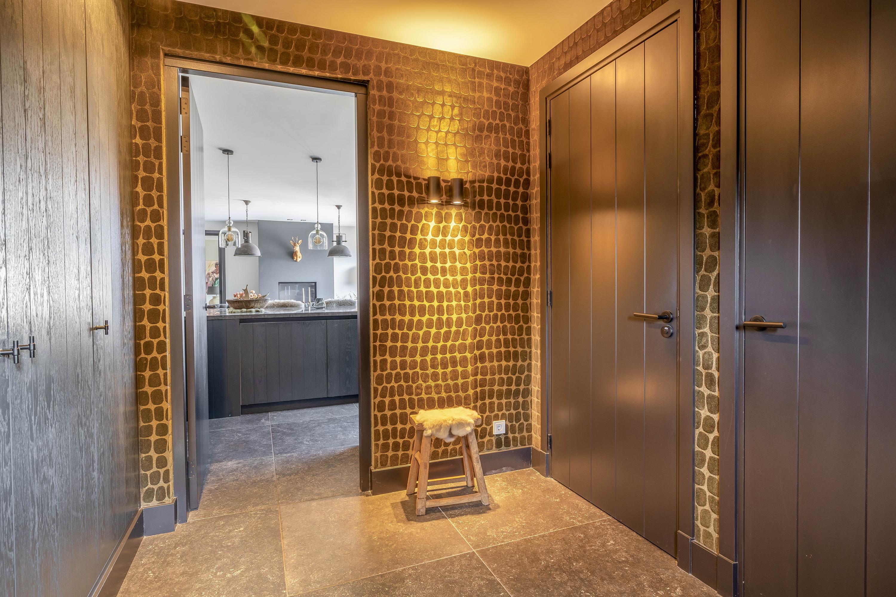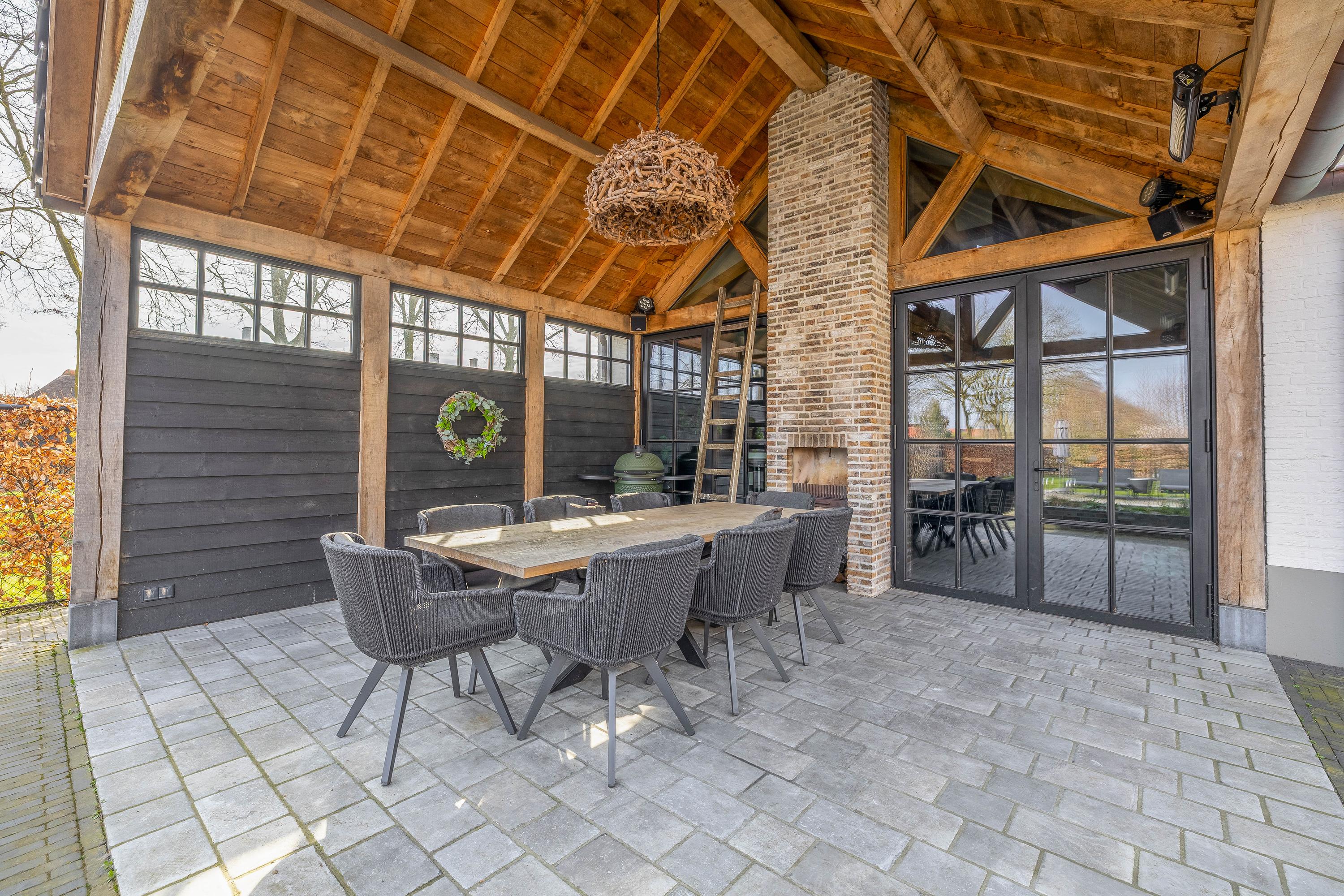 This farmhouse offers you a rare opportunity to live in an oasis of luxury, comfort, and privacy. With attention to detail, high-quality materials, and a thoughtful layout, every floor showcases a cohesive design where ceramic tiles, an oak herringbone floor, and meticulously applied stucco unite to form a warm and elegant whole. The seamlessly coordinated materials and finishes give every space a refined, consistent look.