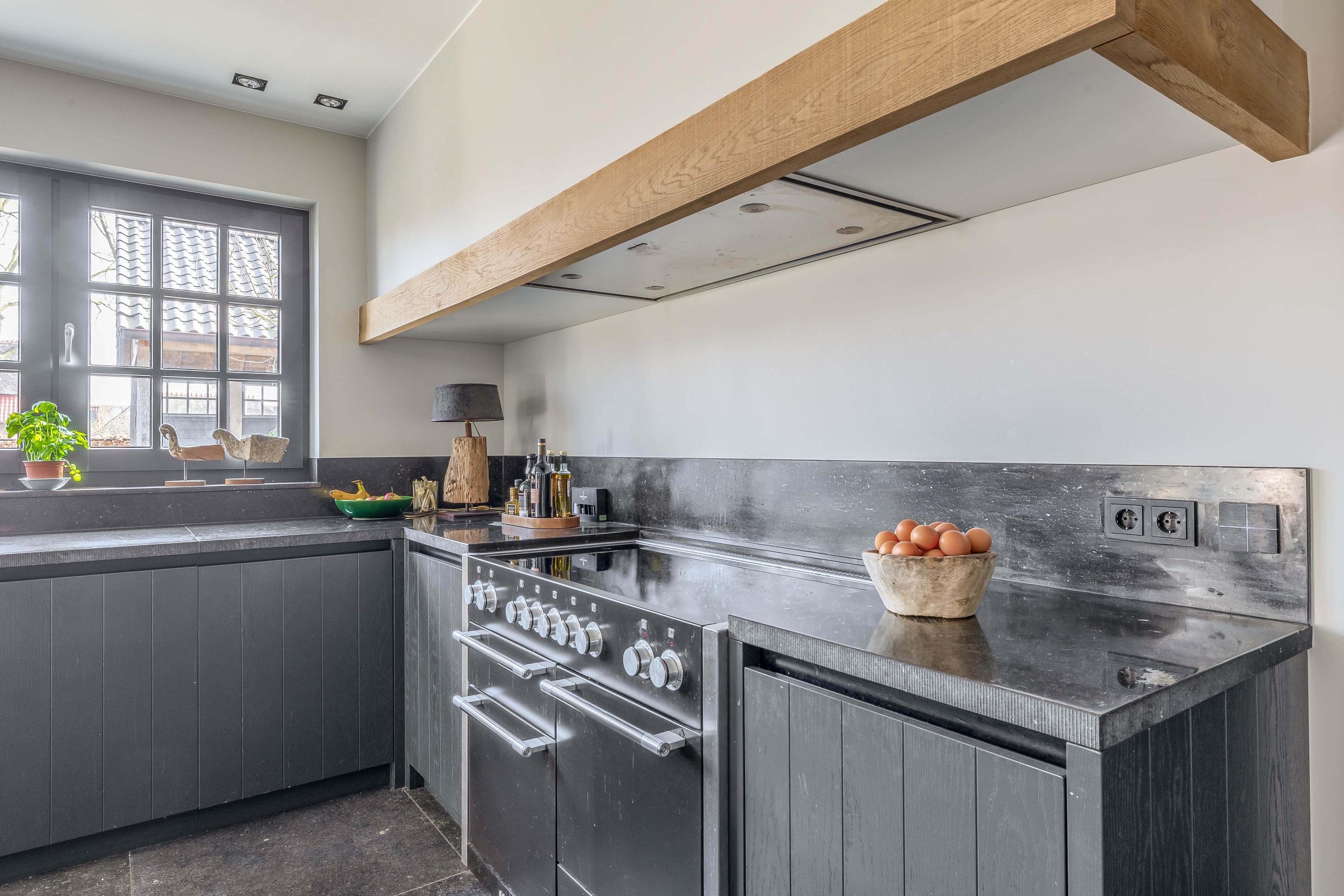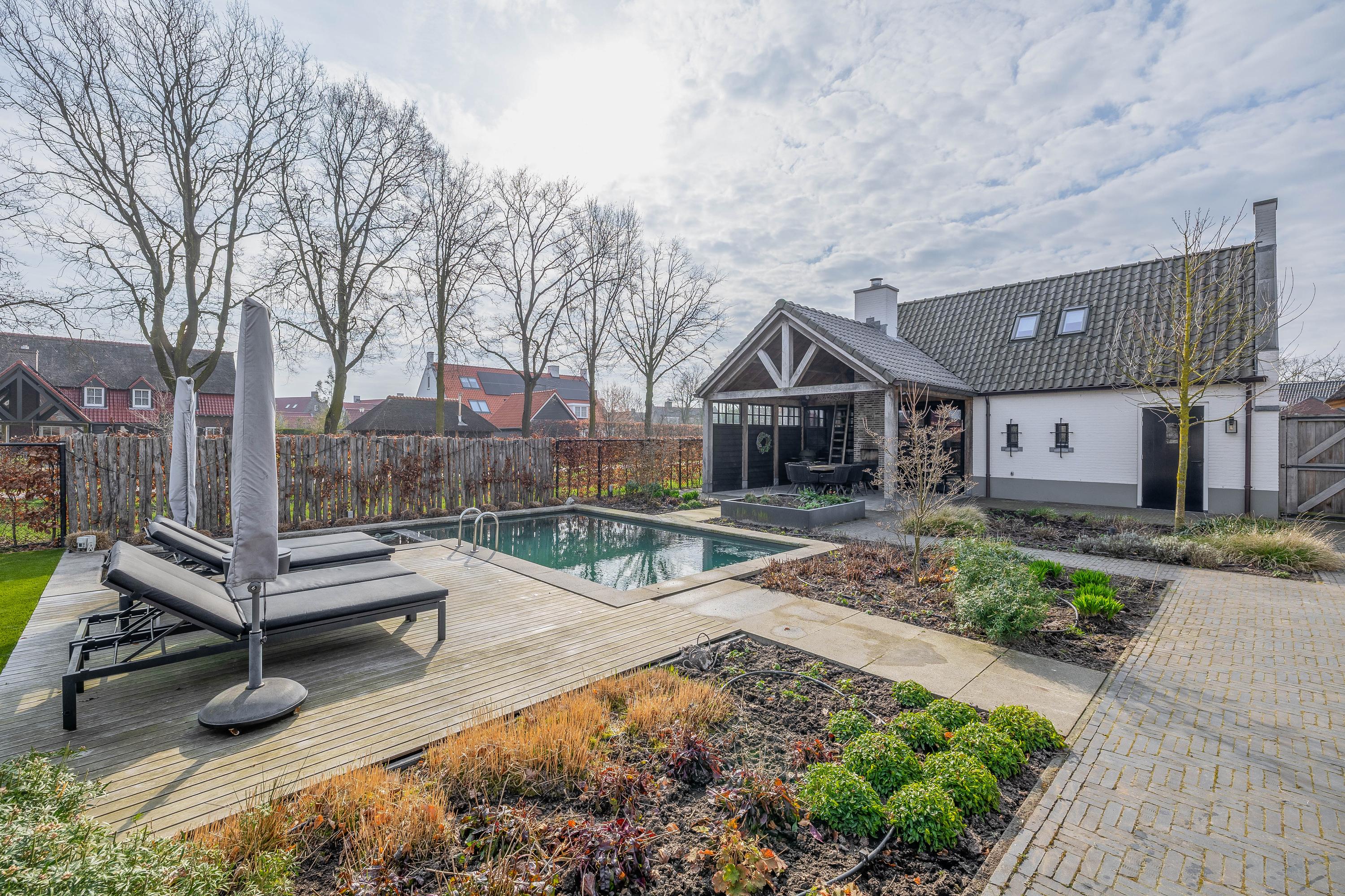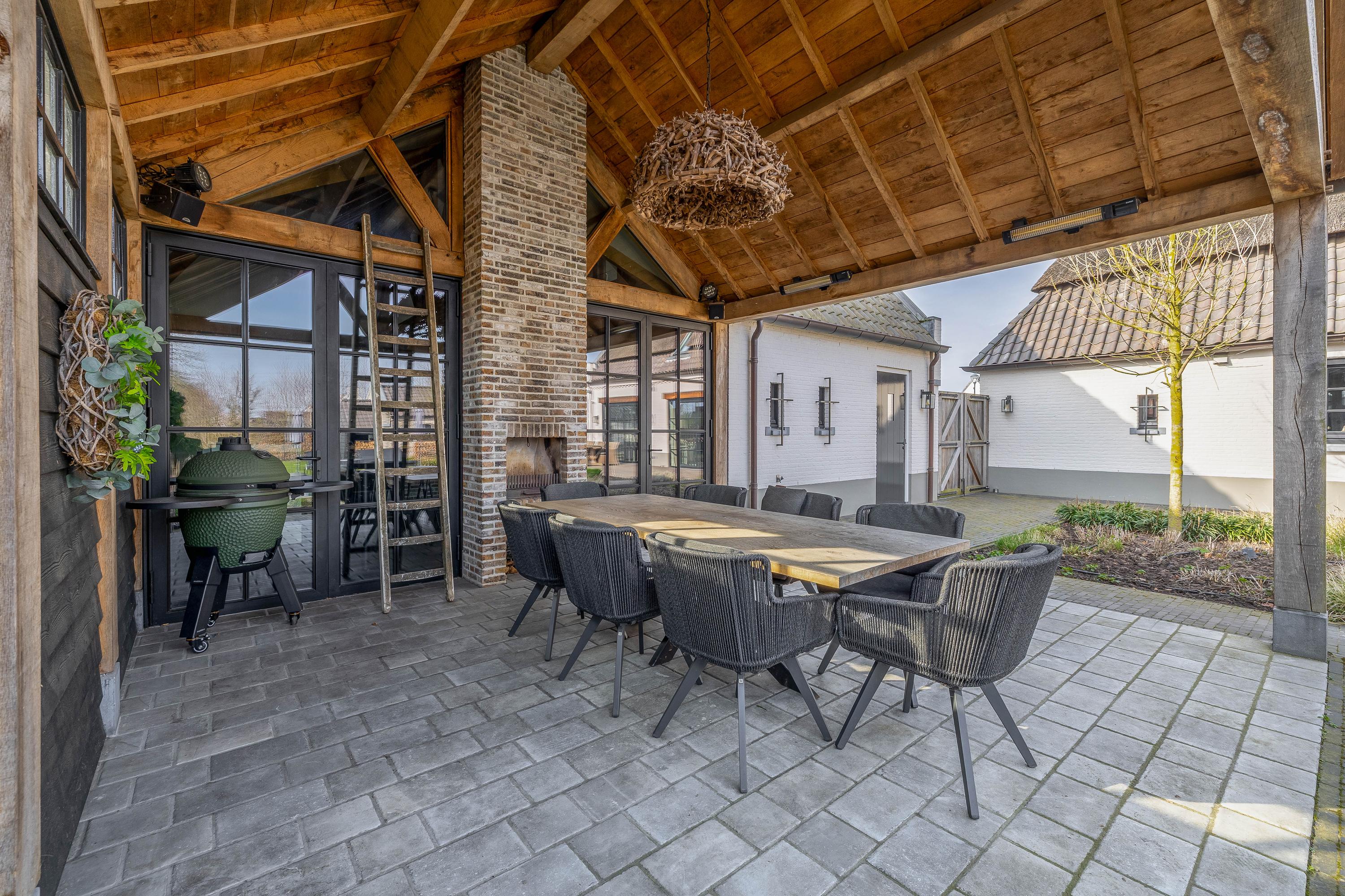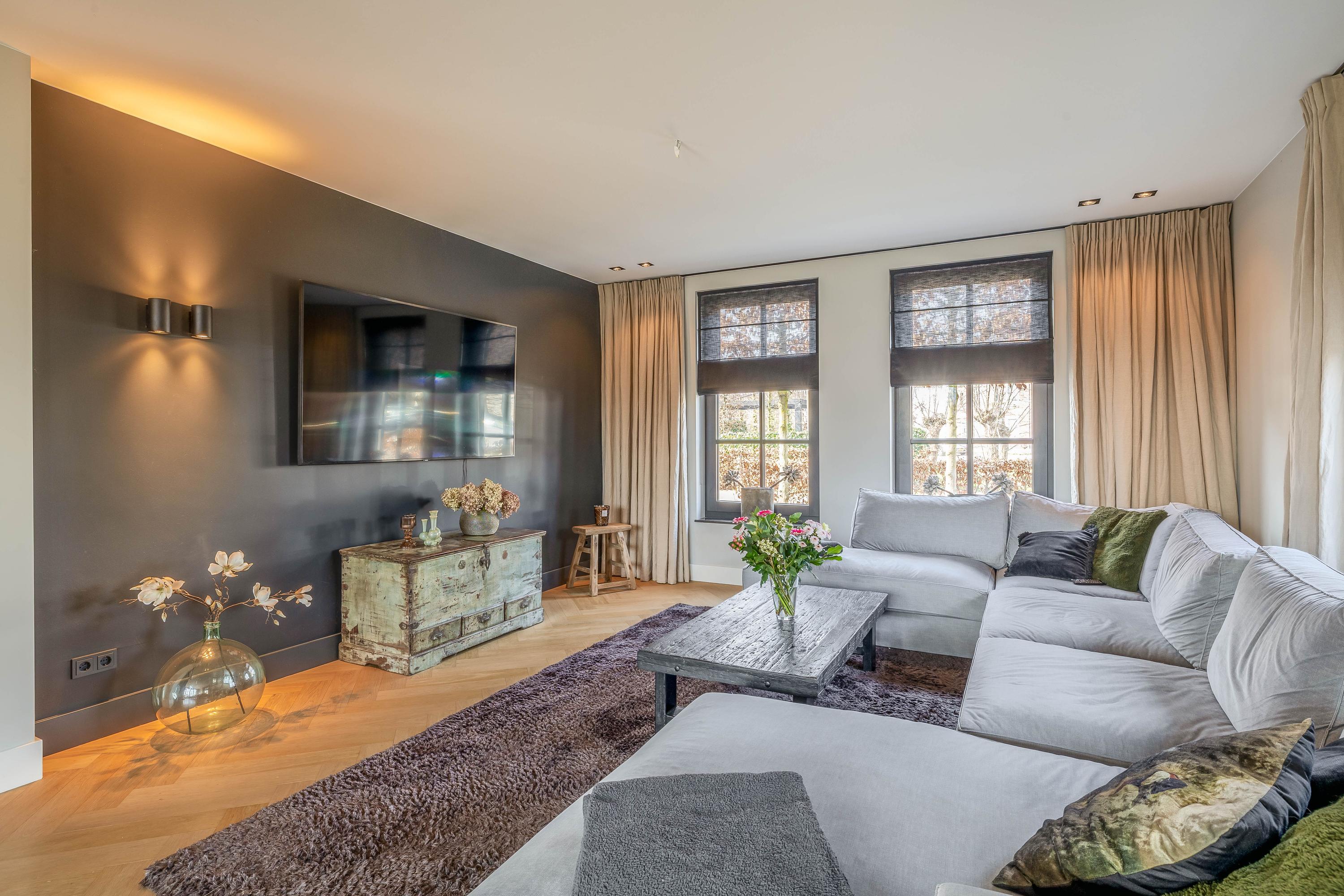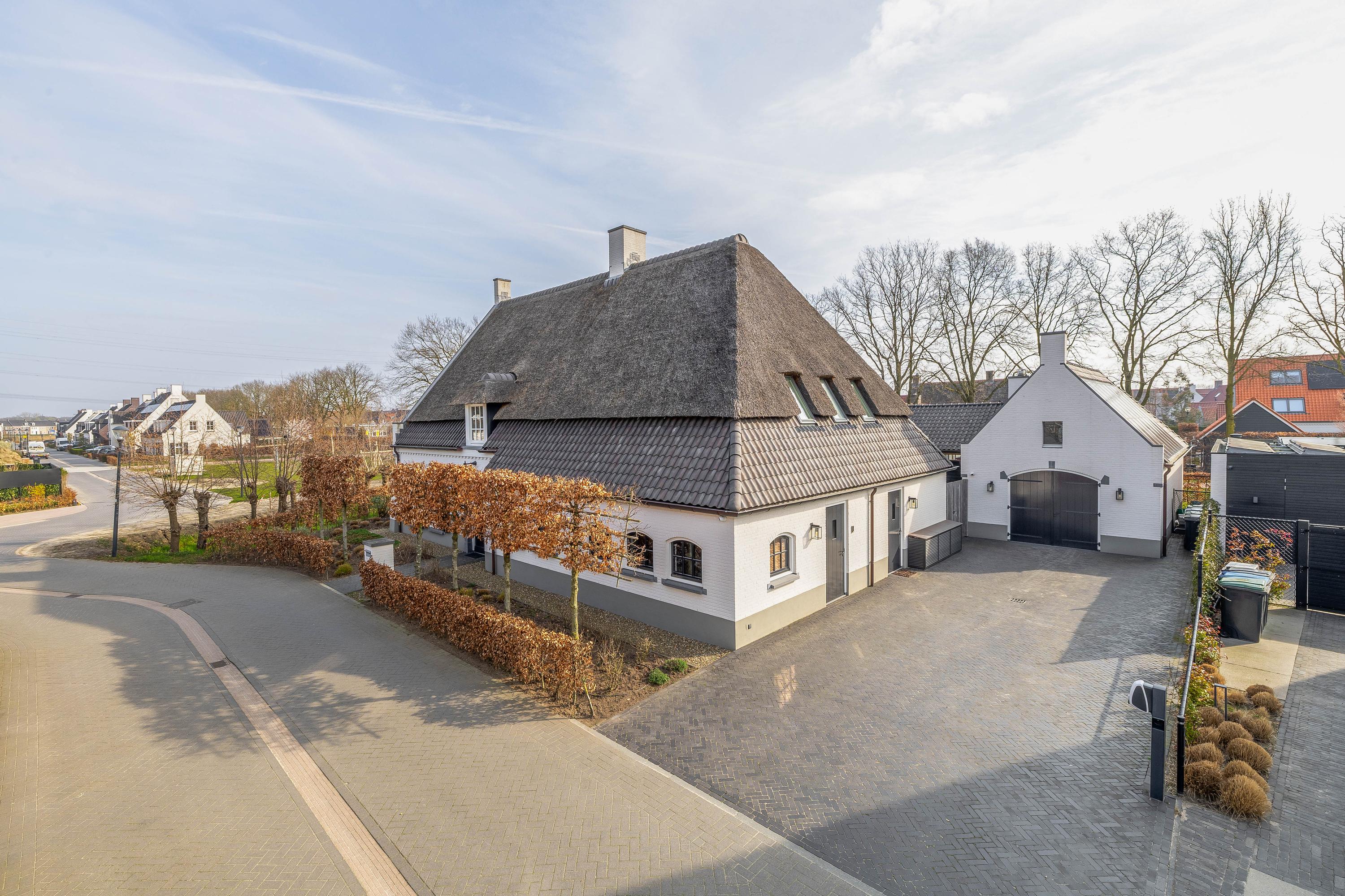 This farmhouse offers you a rare opportunity to live in an oasis of luxury, comfort, and privacy. With attention to detail, high-quality materials, and a thoughtful layout, every floor showcases a cohesive design where ceramic tiles, an oak herringbone floor, and meticulously applied stucco unite to form a warm and elegant whole. The seamlessly coordinated materials and finishes give every space a refined, consistent look.