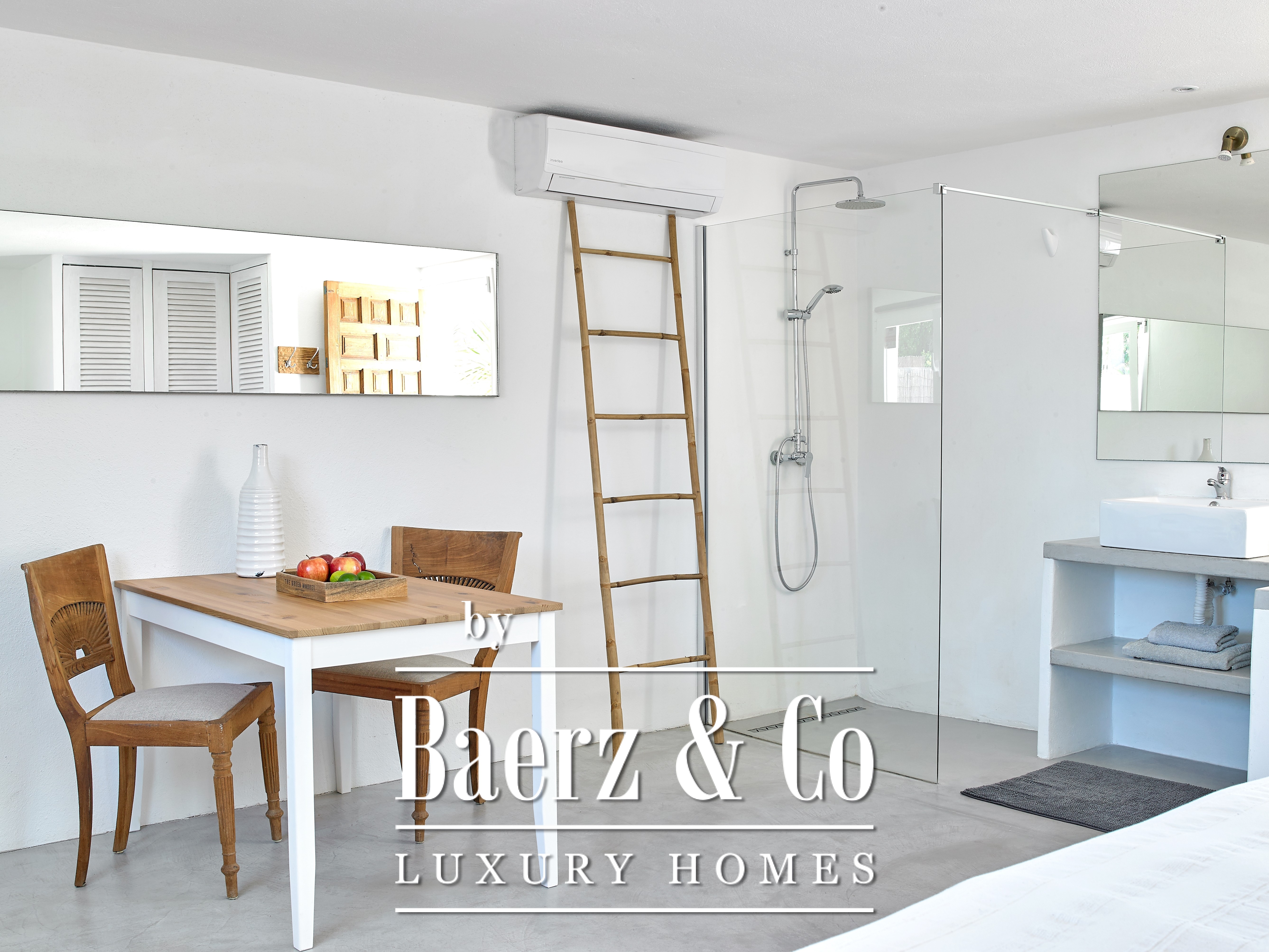 Flexible in use, the villa can function as one interconnected residence or remain as separate apartments. Outdoor spaces are designed for al fresco dining, relaxation, and the enjoyment of the Ibizan light. With nine bedrooms and seven bathrooms in total, two pools, roof terraces, and modern amenities such as an alarm system, this is a rare opportunity to own a versatile property in a setting of enduring appeal.