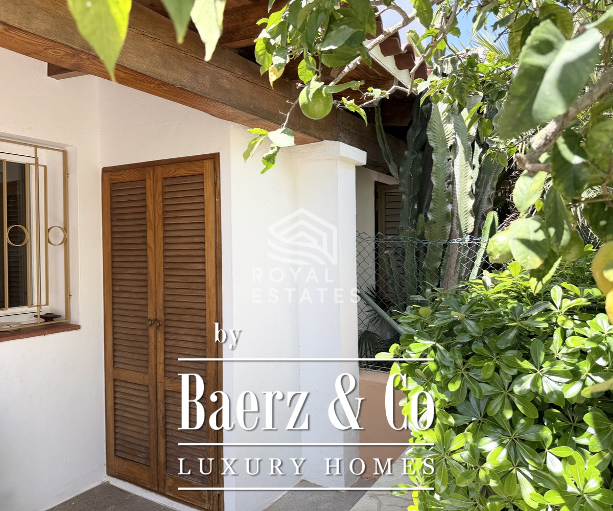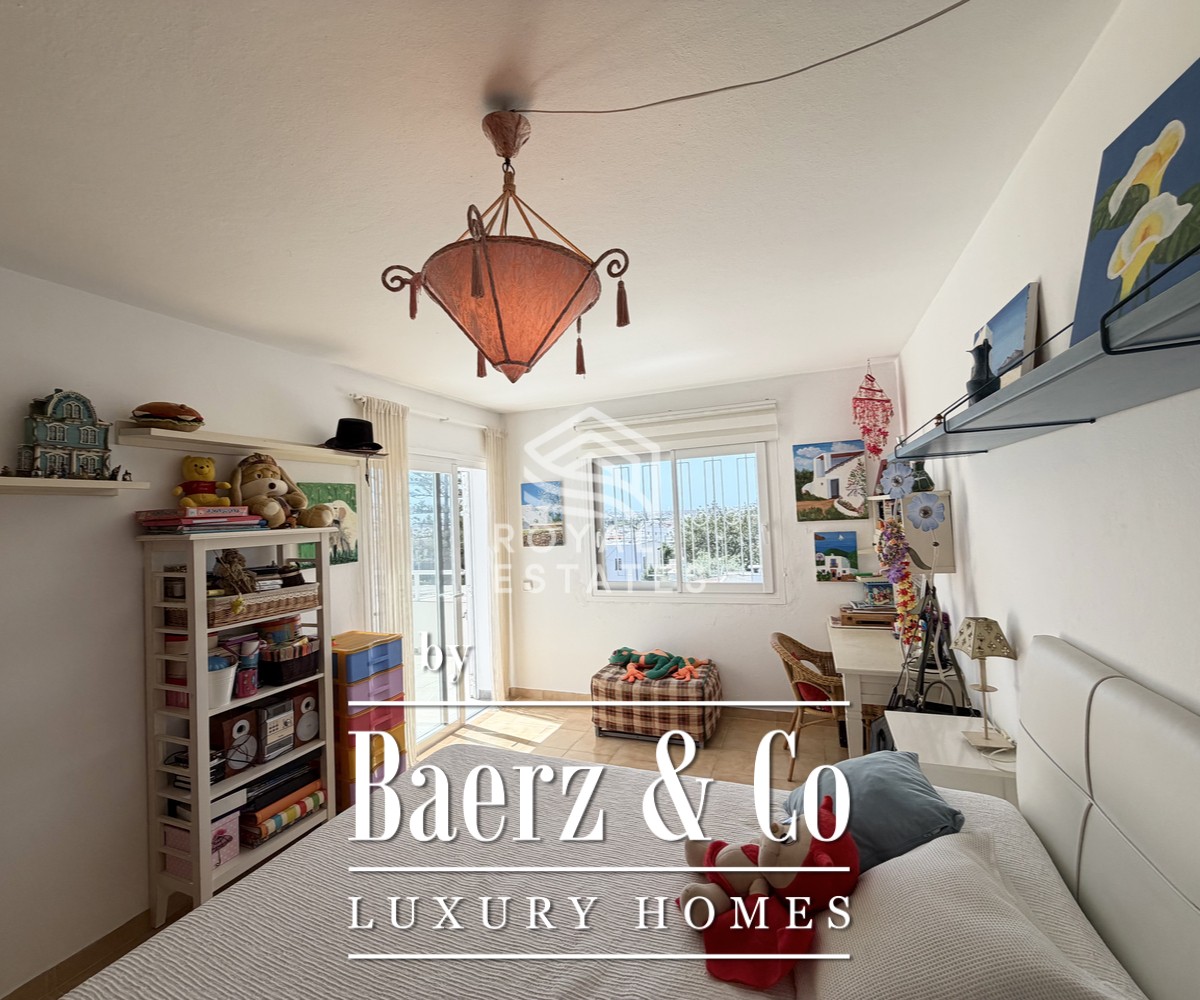 On the first floor, three double bedrooms enjoy ample proportions and natural light, with two offering direct access to a private terrace. The master bedroom, secluded on the top level, includes a hydromassage bathtub and views towards Dalt Vila, alongside a laundry area and additional flexible room. Outdoor areas, adorned with greenery, flowers and a lemon tree, invite year round enjoyment. With its combination of comfort, functionality and premiere location, this home offers an authentic approach to Ibiza island living.