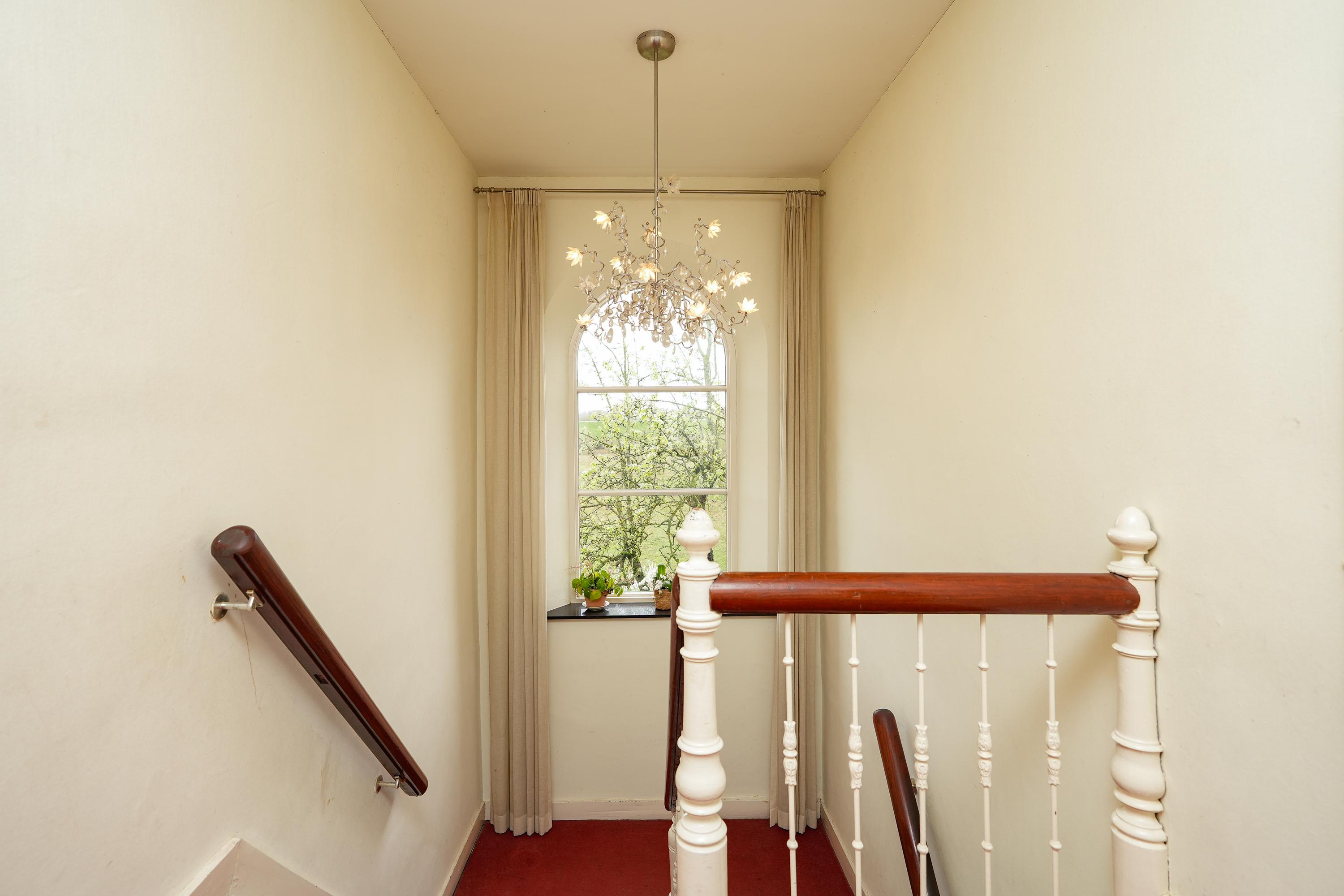 On the ground floor, two refined living rooms open to light and garden through original sliding doors, accentuated by natural stone flooring and underfloor heating. The kitchen, fitted with a classic AGA, integrates seamlessly with outdoor terraces, while the adjacent utility spaces and bedroom suite add versatility—ideal for guests or home office needs. Upstairs, five generous bedrooms provide ample room for living or working, supported by a renovated bathroom suite with underfloor heating. Additional spaces include a cellar, outbuildings such as a former stable, and a separate barn in the orchard. The original composition is complemented by technical updates: monument glass, ecohome-controlled floor heating, and updated heating systems, delivering discreet comfort for modern living.