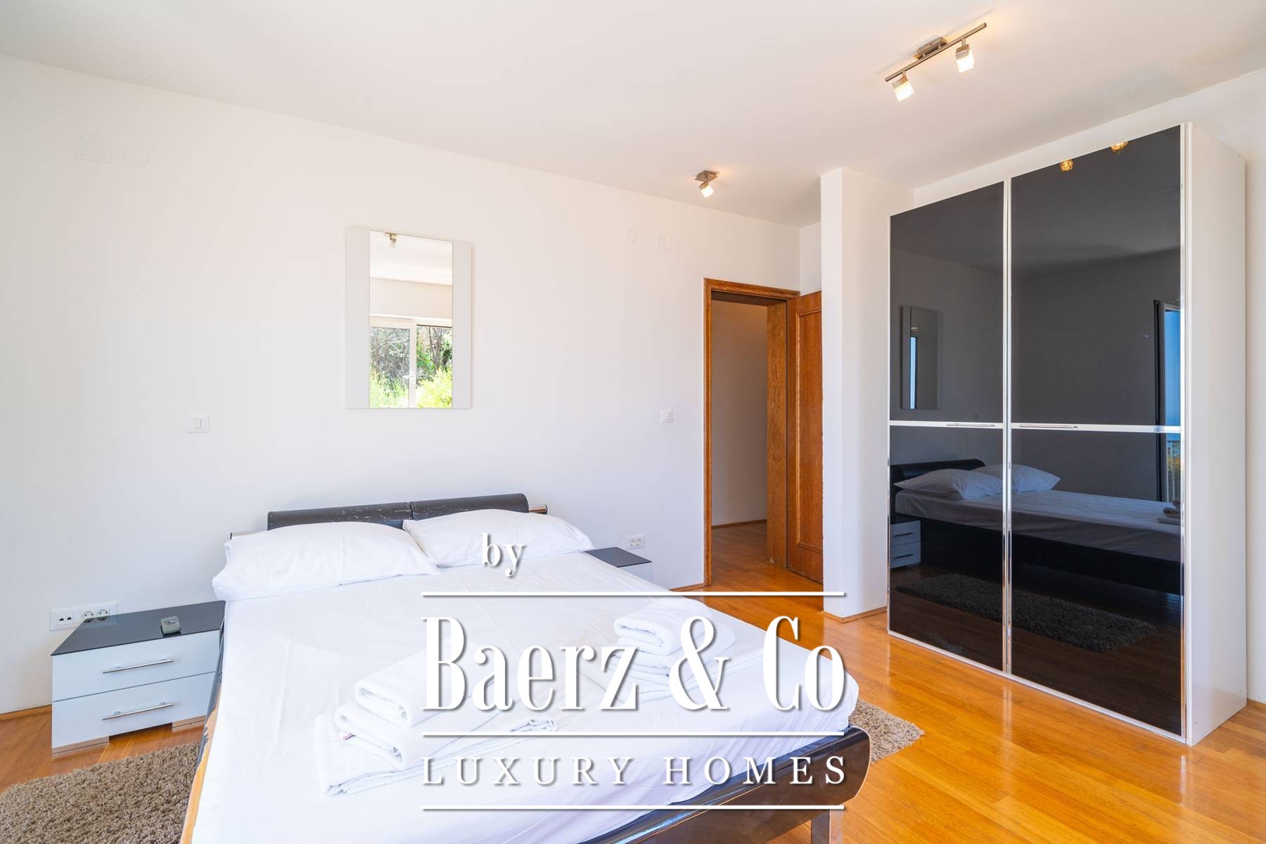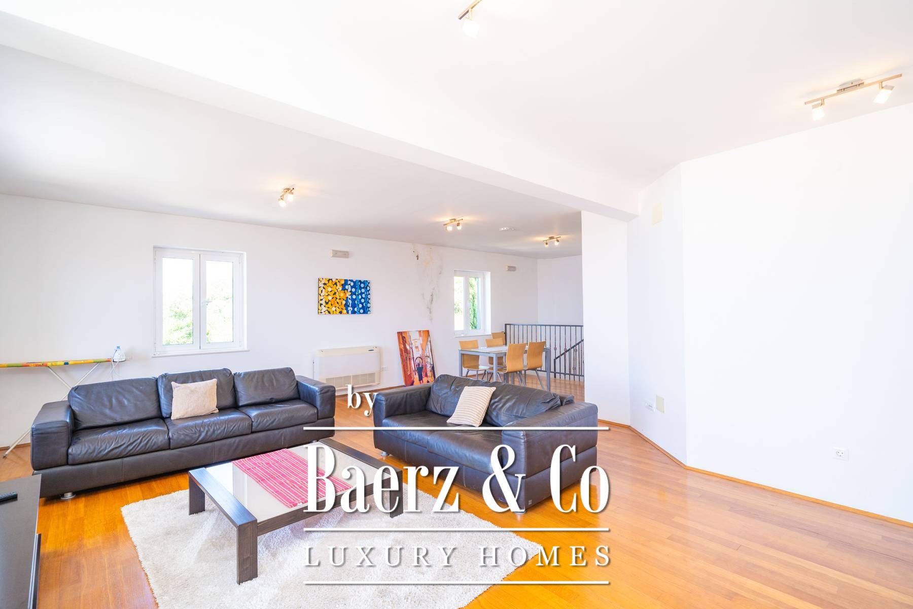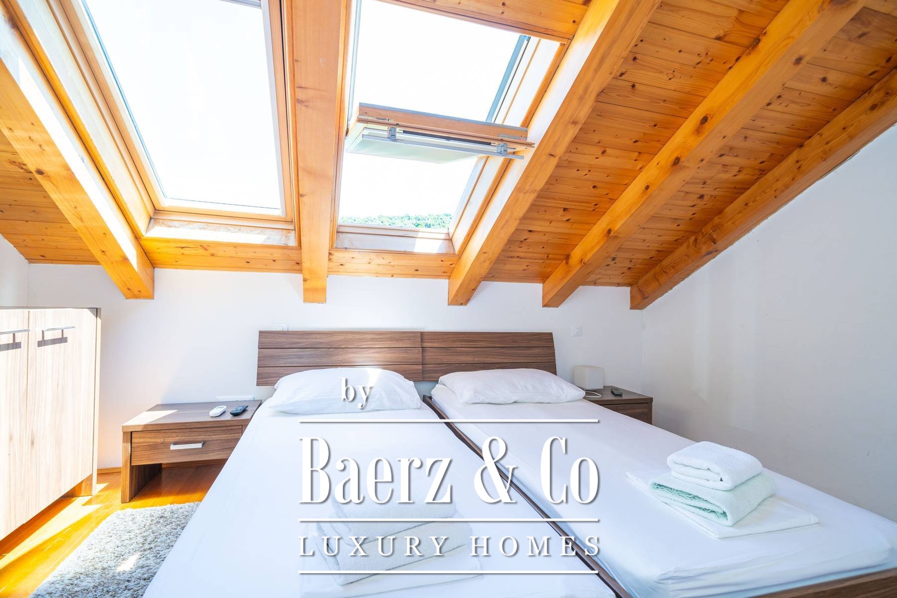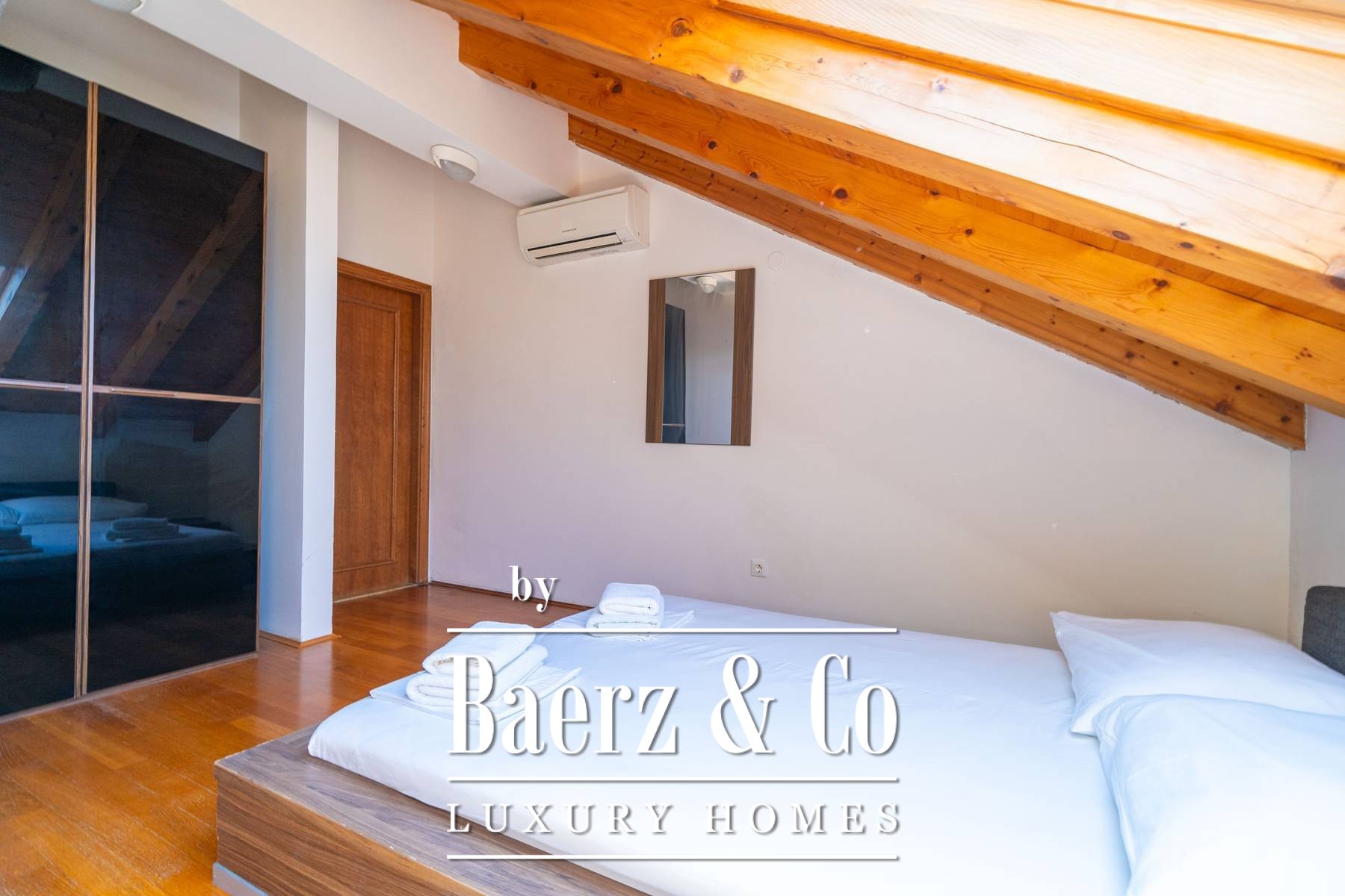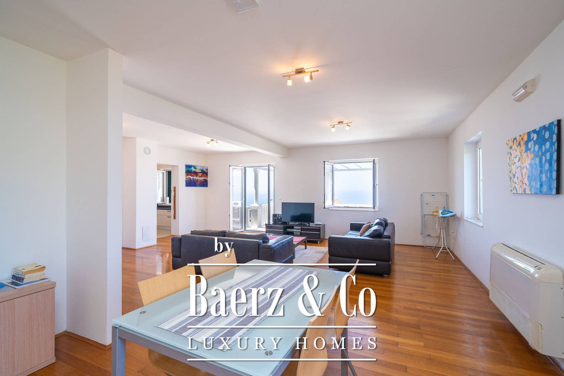 Materials throughout the townhouse evoke a sense of permanence: oak parquet in bedrooms and living rooms, polished stone underfoot in shared spaces, and elegant ceramic in kitchens and bathrooms. Every room is climate-controlled, with underfloor heating in the kitchens and baths. Outdoors, a heated swimming pool is set beside a sunbathing terrace and multiple parking spaces, further affirming the home’s thoughtful design. The proximity to Cavtat’s center allows for both privacy and connection to local culture, suited for those who value timeless architecture and discretion. This luxury townhouse for sale in Cavtat invites a considered approach to coastal living.