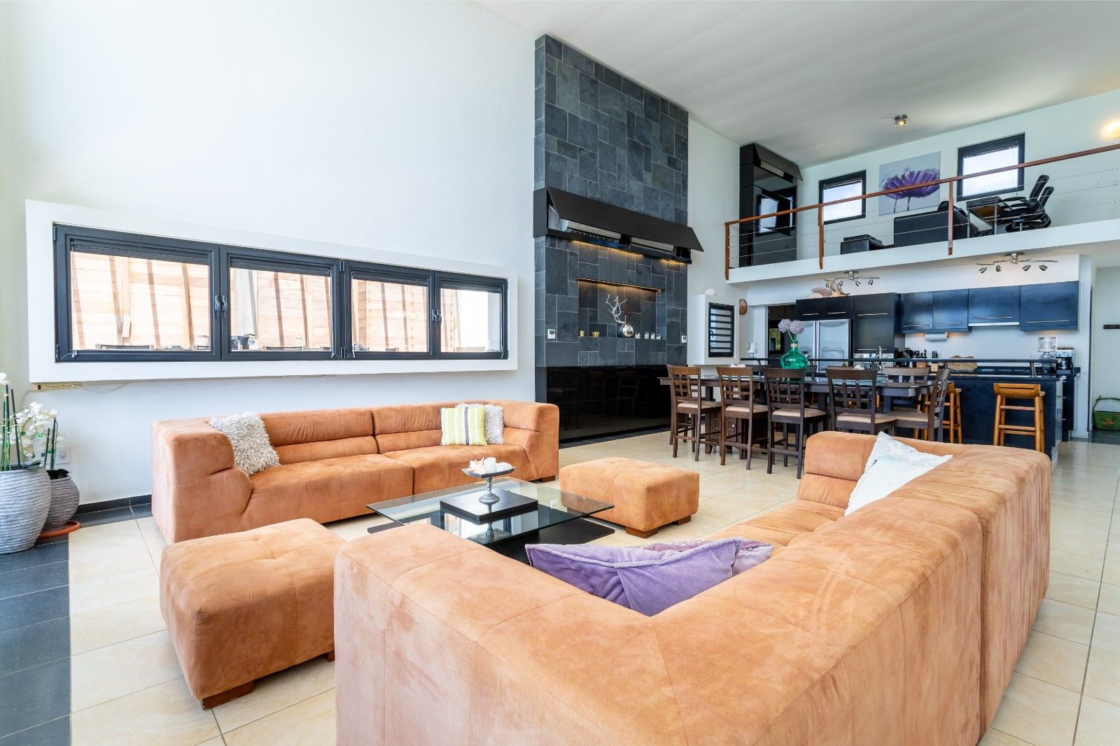 Large sliding doors open directly onto the terrace with a private swimming pool and jacuzzi, where you can enjoy panoramic views of the Caribbean Sea. The outdoor area offers multiple seating and lounge areas, making it perfect for entertaining or simply relaxing while enjoying unforgettable sunsets. Stairs lead directly from the terrace down to the beach and ocean, where you can experience the crystal-clear waters right at your doorstep.