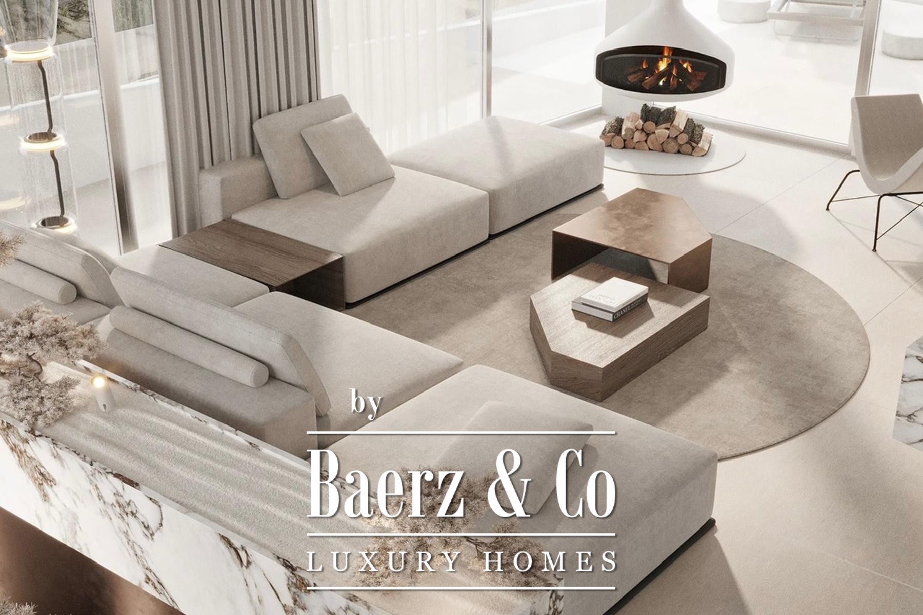 The home offers four bedrooms and four bathrooms, each finished with designer sanitary ware in brushed bronze and satin, ensuring a blend of comfort and composed elegance. The interior is designed for fluid living, while terraces of 197 m² and a 34 m² rooftop pool invite seamless connection between in and outdoor spaces. Features such as a sculptural Ergofocus fireplace, Schüco systems, and top-quality ceramics emphasize refined detail, with a 32 m² garage complementing the layout.