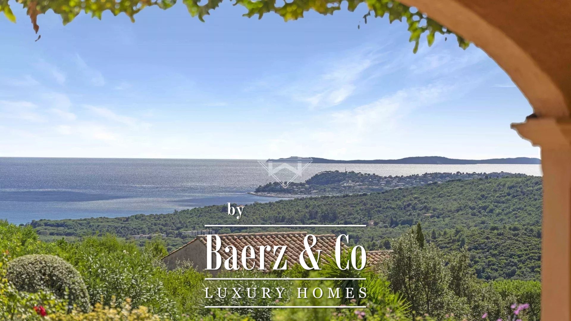 On the garden level, three bedrooms and two shower rooms open onto a spacious, private terrace. An independent apartment includes a kitchen and living room, both opening onto the large terrace and the garden, which features tastefully landscaped terraced grounds.