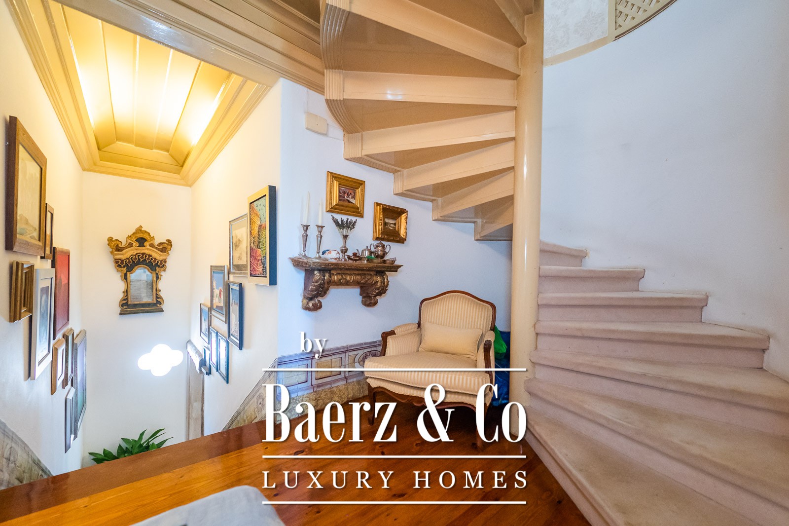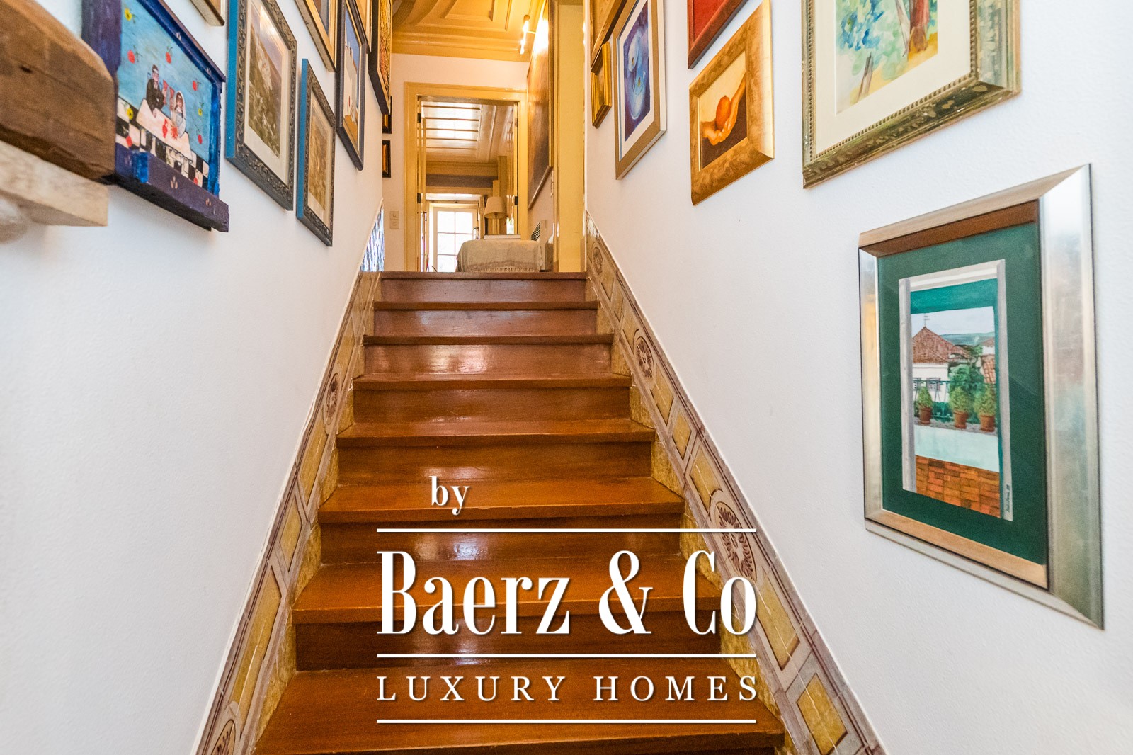 Discretion shapes each corner of this property. Six bedrooms and multiple living rooms form an adaptable spatial rhythm, while the Tudor-style kitchen, service lift, and hardwood floors reflect a thoughtful attention to quality. Details such as frescoes from the Ricardo Espírito Santo Foundation and antique tiling connect each room to the district's distinctive history.