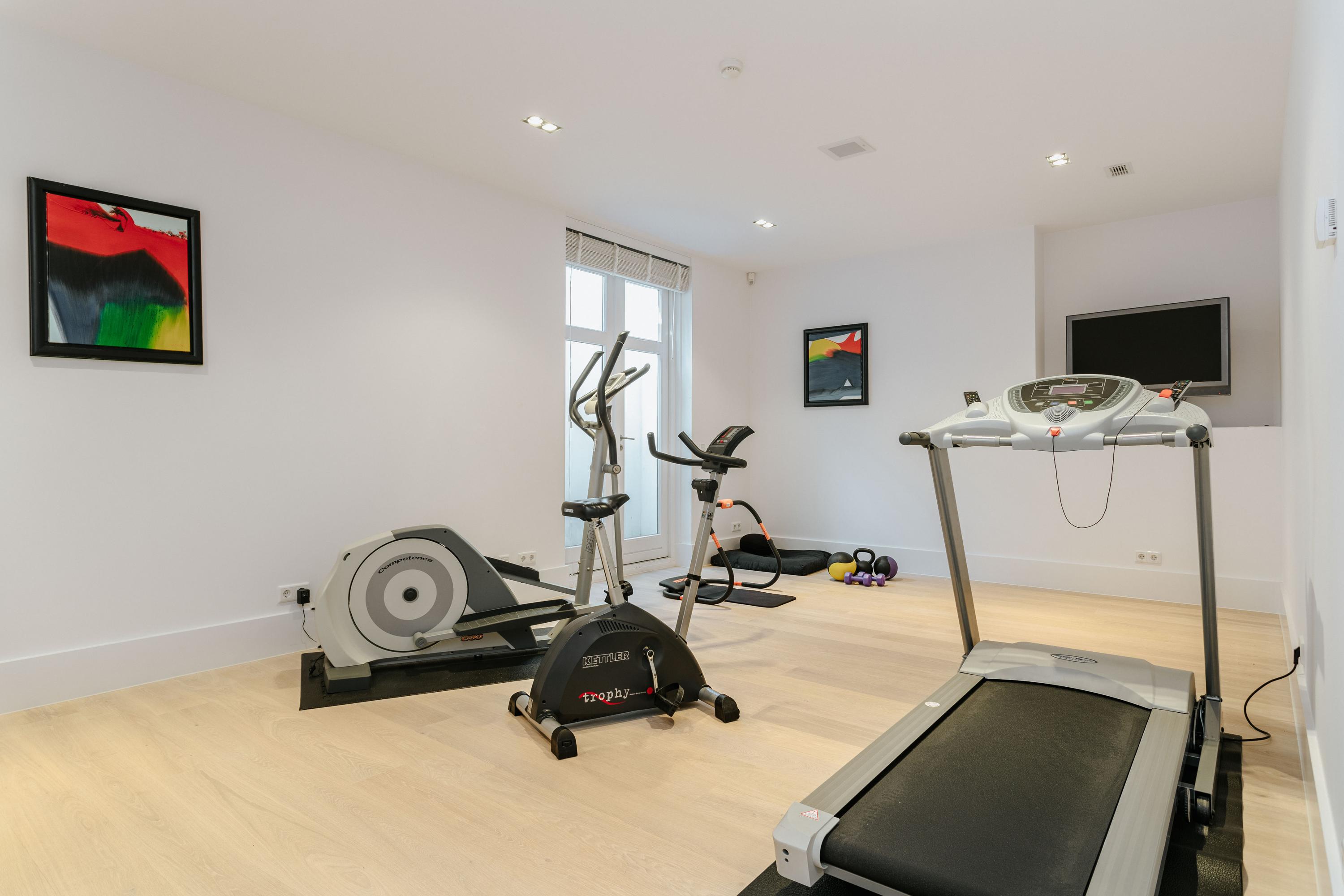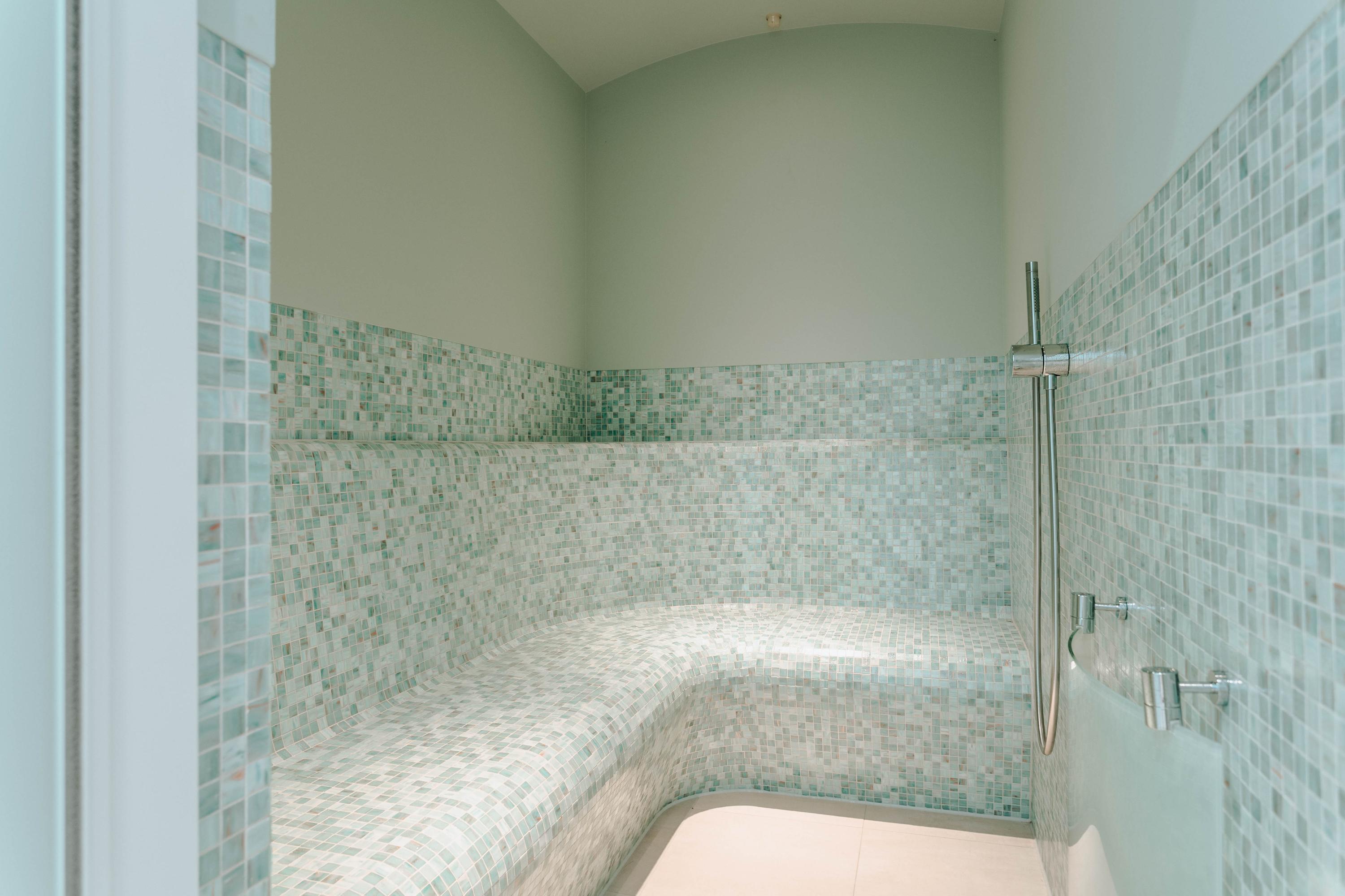 We don't even have to leave the house for wellness; in the basement, which includes a Finnish sauna, a Turkish steam bath, and a relaxation room, you can relax and unwind. There is also a fitness room, a chill room with a bar, and French doors opening onto the outdoor patio. This space can also be used for an au pair or for double occupancy.