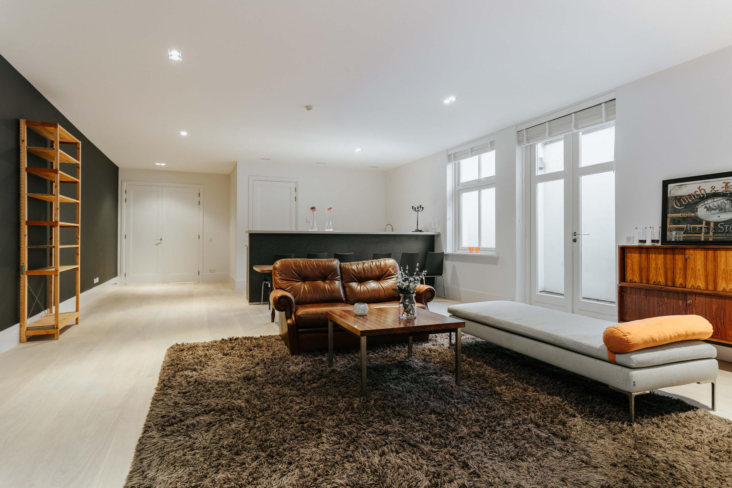 At the front of the house is the large luxury kitchen, equipped with a sink island and luxury built-in appliances, a gas fireplace, and French doors to the terrace. The large, cozy living room also has a gas fireplace, French doors to the terrace, and access to the kitchen and the spacious, cozy dining room through steel revolving doors. Hidden behind a door in the hall is the luxurious trio of bedroom, dressing room, and bathroom. This spacious master bedroom with gas fireplace overlooks and has access to the garden. There is also a separate toilet.