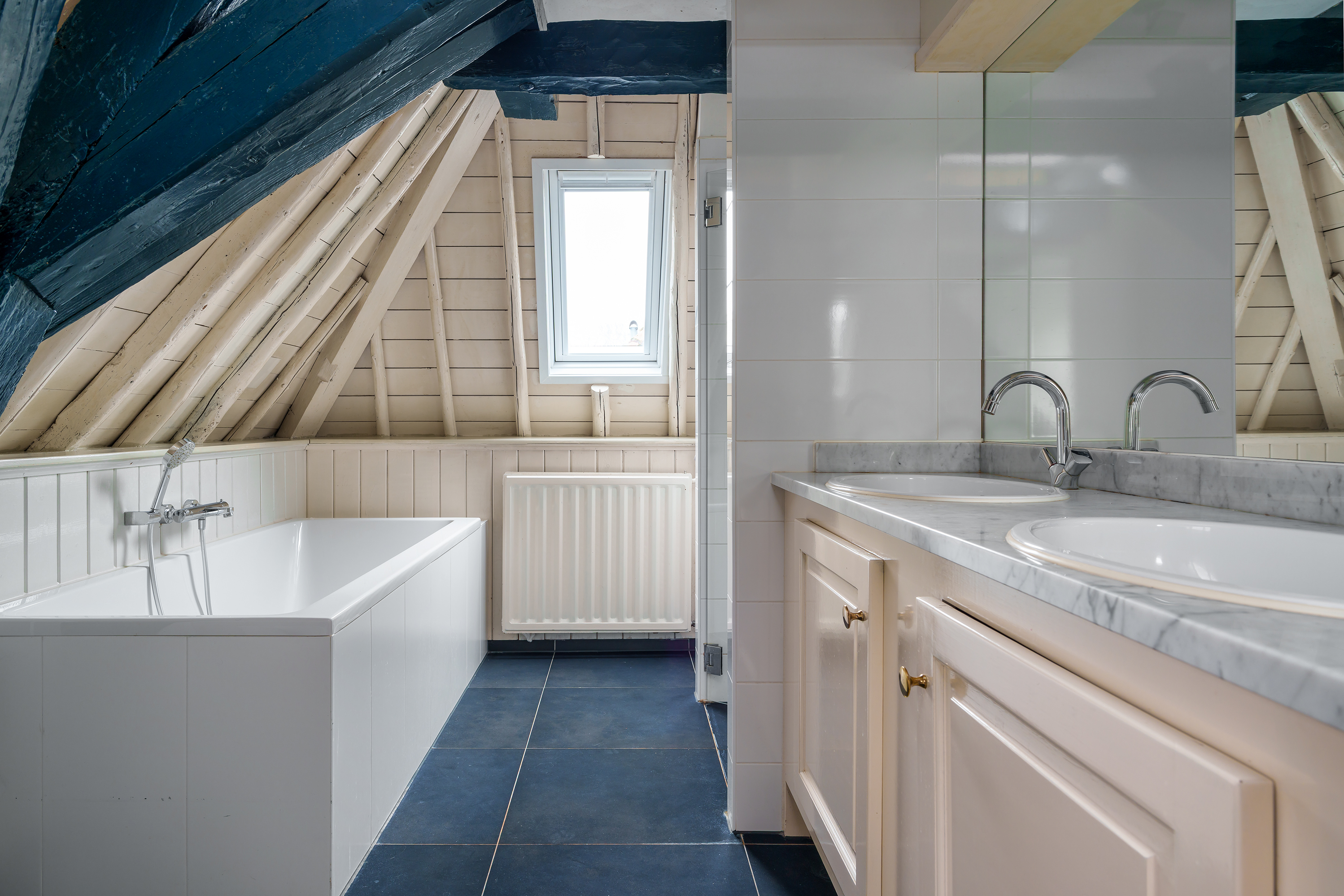 The characteristic beam construction is also clearly visible on this floor and underlines the historic character of the house. At the front of the house are two comfortable bedrooms, both with a view of the characteristic Dorpsstraat. Both have large windows and a skylight, allowing plenty of pleasant daylight to enter.