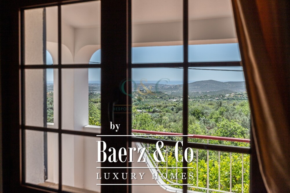 Villa Loulé welcomes with 286m2 of interior space, set on a generous 6960m2 plot with uninterrupted 180-degree views of the Algarve coastline and distant mountains. This villa Loulé, south facing, channels the spirit of traditional Portuguese design with clean architectural lines, natural light filtering through every room, and a template for contemporary living. Four bedrooms and two bathrooms create a foundation for refined daily life, complemented by a large living and dining area that transitions to a well-appointed kitchen. Direct access connects the kitchen to an outdoor terrace, where a BBQ zone frames gatherings against the backdrop of rolling hills and blue sea.
