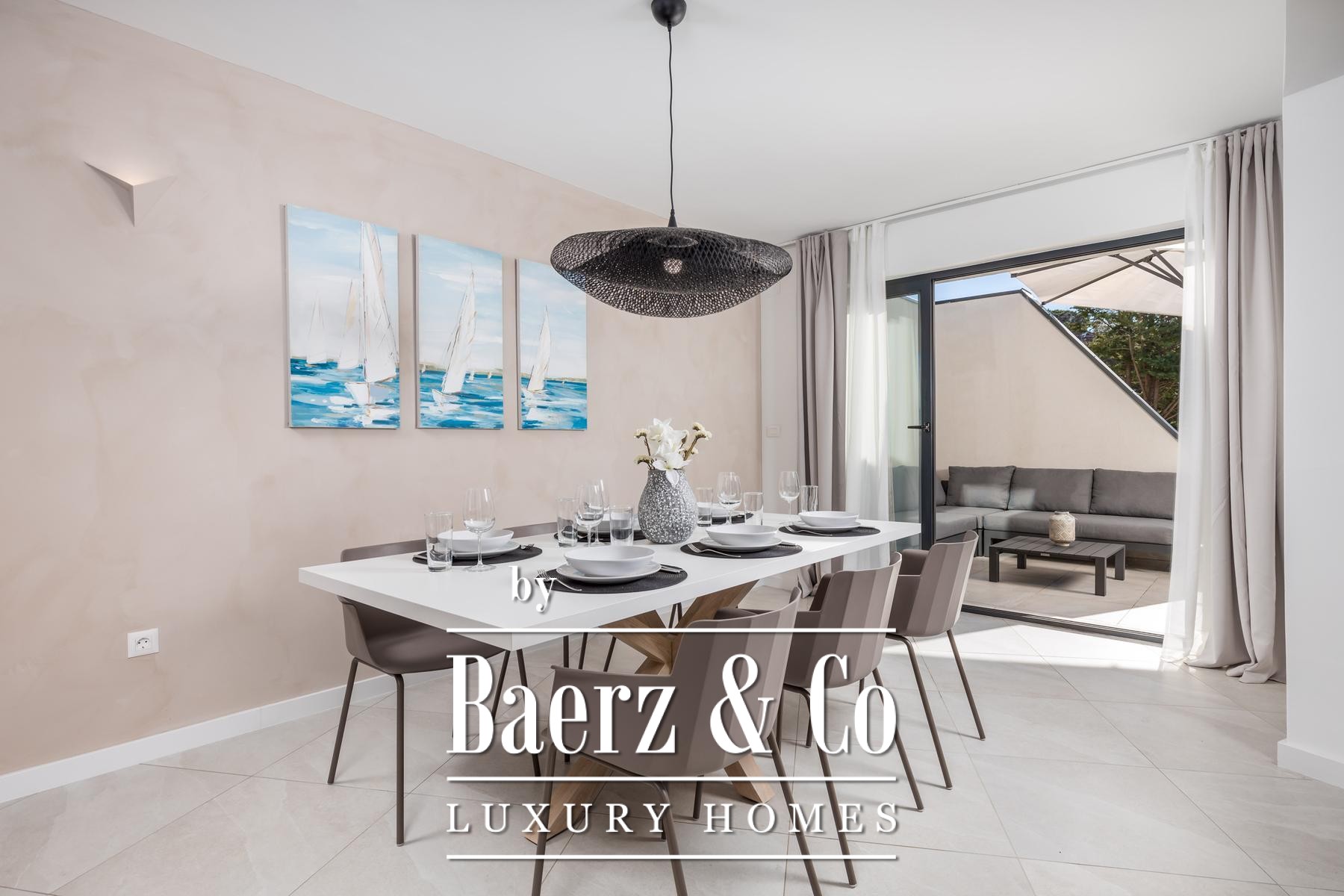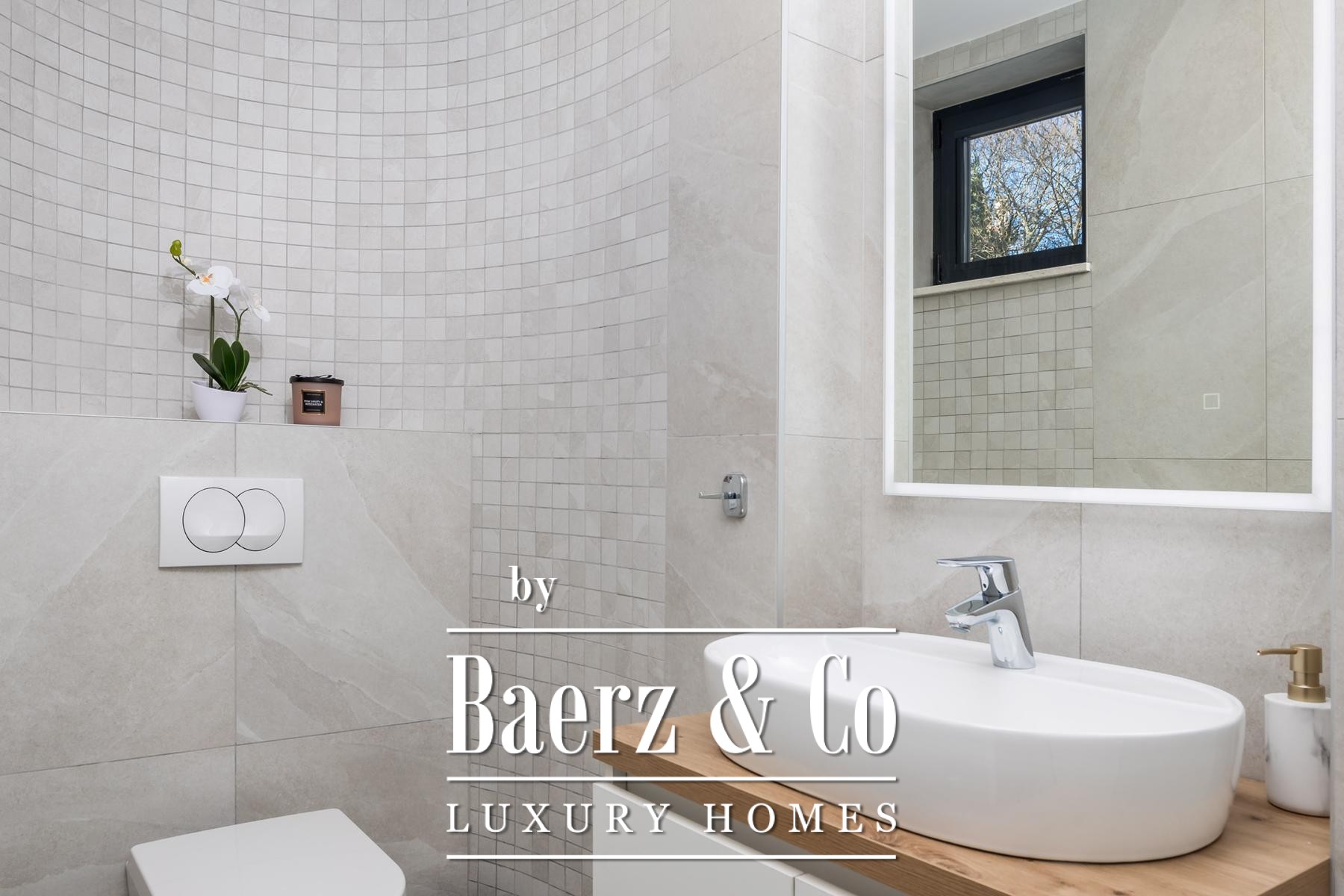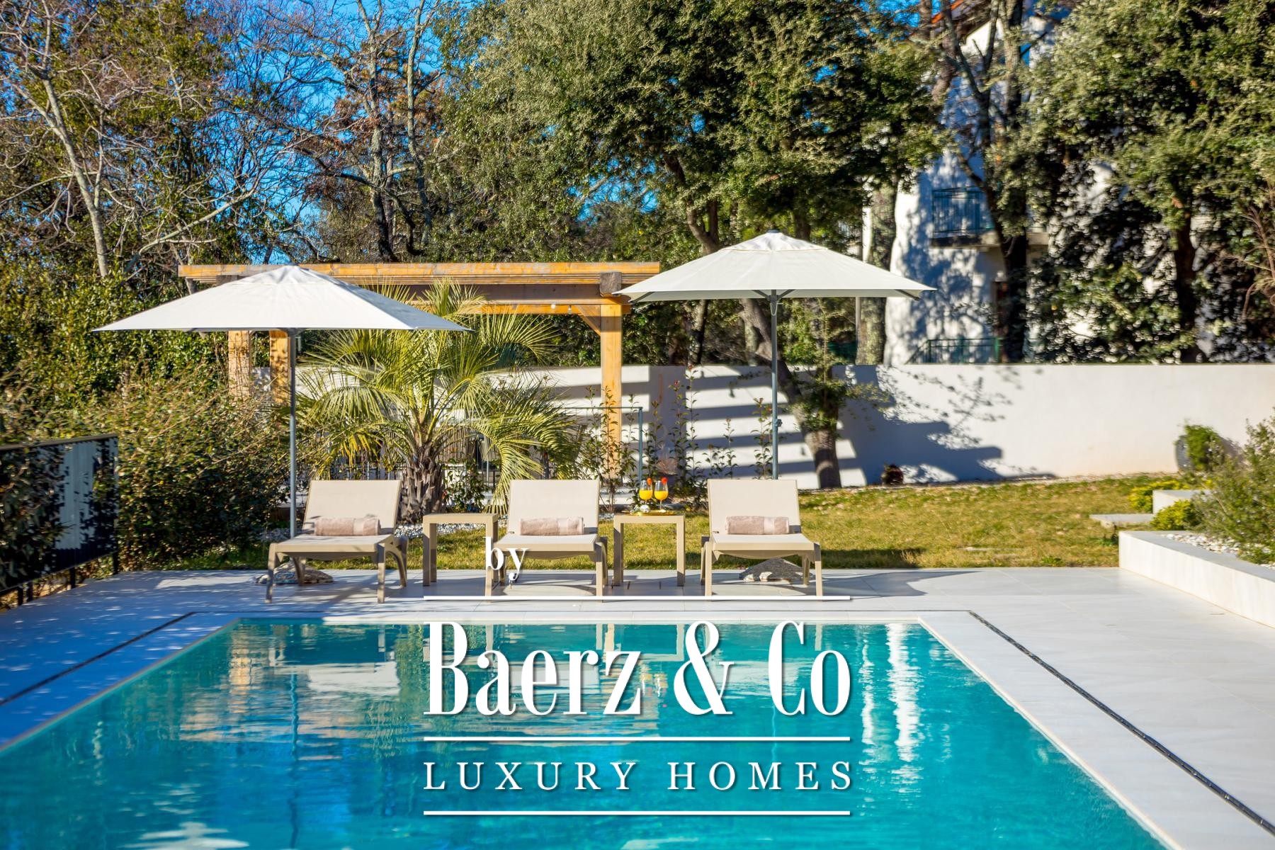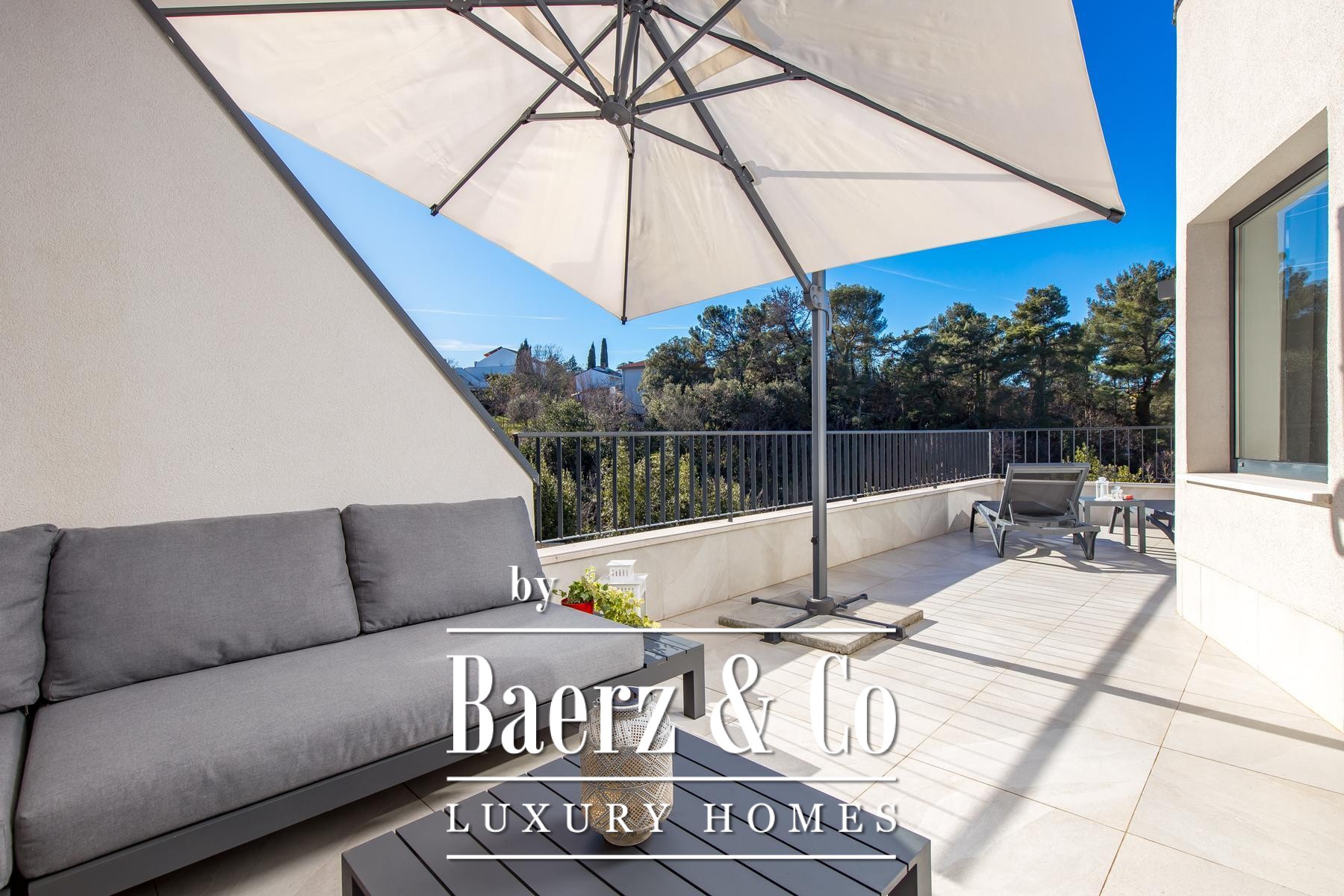 The island of Krk, Malinska imposing villa in an exclusive location in the first row to the sea, a perfect harmony between luxury and comfort. It is located in an exclusive location, only 50 meters from the seashore and 500 meters from the center of Malinska, and offers an ideal balance between privacy and proximity to all necessary amenities. This luxurious villa, with a total area of 320 m2, enchants with its refined design and impeccable quality. With a heated swimming pool and a beautifully landscaped garden of 1,920 m2, here is a real haven for a peaceful life or vacation. The spacious interiors of the villa are divided into the ground floor and the first floor, with two separate apartments that provide privacy and comfort. Each apartment consists of an elegant living room, fully equipped kitchen and dining