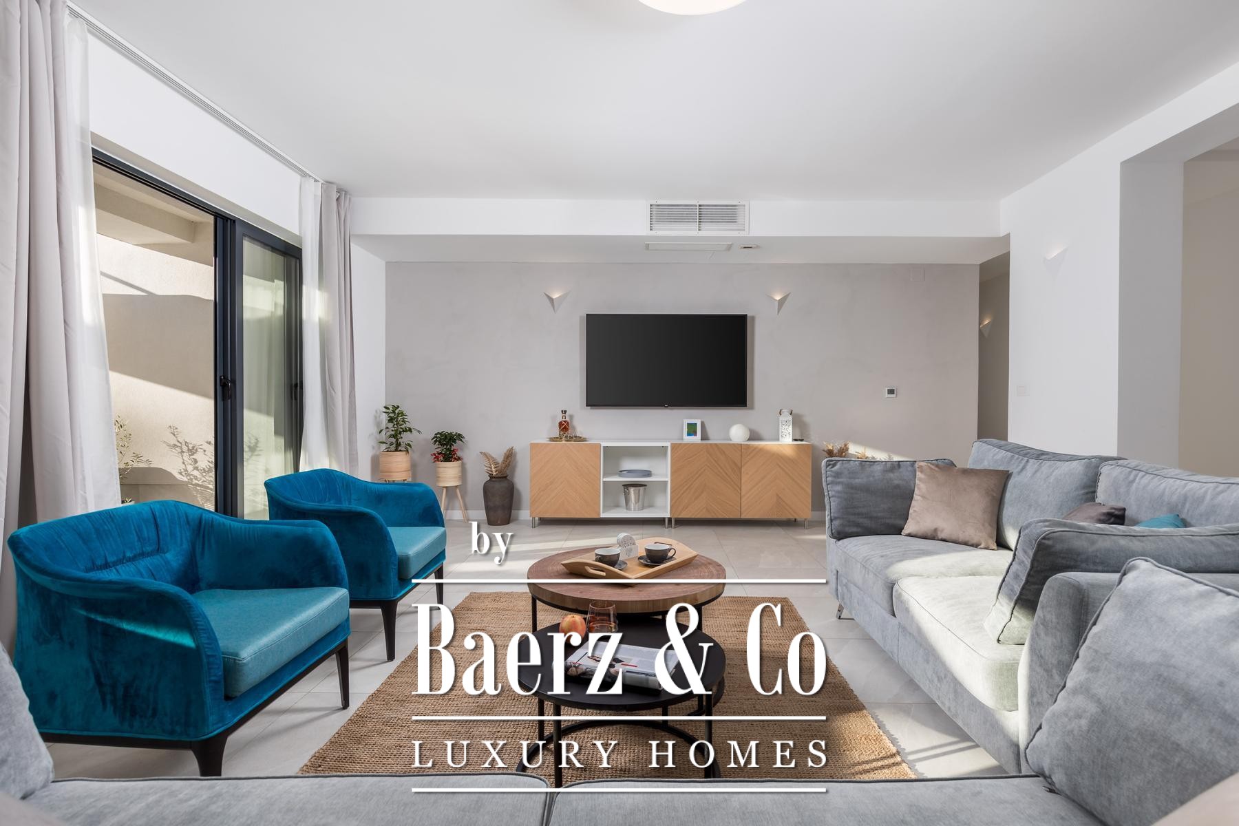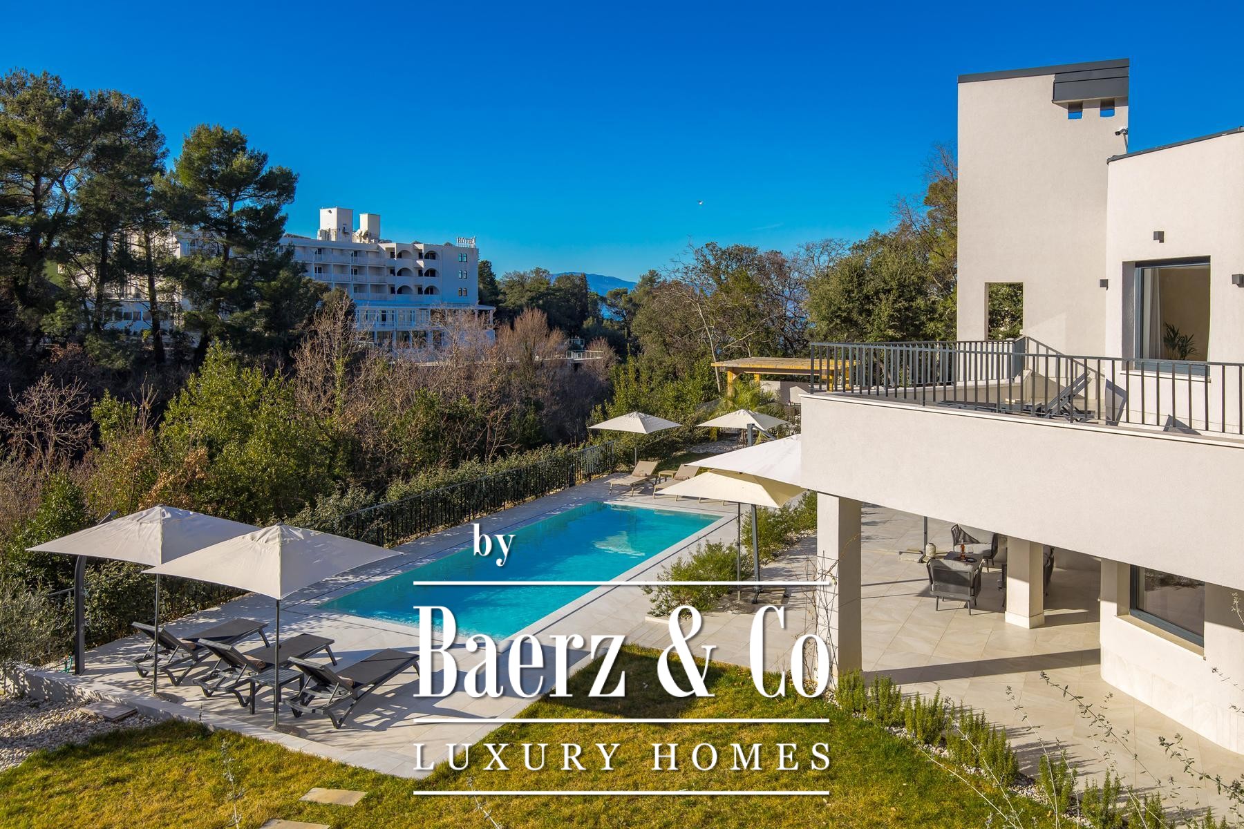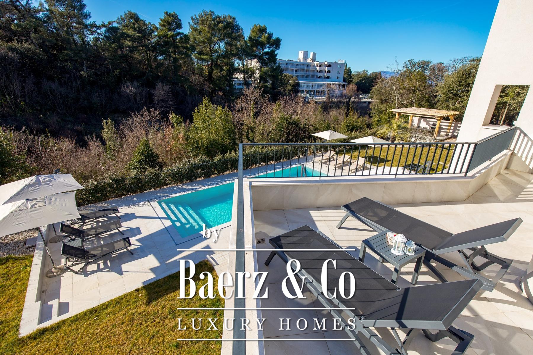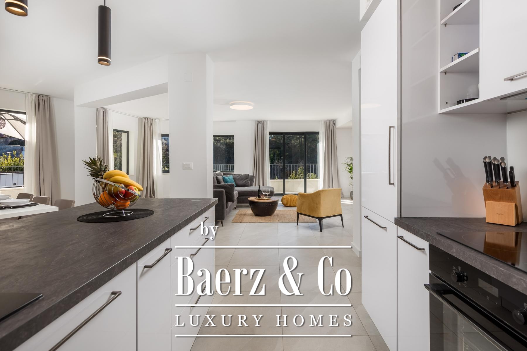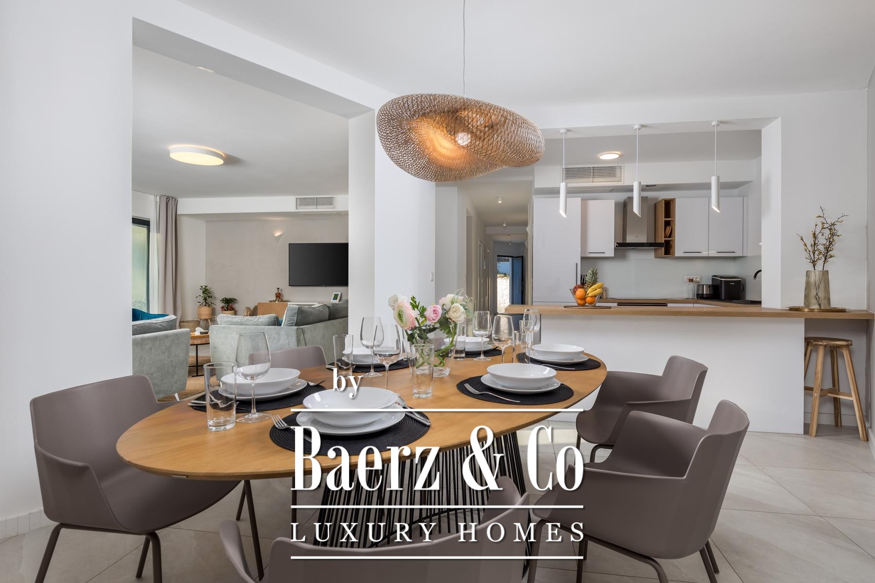 room, and three luxurious bedrooms, each with its own bathroom. In addition, there is a toilet, a corridor and spacious terraces that offer spectacular views of the surrounding landscape. The villa has a common wellness area of 50 m2, equipped with a sauna, mini gym and jacuzzi, ideal for relaxation and revitalization of body and spirit. In the courtyard of the villa there is a separate building of 20m2 for servants with a kitchen and a bathroom. The overall quality of construction and equipment of this home guarantees a top standard of living. Underfloor heating ensures a pleasant atmosphere during the colder months, while air conditioning adjusts the temperature according to your preferences. For convenience and safety, parking spaces are also provided. We are at your disposal for any additional information.