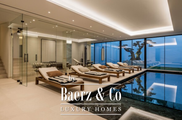 The lower level is dedicated to well-being and leisure, including a spa with heated indoor and cold pools, sauna, hammam, massage room, and gym. Wine collectors and film enthusiasts will appreciate the wine cellar and cinema, while a games room and three-car garage reflect a dedication to both relaxation and automotive passion.