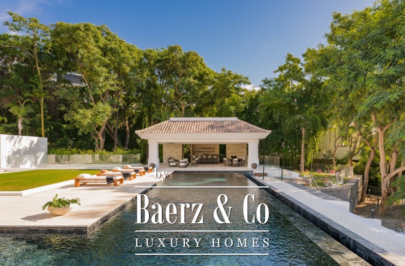 Outside, a flat landscaped garden encircles the 20 metre infinity pool, offering a tranquil setting for open-air dining and gatherings under the gazebo. Amenities such as advanced HVAC, fireplaces, underfloor heating, and lift ensure comfort throughout. This villa exemplifies the measured pace of Mediterranean living, balanced by easy access to Marbella’s coast and amenities. It answers the call for privacy, artistry, and an elevated Marbella lifestyle.