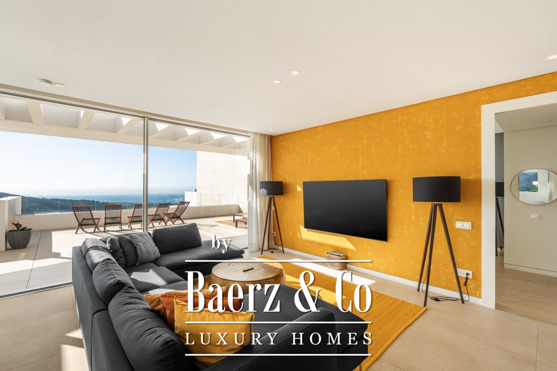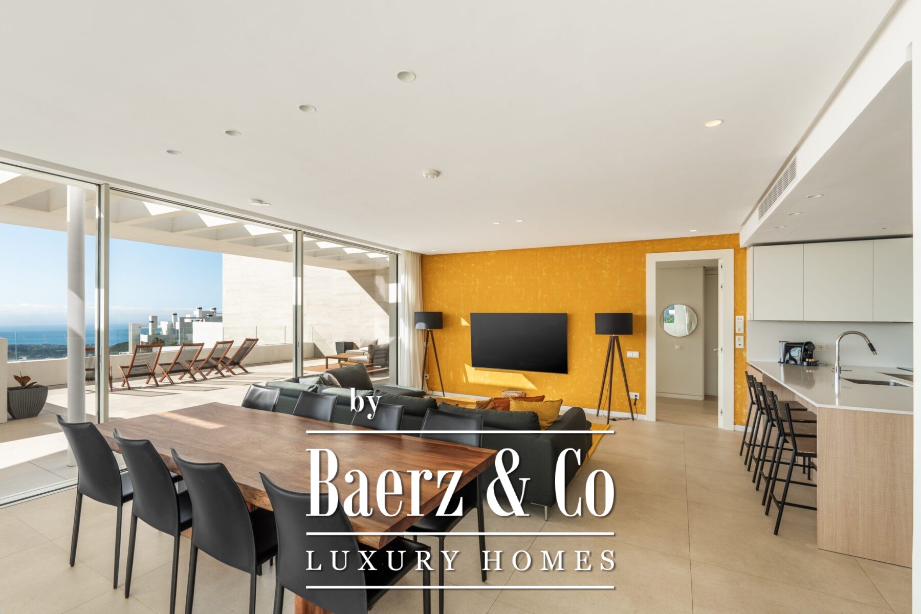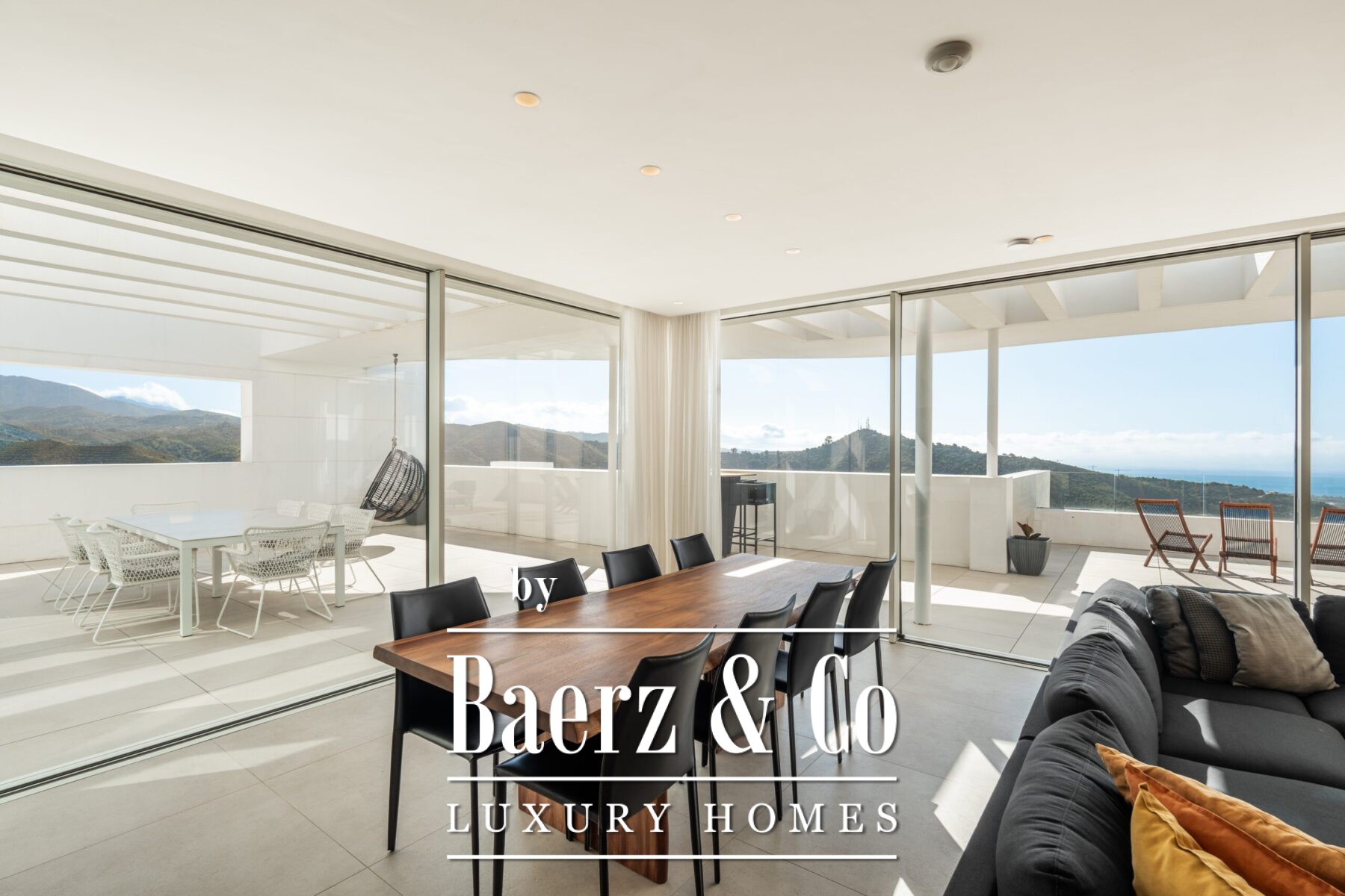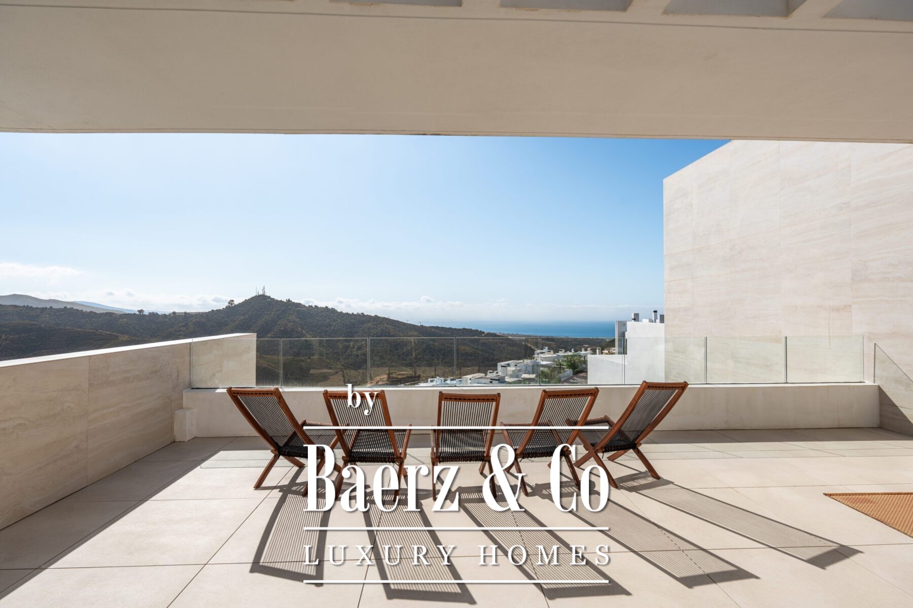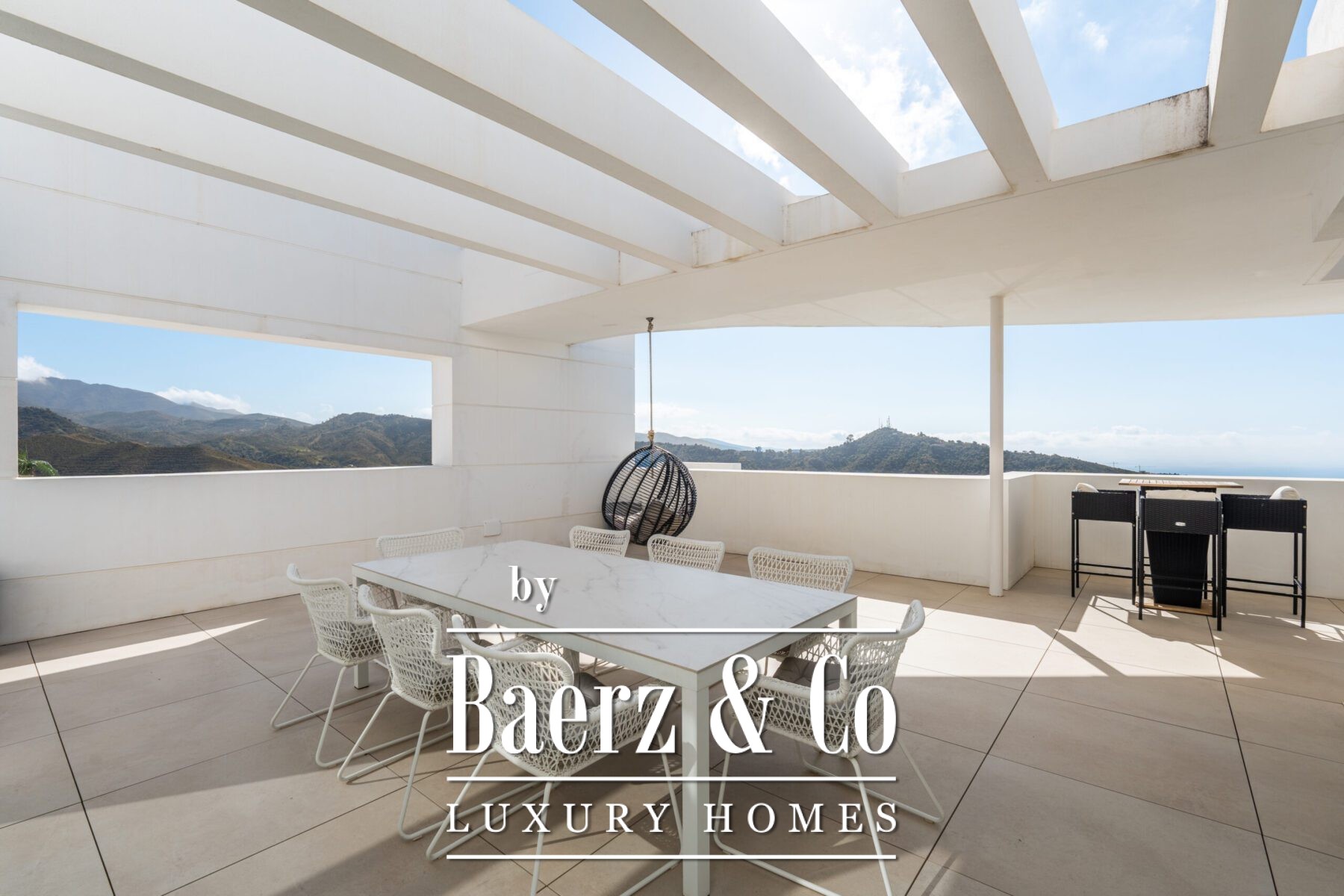 Penthouse Marbella invites a rare confluence of privacy and panorama, poised above the city within a secure gated enclave. This penthouse in Marbella, southeast-facing for optimal light, commands sweeping views of the sea and mountains from a private position. Spanning 157 m² of refined indoor space and 276 m² of surrounding terraces, every aspect is calibrated for sophisticated indoor-outdoor living.