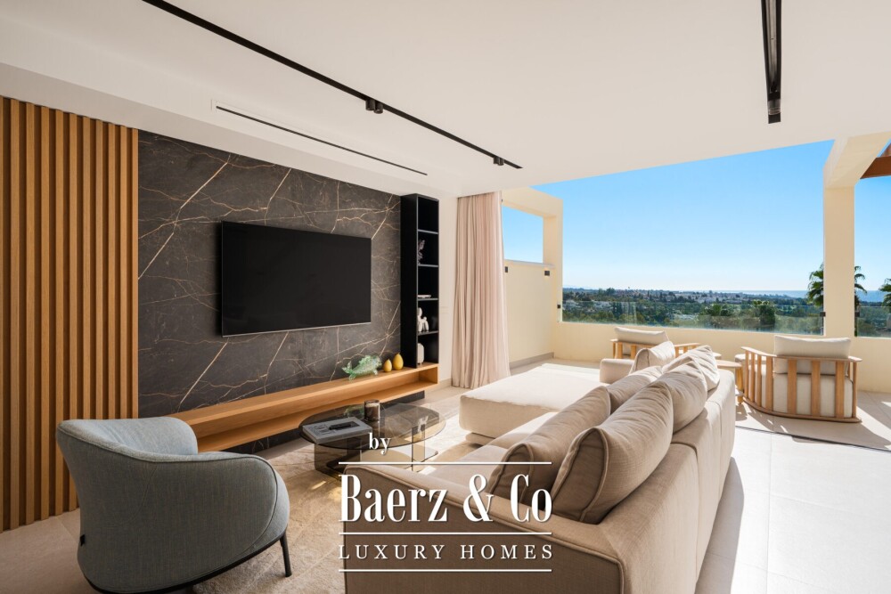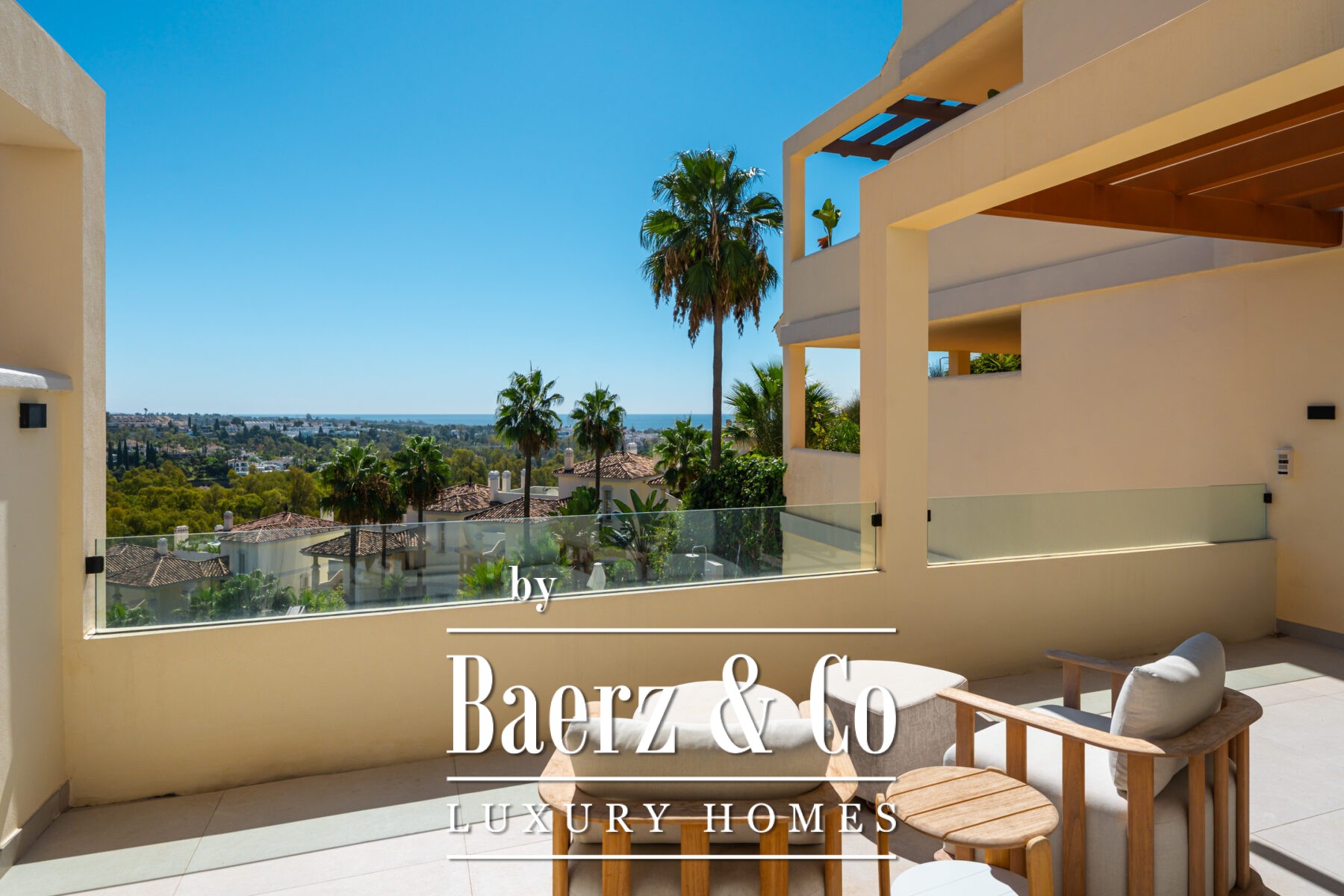 Apartment Nueva Andalucía forms the focus keyword for this modern residence, fully renovated in 2024 to offer 170 m² of calm and refined living space within an exclusive gated community. This three-bedroom apartment presents a light-filled sanctuary with 146 m² of elegant interiors and a 24 m² private terrace commanding panoramic views over La Concha mountain, the Mediterranean Sea, and a tranquil lake, making each moment at home visually compelling.
