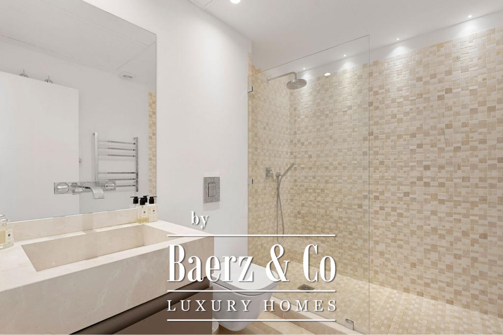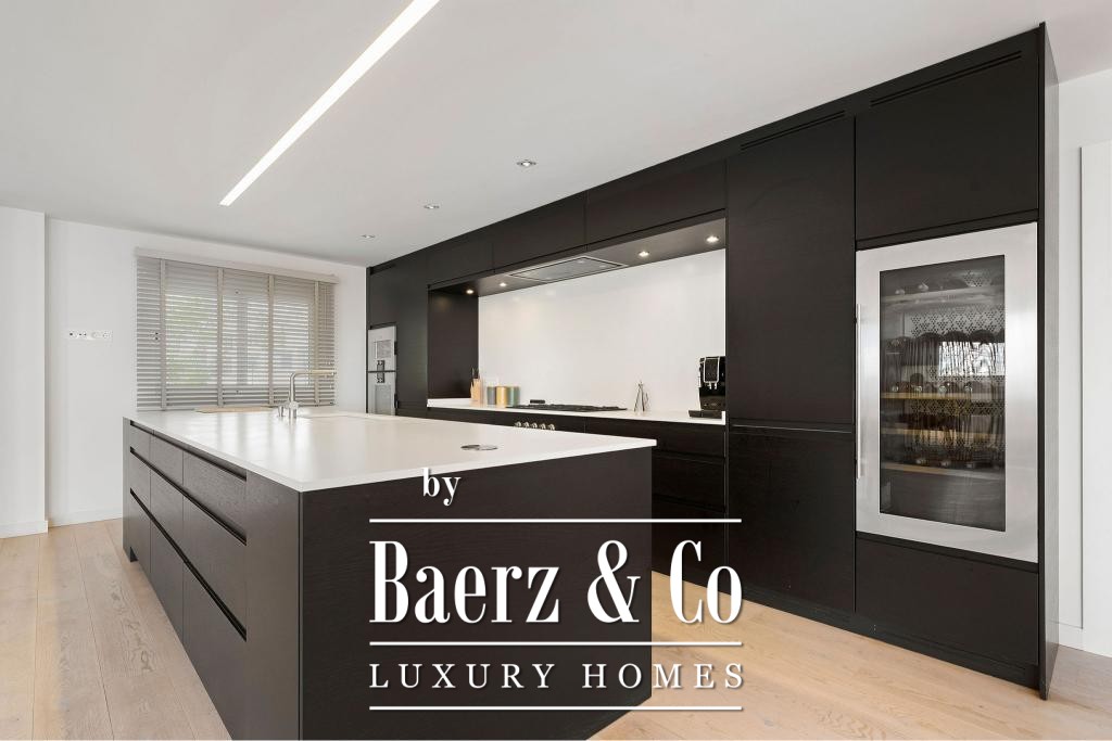The main living floor presents an open-plan design anchored by a state-of-the-art kitchen equipped with premium Gaggenau appliances, a generous living area, and an elegant dining space. High-quality wooden flooring, electric blinds, an advanced alarm system, and a lift speak to a commitment to both sophistication and practicality. Two underground parking spaces and dual storage rooms enhance daily convenience.