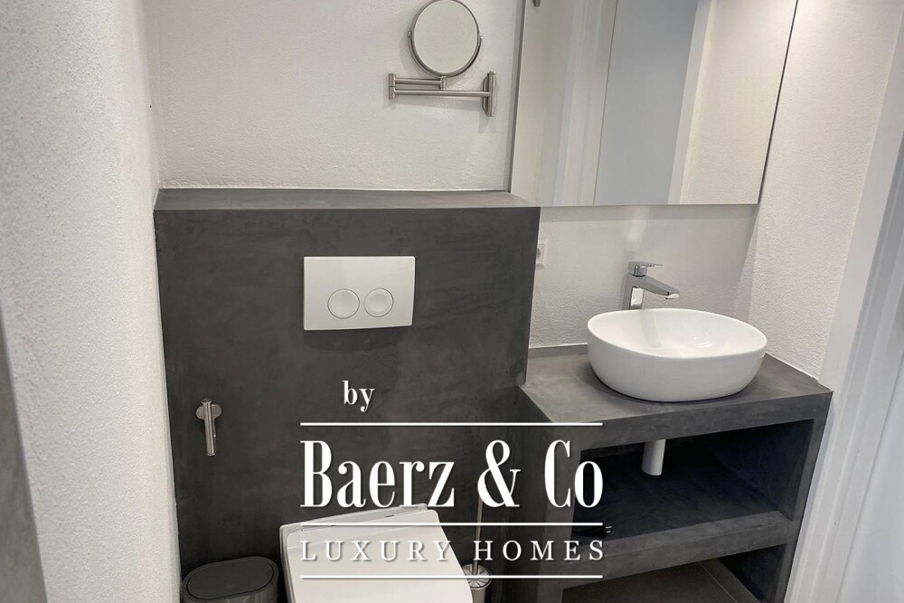 Ascending to the first floor, two separate apartments unfold. The first provides 115 m², four bedrooms, two bathrooms, and a broad terrace oriented to capture panoramic sea views. The second occupies 100 m², featuring three bedrooms, access to two balconies overlooking the sea, three bathrooms, and a private garden with jacuzzi. Underfloor heating and air conditioning ensure comfort throughout the year.