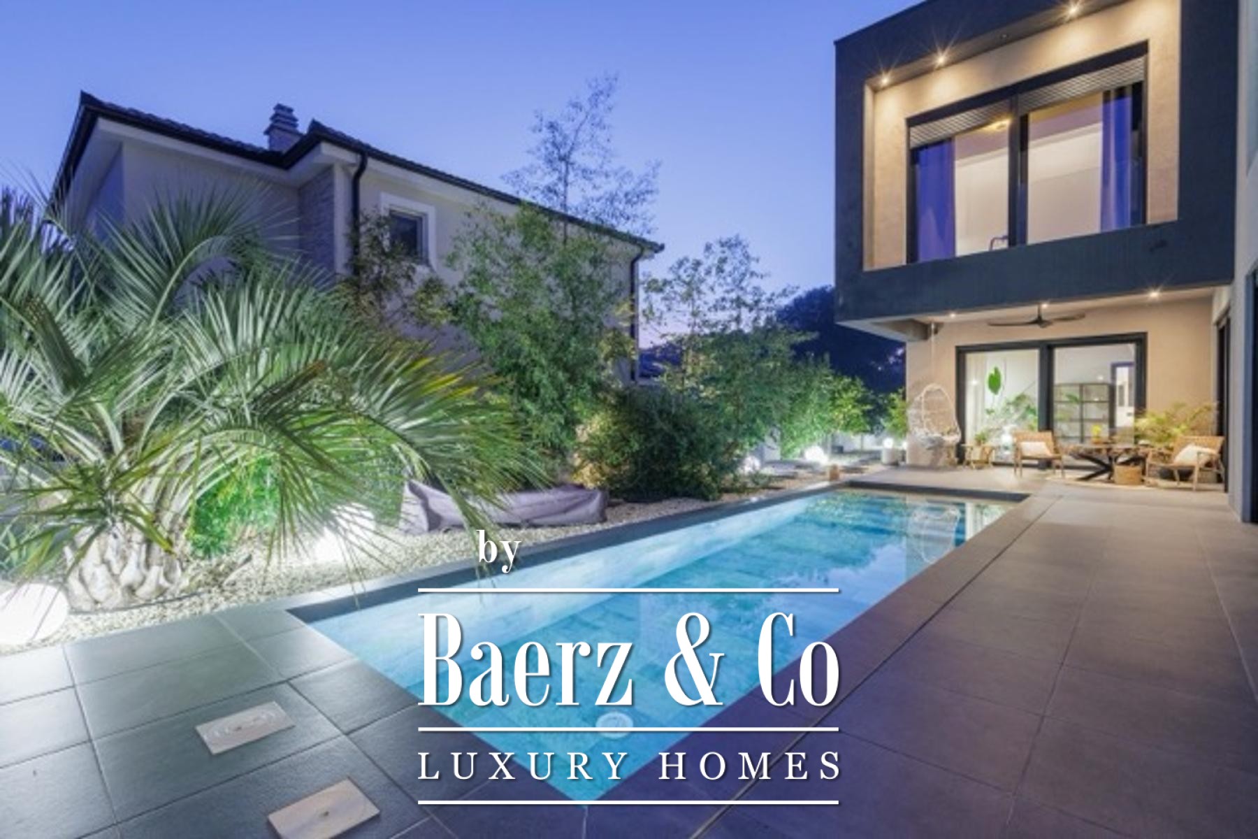 Villa Premantura Croatia presents 205 m² of refined living space, quietly positioned on a landscaped 710 m² garden in the southern reach of the Istrian peninsula. This property combines architectural clarity with an inviting atmosphere, offering a tranquil haven in a sought-after enclave.
