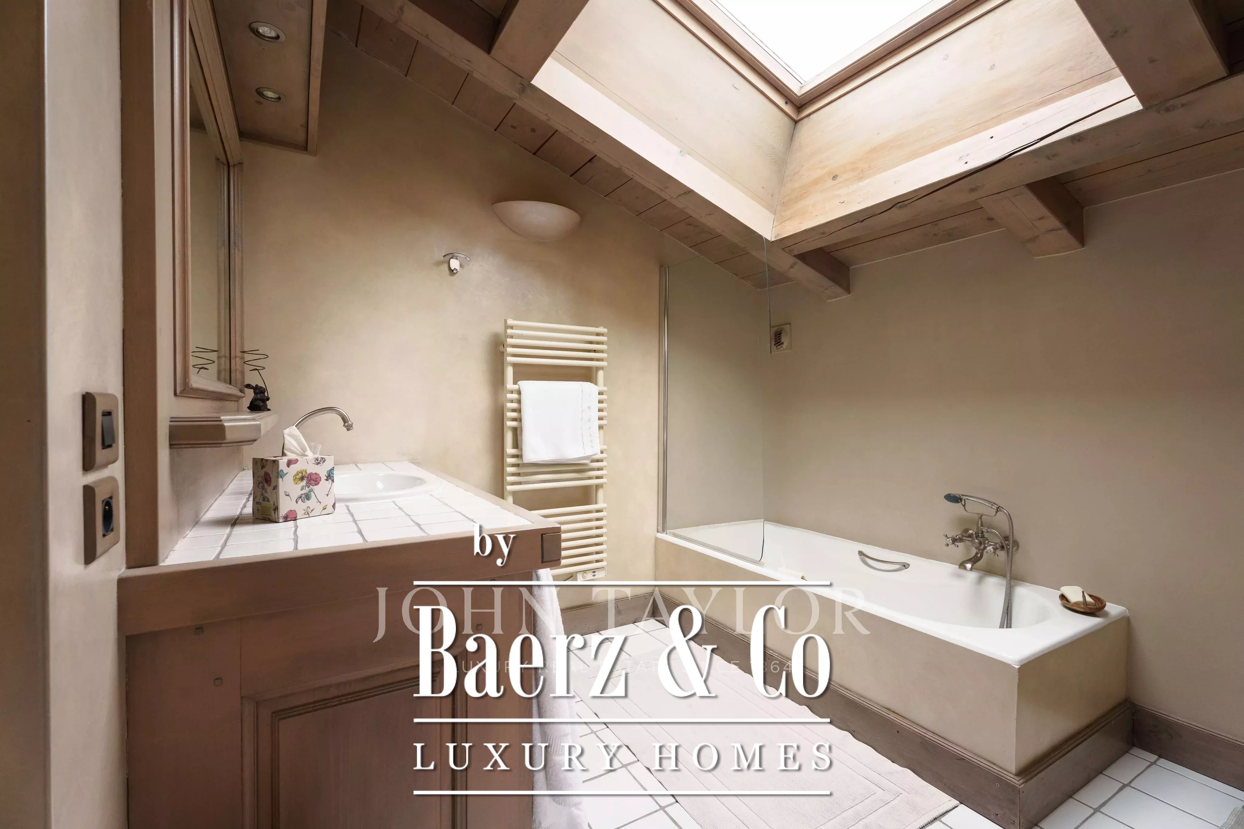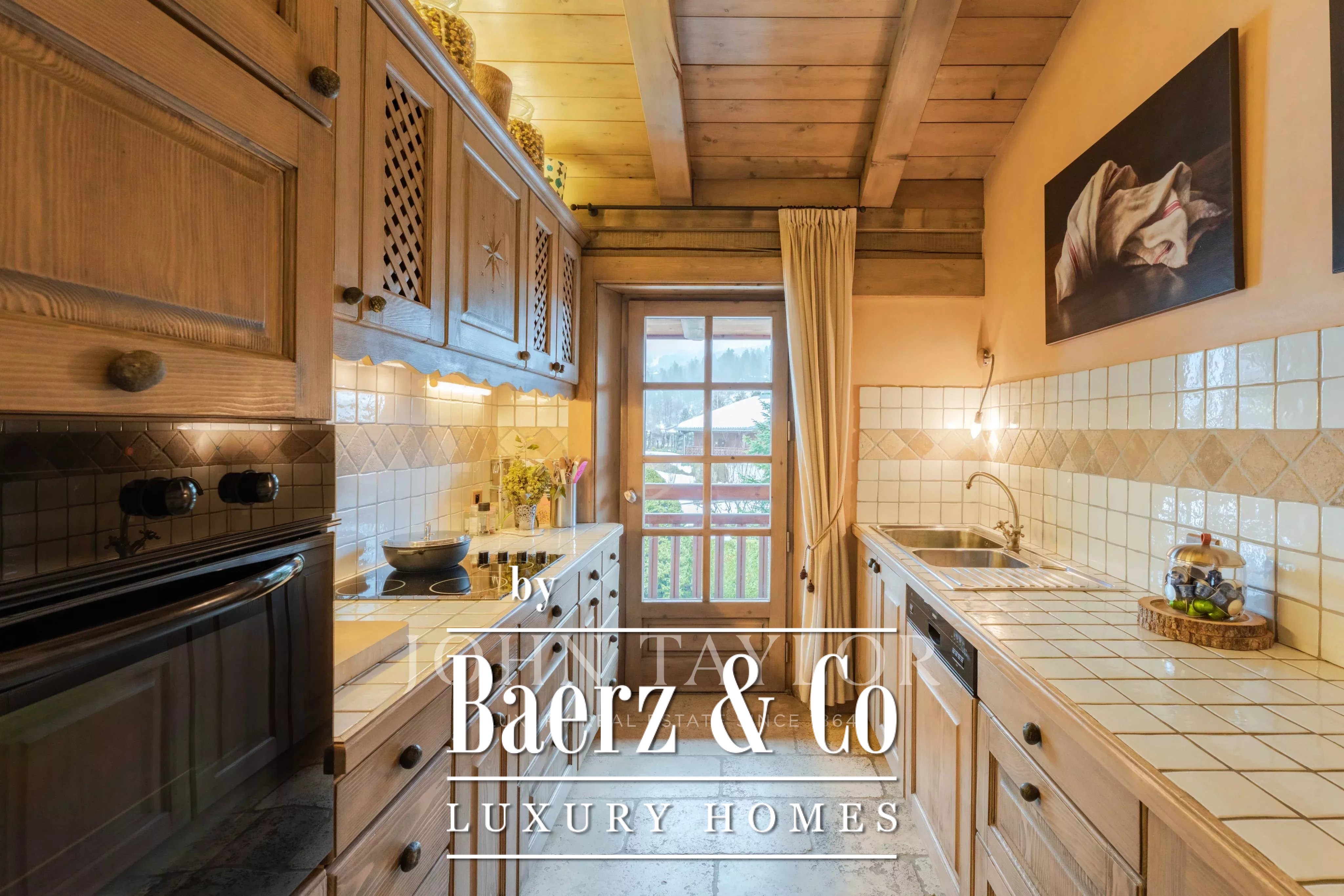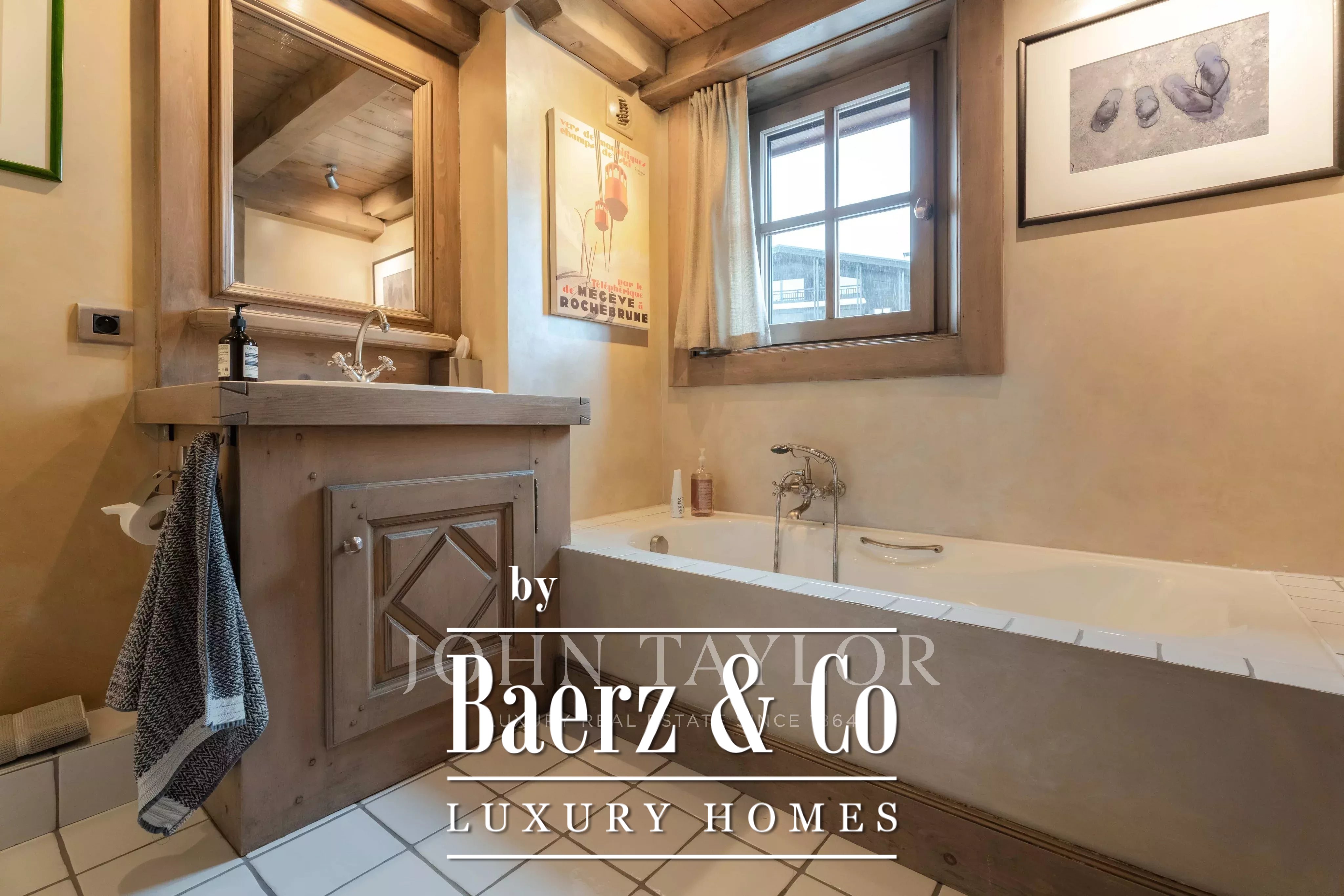 Features such as a fireplace, double glazing, water softener, electric awnings, shutters, and window shades add to year-round comfort. Covered parking for two vehicles, additional outdoor parking, cellar, and a ski locker complete the offering. Mountain views frame the setting. The apartment can be sold furnished, allowing for a seamless transition into Megève’s alpine tranquillity.
