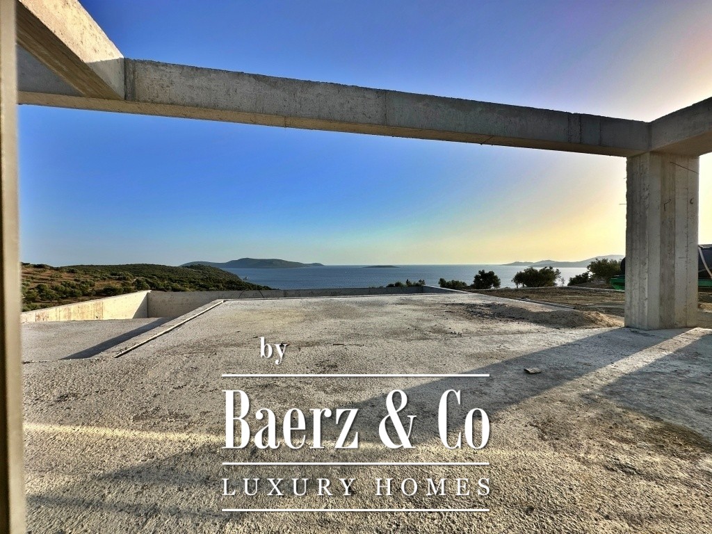 Villa Foiniki with sea views presents a spacious 386 m² residence in the verdant landscape between Finikounda and Methoni. Designed by a renowned architectural firm, this villa rests quietly within a private plot of 7,848 m², its architecture in respectful dialogue with the region's natural beauty.