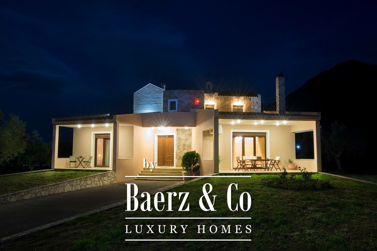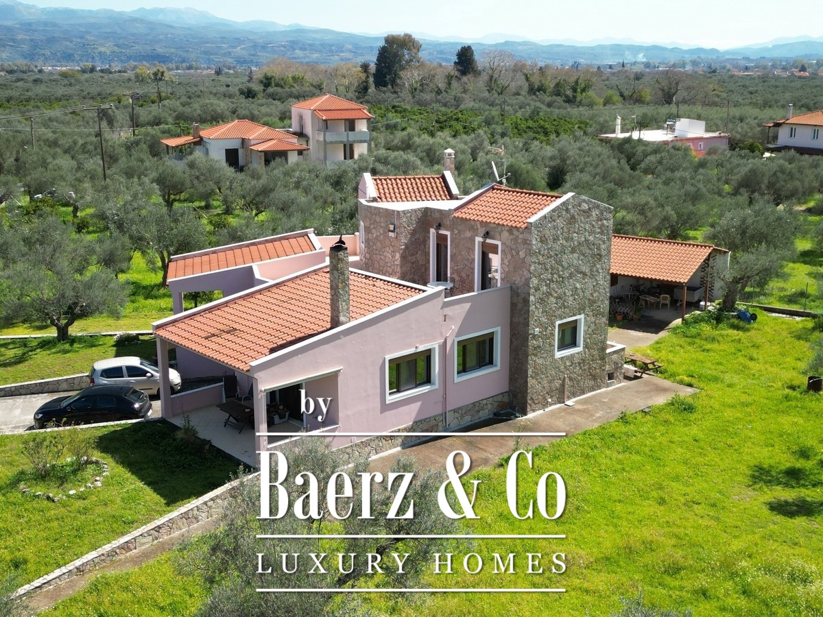 This detached house Mistras is set within a privileged enclave of Laconia, just five minutes from Sparta, presenting 200 m² of living space on a 3,300 m² plot. The residence is distinguished by its panoramic outlook over Mount Taygetos, Mount Parnon, and the historic castle of Mystras, framed by a neighborhood of elegant homes and boutique hotels.
