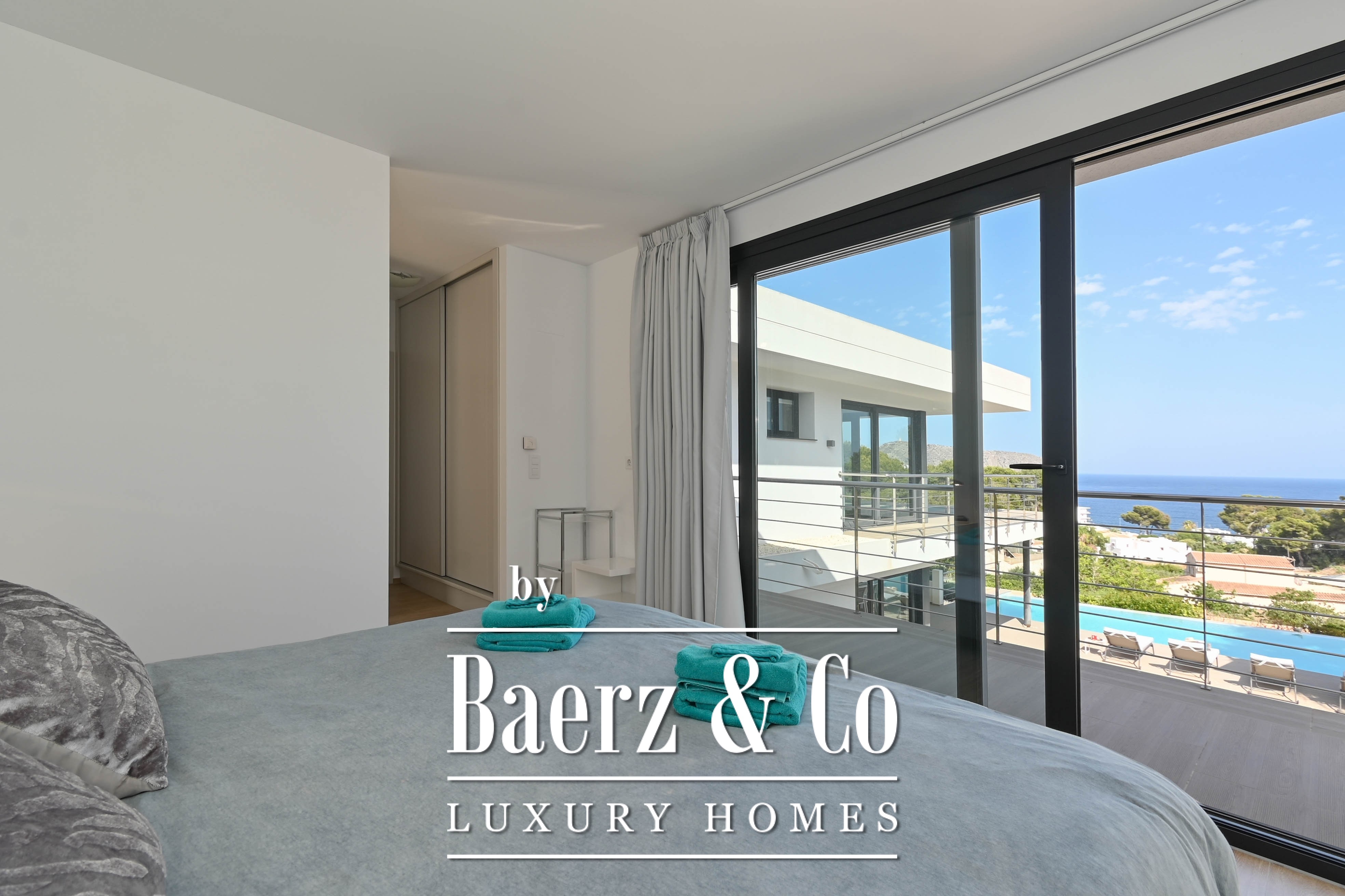 Just a short walk from the beach and the charming restaurants of Moraira, discover this modern villa with breathtaking sea views