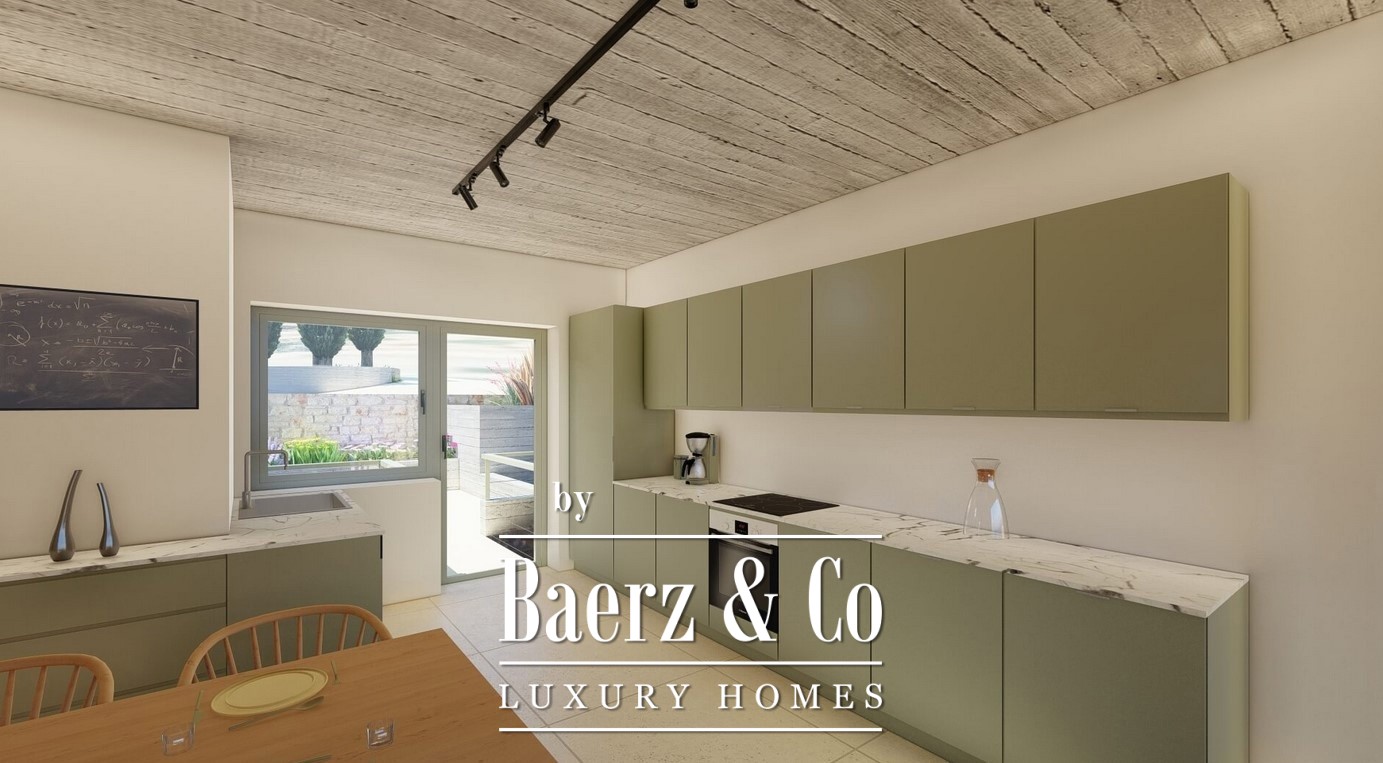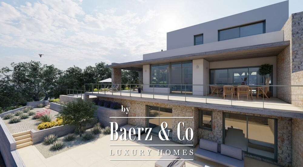 Large glass openings and solid stone walls define the villa’s modern architectural rhythm, striking a balance between transparency and privacy. Morning light plays through double-glazed vistas, while energy efficient features such as heat pump and air conditioning enhance seasonal comfort. The interiors may be tailored, should a sale occur within the construction phase, allowing new owners to select materials and layouts to their needs.