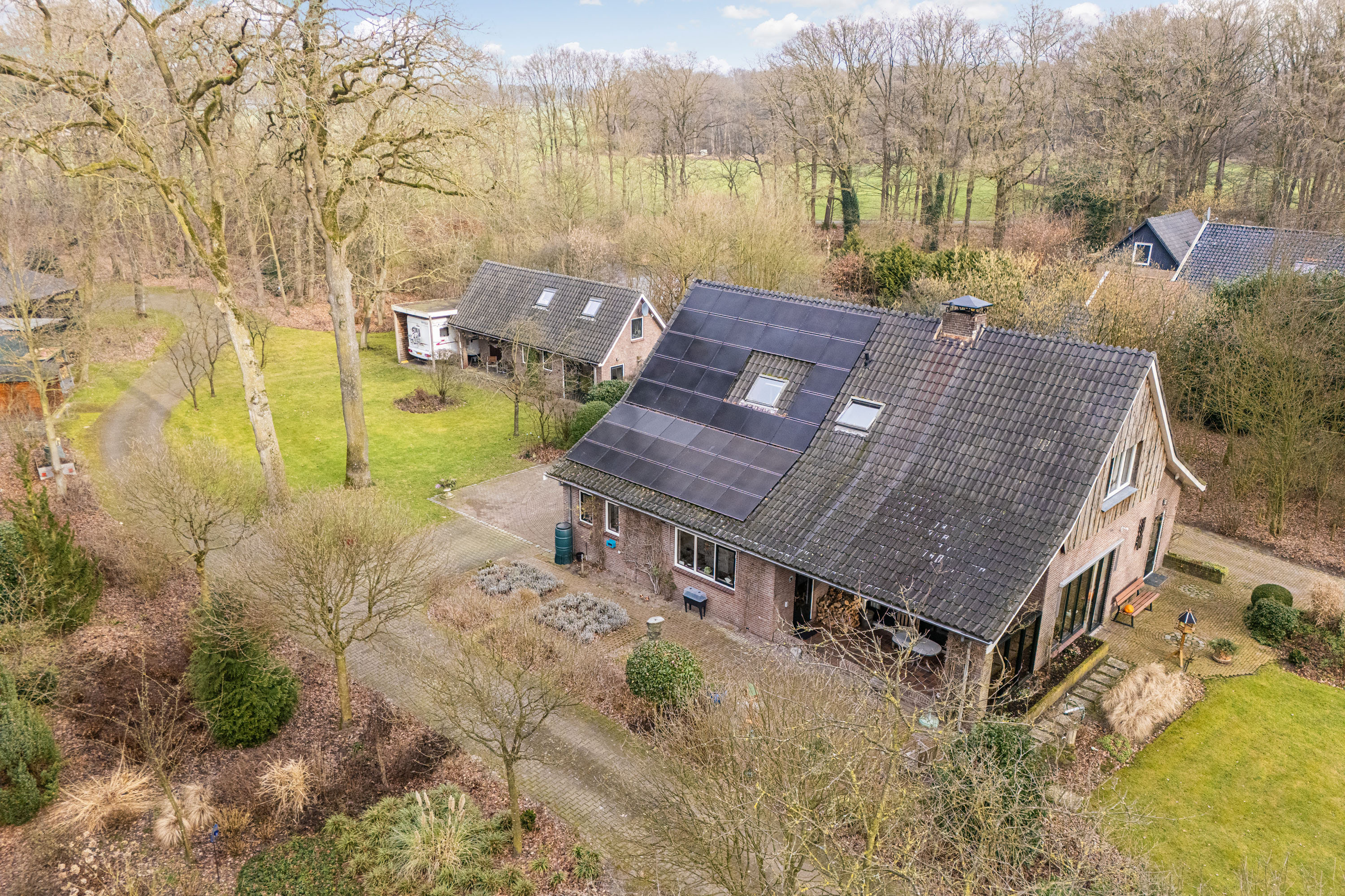 Where the Achterhoek meets Twente, this well?maintained detached home stands in a lush natural setting, complete with several outbuildings, a guesthouse/B&B and two horse stables, all situated on a generous plot of 6,180 m². Surrounded by mature trees and a beautifully landscaped garden, this property offers exceptional privacy, abundant space and a deep connection with nature.
